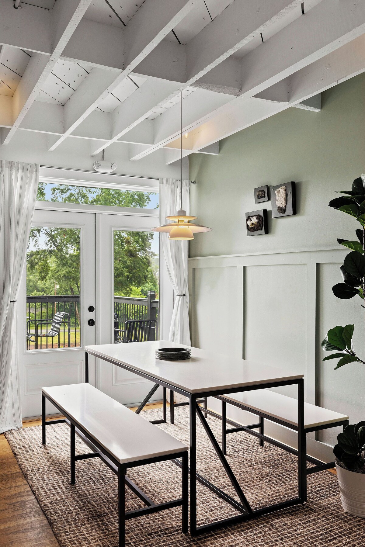 Welcome to Modal House: A Luxury Gamepad, your premier vacation rental in the heart of Downtown Greenville, SC. Designed for unforgettable group getaways, this stylish retreat features 5 bedrooms, 6.5 bathrooms, a private sauna, theatre room, pool table, outdoor courtyard, and high-end modern amenities throughout. Whether you're hosting game night, relaxing in plush comfort, or exploring the vibrant city steps away, Modal House offers the perfect blend of fun, relaxation, and upscale vibes for your next memorable stay. Staying at Modal House includes everything you need for your perfect vacation! Enjoy complimentary parking, luxurious memory foam mattresses, Nordic sauna, hot tub, cold-plunge, fire pit, gas grill, waterfall showers, to hi-speed wifi and a full kitchen that opens up to a large outdoor deck. Get a glimpse of our diverse and inclusive southern hospitality as you grab a coffee from our coffee station & wet bar area before relaxing on our outdoor deck. Your stay includes: • Complimentary private parking • Luxurious memory foam beds in all bedrooms • Rainfall shower heads in every shower • Overnight accommodations for up to 23 guests • High-speed Wi-Fi • Full residential kitchen with all basics such as pots, pans, utensils, dishware and flatware • Outdoor grill, hot tub, cold plunge, and sauna • Private courtyard for relaxing or gathering • Bike shed for equipment storage • Media room, game lounge, billiards room, and wet bar • Much more! Guests will receive a unique access code to the property for the duration of their stay and the booking manager will be virtually available through VRBO to answer questions or assist in any way we can to make your stay as comfortable as possible. The property is a 10-minute walk to Main Street Downtown Greenville, South Carolina, offering access to hundreds of local restaurants, bars, and entertainment venues. If you’re driving here yourself or taking a Rideshare, use the address provided with your booking confirmation. If you’re flying into GSP, please contact their airport ground transportation desk to get more information regarding rental cars and available shuttle services. Greenville offers both public bus transportation as well as local trolley for getting around Downtown through GreenLink. Modal House is also conveniently located a 7-minute car ride from the local Amtrak station. Our prices include all fees. No hidden fees.