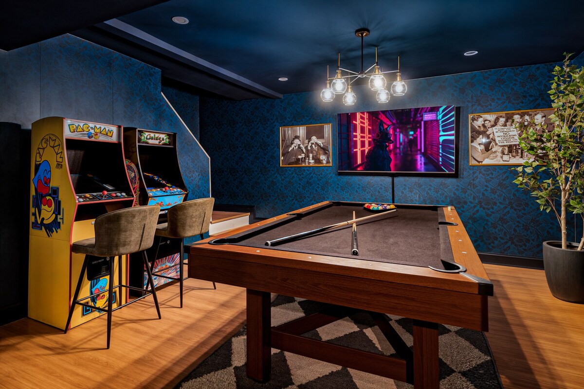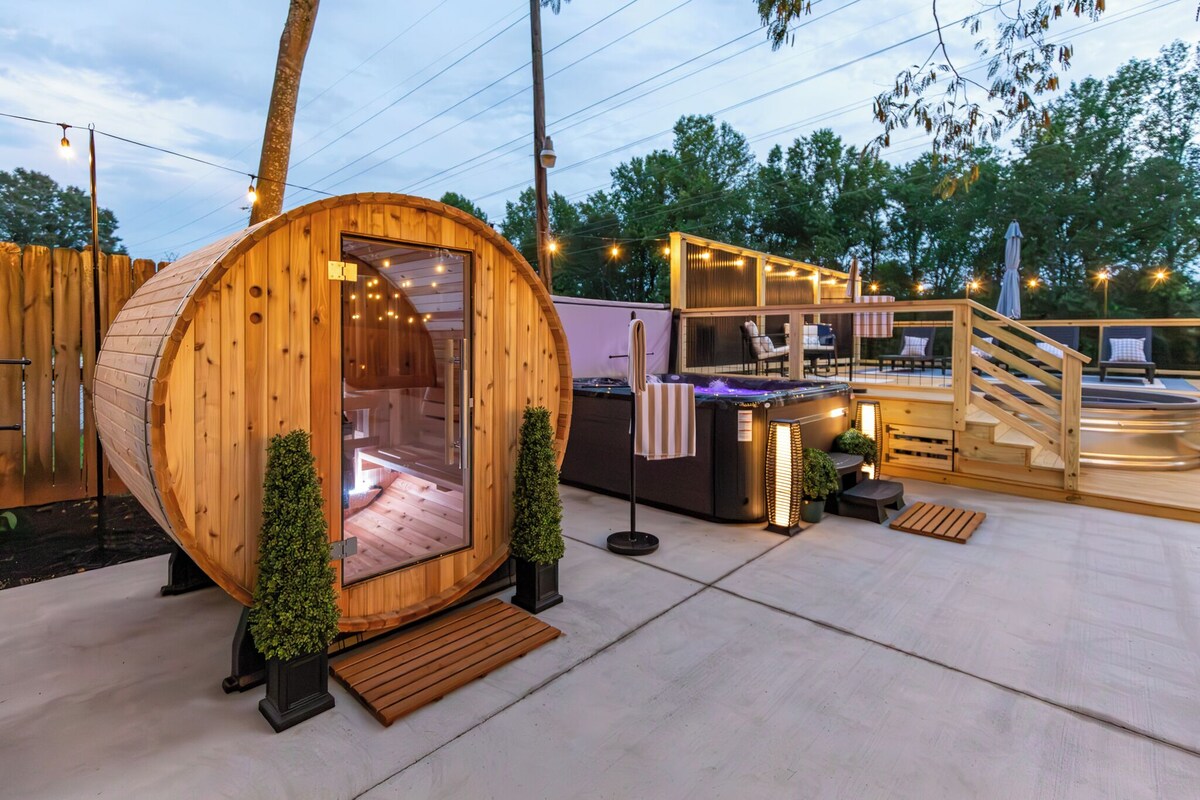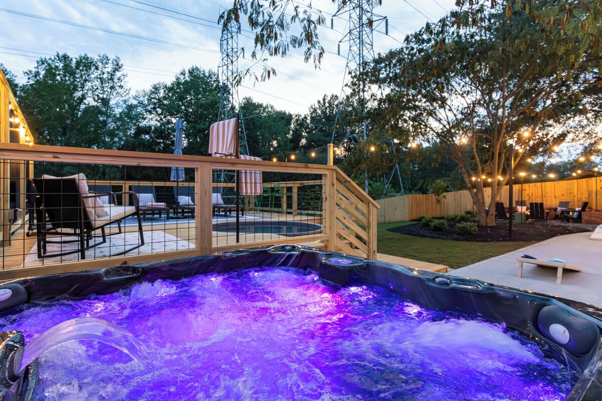 Prepare for an unforgettable stay where comfort, charm, and fun come together beautifully. The Blue Ridge Bungalow is designed to host large groups and families with plenty of room to relax and play. Relax and recharge with a cold plunge, hot tub, sauna, and cowboy pool. Dine al fresco, roast s’mores by the fire pit, and cook like a pro with the grill and Blackstone. Kids and adults alike will love the fully fenced yard with yard games, basketball, and pickleball courts. Step inside the custom speakeasy game room, where vintage flair meets modern fun — featuring a pool table, arcade games, and the perfect spot to unwind or compete. The interior is filled with Southern charm and thoughtful touches, including a fully stocked kitchen, cozy living spaces, and TVs in every room. A kids-themed room, pack-n-play, high chair, and children’s utensils make it family-ready. Located in a quiet neighborhood with plenty of parking, this home makes a wonderful home base while attending graduations, sporting events, concerts, girls’ trips, or simply spending time with your favorite people. Dog-friendly and curated for connection, the Blue Ridge Bungalow is Greenville’s hidden gem. Room Accommodations: Primary Bedroom (Main Floor): King bed, en suite bathroom, and decadent furnishings. Bedroom 2 (Main Floor): Queen bed with cute and comfortable decor. Bedroom 3 (Main Floor): King bed, corner room with tons of natural light. Bedroom 4 (Main Floor): Queen bed with an elegant and cozy theme. Bedroom 5 (Lower Level): King bed with vintage style and privacy. Bedroom 6 (Lower Level): Two full-size bunk beds, plus toys and a play area for kids. All bedrooms include premium linens, plush pillows, nightstands with charging ports, and Smart TVs to maximize your comfort. Stay connected with a dedicated workspace featuring a 27-inch PC monitor with HDMI hookup and fast mesh Wi-Fi throughout the home. Just 12 minutes from Downtown Greenville and Falls Park on the Reedy, and 15 minutes from Furman University, you’ll have easy access to all the best local attractions. Check-In / Check-Out: -Check-in: 4 PM -Check-out: 10 AM Ready to experience the perfect blend of Southern charm, fun amenities, and room for everyone? The Blue Ridge Bungalow is waiting for you! Our prices include all fees. No hidden fees.