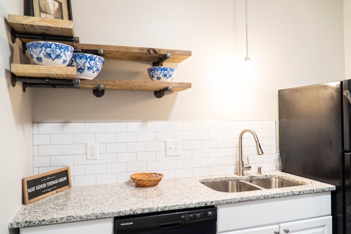 About this space It is hard to list all of the reasons why you should stay at this sensational space.New countertops, floor-to-ceiling bathroom tile, paint, and kitchen appliances. Walking distance to bike trails, downtown dining, YMCA, Unity Park and Falls Park! It's just charming! It is in the heart of the ever-growing Downtown & West Greenville. Walking distance to so many places! The space This Bungalow is not too small or too large-it's just right! It includes everything needed for an independent and functional stay. Private drive, front porch, living room, television, a queen bed, modern bathroom, and a kitchen fully stocked with cooking and serving utensils and an oven stove, dishwasher, refrigerator, and washer/dryer! Guest access Guest will have access to the entire house. Other things to note 3 pm check-in 10am checkout: the cleaner will expect access at 10AM to prepare for our next guests.1 Bedroom Bungalow Our prices include all fees. No hidden fees.