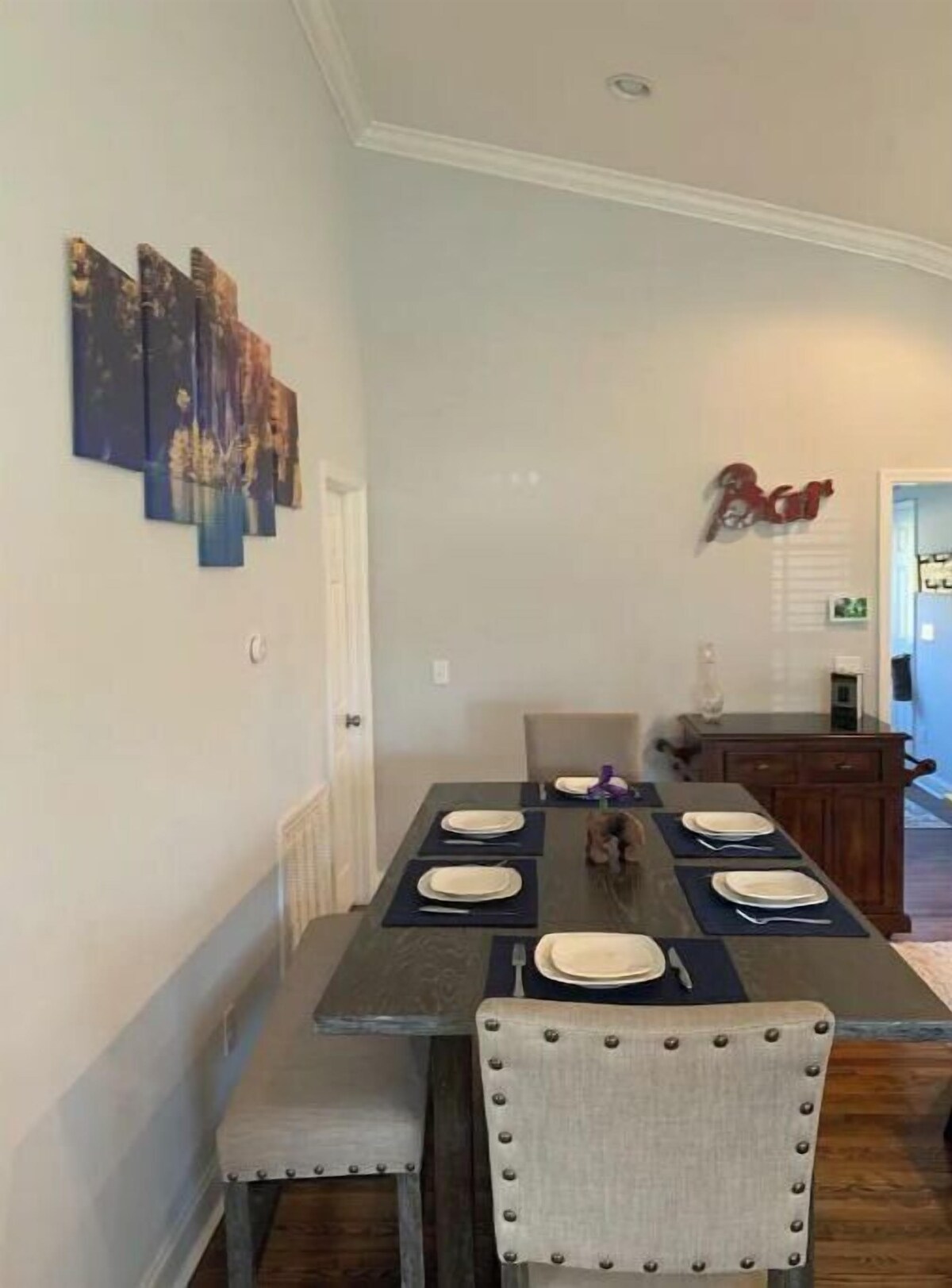 Welcome to our Greenville bungalow. Amazing, newly renovated 3 bedroom home in the heart of Greenville's West Village neighborhood. Our quiet street is within walking distance from West Village shopping and dining, only one mile from the Historic West End and just over one mile to downtown. If you're staying in, our well-equipped kitchen has your culinary needs covered and we have a new Weber grill for outdoor chefs. We love Greenville and enjoy sharing our home and our town with visitors. The space Our home is a one story, 3 bedroom bungalow in Greenville's thriving West Village. Each bedroom features the ability to stream your own music using a simple app on your smartphone or tablet. Our kitchen has all the cooking essentials covered and we have an outdoor grill you are welcome to use. Greenville is a very dog-friendly city and you are welcome to bring up to 2 dogs to stay with you. We have a good-sized, fenced backyard for them to play. We just ask that you clean up after the pups. We do have outdoor cameras on the property, so please do not bring more than 2 pups or 6 humans with you without discussing your circumstances with us first. Our prices include all fees. No hidden fees.