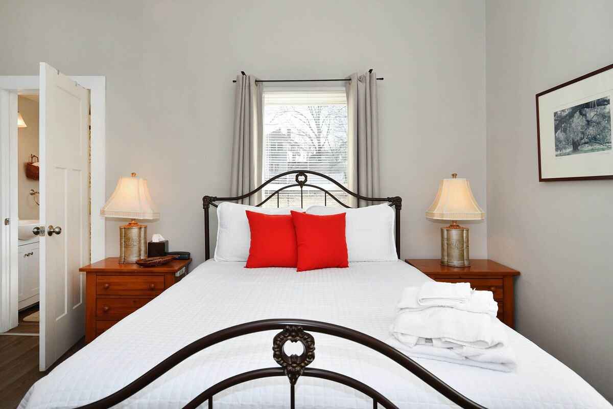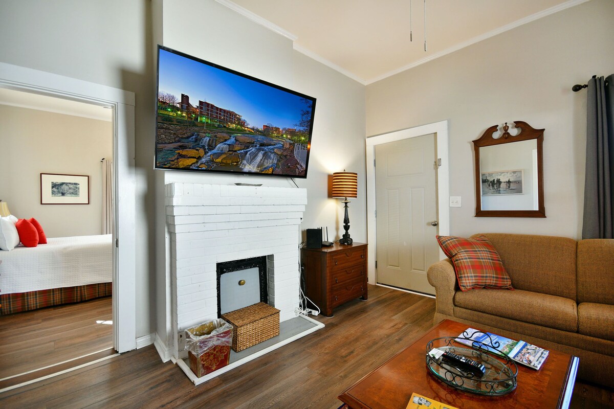 Nestled within minutes from Falls Park in downtown Greenville, come and enjoy this Cozy Single Family Home. Picture restful nights in the queen bed, unwind in the plush leather sofa, or take in some sun on the back deck overlooking a large fenced in yard. Your car rests in a private driveway with top sights a mile away. Book today, and let us help you make new memories! Home Features Include: * Free High Speed Internet * Contactless Self Check-In 24/7 * Free Parking for 2 Cars - Private Driveway * Fenced In Backyard * Back Deck with Outdoor Dining, Ample Seating, & String Lights * Covered Front Porch * Queen Bed * Washer & Dryer * Full Kitchen * Kitchen Table Seating for 3 * Dishwasher * Central AC & Heat with Ceiling Fans in Every Room * 65” Smart TV (Cable Not Provided but Steaming Available for Personal Accounts) * 10ft Ceilings * Tall Custom Windows with Blackout Curtains The Cozy Cottage is a quick drive from the center of beautiful downtown Greenville and minutes from most major attractions. We can't wait to make your stay in Greenville as comfortable and convenient as possible! Distance to Nearby Attractions: Falls Park on the Reedy - 2.2 miles / 5 to 8 minute drive Main St - 2.4 miles Fluor Field - 1.8 miles Gather GVL - 1.8 miles Unity Park & Swamp Rabbit Trail Parking - 3.1 miles Bon Secours Wellness Arena - 3 miles Peace Center - 2.3 miles Prisma Health Greenville Memorial Hospital - 1 mile St Francis Downtown Hospital - 1.5 miles Patewood Medical Campus- 8 miles Greenville-Spartanburg International Airport (GSP) - 19.3 miles Our prices include all fees. No hidden fees.
