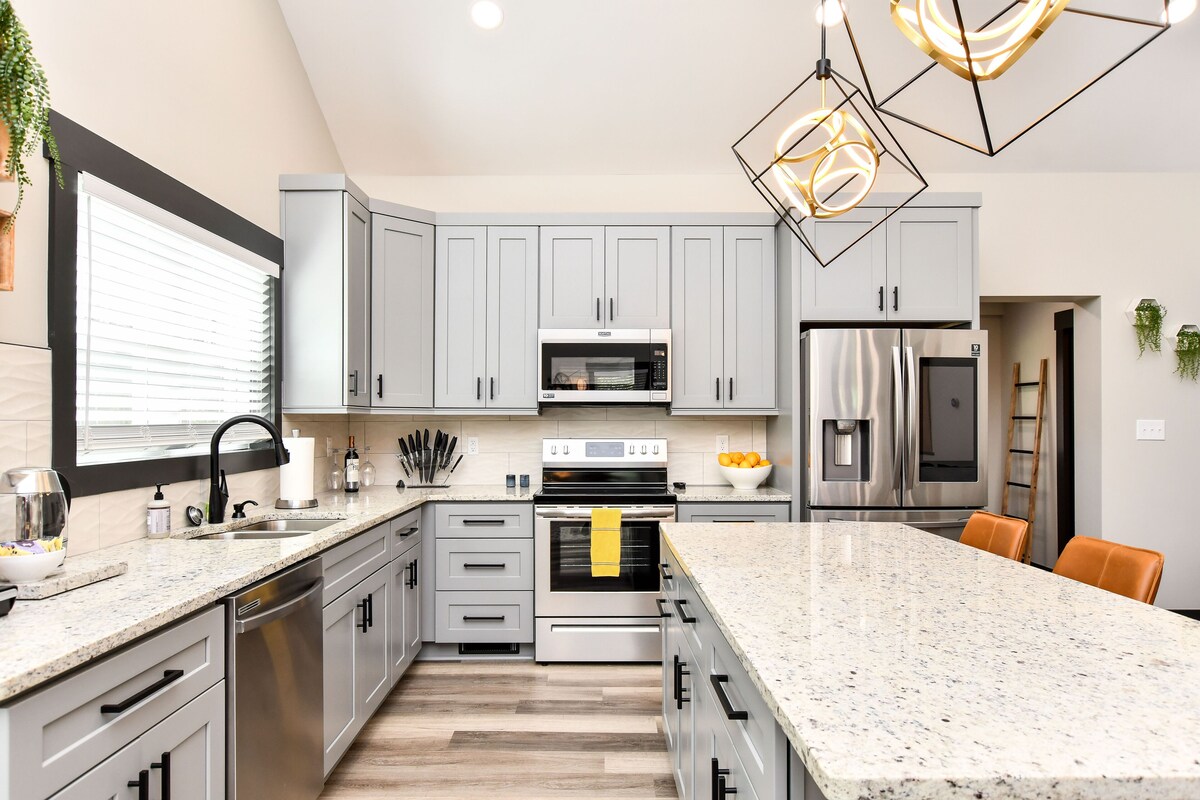 Experience a stylish staycation at this centrally-located home, 3-minute drive to downtown, walking distance to the historical 1912 Judson Mill. This is newly renovated, fully furnished, and thoughtfully decorated. The furniture, appliances, and functionality will make our guests feel cozy and comfortable. This is a wonderful place to relax and stay after a day of activities or enjoy the home all day inside and out. Traveling with an EV vehicle? We have an EV charging station just for you. The home offers spacious in and outdoor living for our guests to enjoy their time together. It is perfect for lounging or working during the day or enjoying a cozy evening with family or friends. Luxury bedrooms and baths featuring king beds with their own ensuites, custom tile, and a RAIN HEAD SHOWER in the main! The beds are selected with comfort in mind. The place also offers a beautiful deck with a gas grill and seating for dining. The fenced-in backyard provides plenty of rooms for kids to play and/or furry friends to roam. We are equipped with EV charging capability (240 volts) for your vehicle or RV. We have keyless access and codes will be sent with the check-in instruction on the day of your arrival. Your furry friends are welcome to stay with a minimal pet fee of $59 for 1-2 pets or $118 for 3-4 pets, good for 7 nights, to be charged upon reservation to cover the extra cleaning. A recurring fee is required every 7 nights. Please note that this does not compensate for any possible damages on property. Our prices include all fees. No hidden fees.
