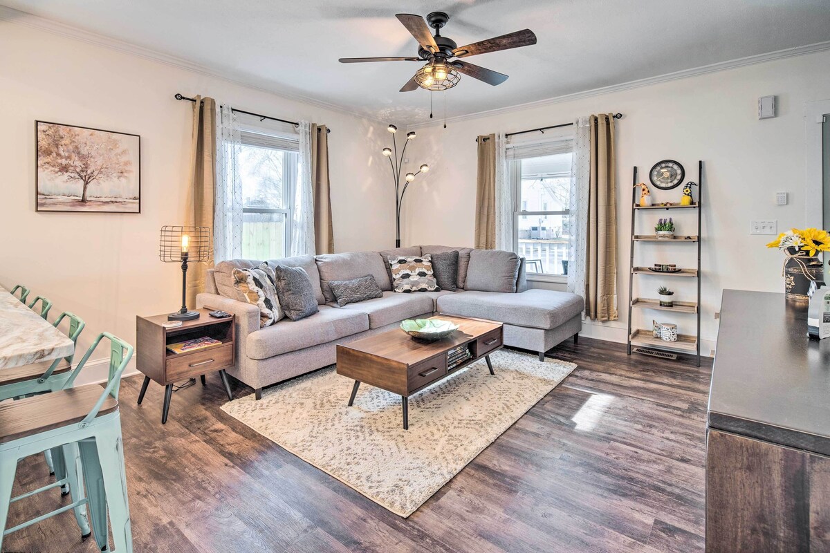 Discover Greenville’s unique blend of modern architecture, scenic nature, and Southern charm at 'Mill Cottage', a 3-bedroom, 2-bath vacation rental just 2 miles from Main Street! Enjoy the home's updated interior with a gorgeous kitchen, central air conditioning, a washer and dryer, Smart TVs, and more. Take the kids to the Greenville Zoo, visit the Greenville County Museum of Art, or head to Falls Park on the Reedy. End the day with a meal on the deck basking in the glow from the fire pit! -- THE PROPERTY -- Free WiFi | Central A/C + Heating | 2 Mi to Main St | Pet Friendly w/ Fee (2 Dogs Max, No Cats) Bedroom 1: Queen Bed | Bedroom 2: 2 Twin Beds | Bedroom 3: King Bed OUTDOOR LIVING: Deck, fire pit, outdoor dining area, private yard, porch INDOOR LIVING: Smart TVs, walk-in closet, dining table, board games, books, bathtub/shower KITCHEN: Refrigerator, stove/oven, microwave, toaster, coffee maker, dishwasher, garbage disposal, ice maker, spices, cooking basics, dishware/flatware GENERAL: Ceiling fans, complimentary toiletries, washer/dryer, laundry detergent, linens/towels, hangers, hair dryer, iron/board, trash bags/paper towels FAQ: Steps required for access, bedroom + bathroom on 1st floor, 2 external security cameras (facing outwards), pet fee (paid pre-trip) PARKING: Driveway (2 vehicles) -- THE LOCATION -- LOCAL FUN: Greenville Center for Creative Arts (0.3 miles), West Greenville (1 mile), Children’s Museum of the Upstate (2 miles), Greenville Main Street (2 miles), Upcountry History Museum (3 miles), Greenville County Museum of Art (3 miles), Greenville Zoo (3 miles) OUTDOOR ACTIVITIES: Shoeless Joe Jackson Memorial Park (0.3 miles), Falls Park on the Reedy (2 miles), Otter Creek Water Park (12 miles), Greer City Park (15 miles), Wildwater Chattooga: Rafting & Canopy Tours (58 miles) FOR THE SPORTS FANS: Triumph Soccer at Legacy Early College Stadium (2 miles), Greenville Drive Baseball at Fluor Field (2 miles), Greenville Swamp Rabbits at Bon Secours Wellness Arena (3 miles) AIRPORT: Greenville-Spartanburg International Airport (16 miles) -- REST EASY WITH US -- Evolve makes it easy to find and book properties you'll never want to leave. You can relax knowing that our properties will always be ready for you and that we'll answer the phone 24/7. Even better, if anything is off about your stay, we'll make it right. You can count on our homes and our people to make you feel welcome — because we know what vacation means to you. -- POLICIES -- - No smoking - Pet friendly w/ $50 fee (+ fees & taxes, 2 dogs max, no cats) - No events, parties, or large gatherings - Additional fees and taxes may apply - Photo ID may be required upon check-in - NOTE: The property requires stairs for entry, but there is a bathroom on the first floor - NOTE: Your safety matters. This property features 2 exterior security cameras. Camera 1 is a Wyze doorbell camera facing the front entry and camera 2 is a Wyze camera located on the back exterior of the home facing the backyard and deck. The cameras are outward facing and do not look into interior spaces. The cameras actively record video and sound while guests are in residence Our prices include all fees. No hidden fees.