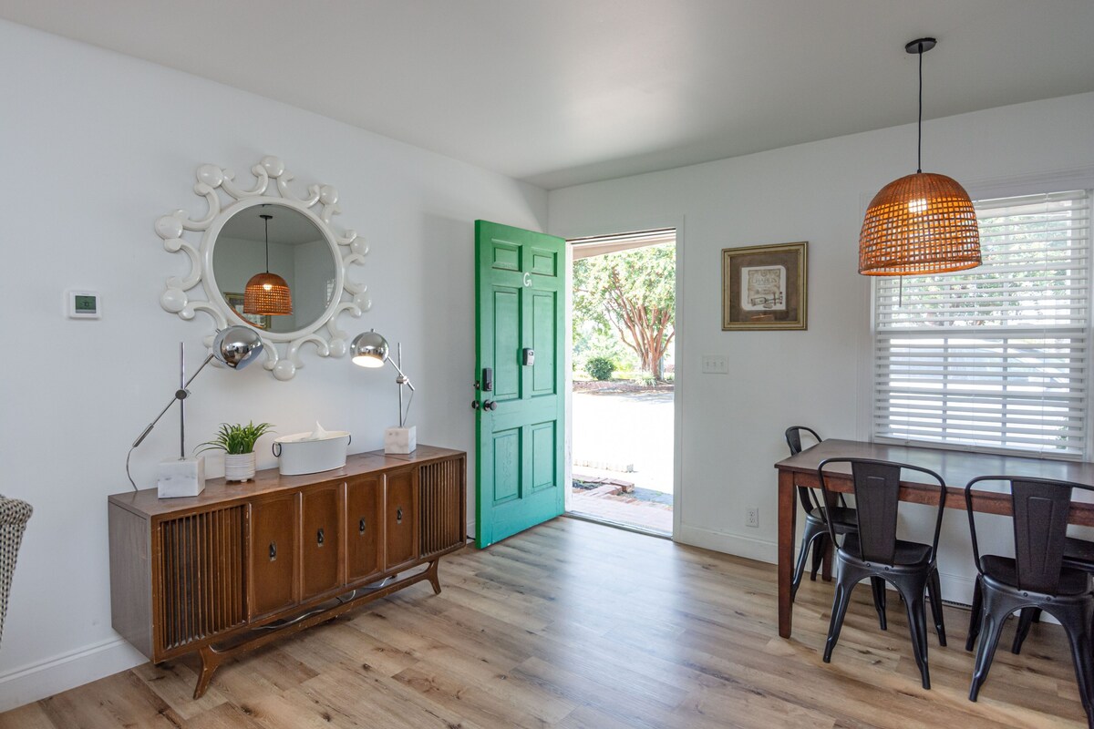 Need the perfect place to stay while in beautiful Greenville? Look no further as this is THE perfect location- only 1 mile from downtown, next to restaurants, shops, local markets and the grocery store. With three bedrooms, a large bathroom, and an adorable fenced in courtyard you're sure to have all the space you need for your stay. The unit is equipped with hi-speed internet for streaming your favorite movies, board games to play, books to read, and that cozy courtyard for sipping coffee or tea. Our prices include all fees. No hidden fees.
