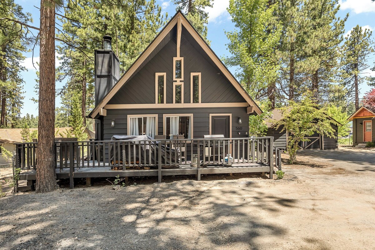Summary: Located in Big Bear, this 2-bedroom cabin is the perfect getaway for small groups. It’s newly renovated with modern furniture, flooring, and fixtures. All this combines with the classic A-frame exterior to provide a one-of-a-kind getaway experience. Step inside to find a sleek interior design, inviting you to kick back and relax. Home also offers a vintage arcade game console for your entertainment. The Space: Back outside, you’ll find a spacious deck with a grill and dining space, perfect for making the most of the property’s beautiful surroundings. Best of all, the cabin is just minutes away from the lake and slopes, so you'll have plenty to explore and enjoy during your stay. Framed by gorgeous vaulted ceilings and windows, the living room is the perfect spot to spend leisure time. Guests will love the large sectional couch, wood burning fireplace, smart tv, and huge selection of board games. The fully equipped kitchen may be one of the most beautiful rooms in the house with its modern design and chic appliances. Also incredibly functional, the kitchen has all the cookware and tools you’ll need for convenient cooking at home. Enjoy causal bites at the kitchen island with barstool seating, while formal meals can be hosted at the dining table set for 4. This pet friendly home sleeps 6 guests between 2 private bedrooms: - Bedroom #1 has queen size bunk beds. - Bedroom #2 has a king size bed and smart tv. THINGS TO NOTE: - Per City and County ordinances, guests must sign the Good Neighbor Policy and provide a valid government-issued ID before check-in. This policy covers noise, occupancy, parking, and trash. Failure to comply will result in reservation cancellation without a refund. - You must be 21 or older to reserve this property. Individuals under the age of 21 who book this home may have their reservations canceled or interrupted without the option of a refund. - Same day booking is available, please contact us by noon. - There is an AC unit, which is rare in this location! - To ensure compliance with local city and county regulations, every individual, regardless of age (including infants and children), is included in the total occupancy count. Reservations exceeding the maximum allowed occupancy for this property cannot be accepted. - The home has 1 bathroom with a walk-in shower. - 2 parking spaces are provided in the driveway. - Washer and dryer in unit. - Firewood is not provided. - Winix 3 step whole home HEPA Air filtering system. - In order to ensure compliance with the regulations and guidelines set forth by the Big Bear Lake city authorities, it is imperative to review and sign the Good Neighbor Guide as well as provide a photo ID prior to checking in. - Please note that this home can accommodate up to 2 dogs, with an additional pet fee of $35 per pet/per day. This fee is not included in your final booking price. If you are bringing dogs, please contact our Customer Care Team after booking to pay the pet fee prior to your arrival. - NO STREET PARKING - NO PARTIES OR EVENTS - NO NOISE HEARD PAST THE PROPERTY LINE - BOOKING GUEST WILL RECEIVE A FINE AND EVICTION WITHOUT A REFUND ENFORCED BY THE CITY. - Pets must not be left alone at the house unless you bring a kennel with you. - Pets cannot be allowed on furniture and beds. For a quiet retreat away from urban hustle and bustle, it doesn't get any better than Big Bear Lake. Immersed in nature, this little village provides all the best of lake life in the mountains of the San Bernardino National Forest. The recreational activities in this area, such as hiking, biking, skiing, and fishing, maintain Mother Nature as the premier attraction, although shopping, dining, and live entertainment can be enjoyed in The Village. This location is also ideal for its close proximity to nearby Big Bear Mountain Resort with thrilling ski runs in the winter and serviced mountain biking, the Scenic Sky Chair, and 9 holes of golf to enjoy during the offseason. The resort is just 5 minutes away with 26 lifts, 55 runs, and options for every experience level. The property is .9 miles Summit Resort ( 4 min drive), 3 miles to Bear Mountain resort (8 min drive), .6 miles to the village ( 3 min drive), .4 miles to the Lake ( 3 min drive). Non-skiers can get their thrill with high-speed tubing down the slopes. Big Bear’s 3 snowtubing locations (Alpine Slide, Big Bear Snow Play, and Grizzly Ridge Tube Park) are equipped with moving walkways which carry you to the top of the tubing runs. These fun-filled locations feature year-round options as well with summer tubing, mountain coaster ride, ropes course, waterslides, and more. VRR-2022-1927 BUS-00396 Please note that requests for late checkout must be received no later than 10:00 AM local time on the day prior to your departure. Early check-in and late checkout are based on availability and require approval, and may be subject to an additional fee of $30.00 per hour. Please feel free to contact us if you are interested in arranging. For stays of 28 days or more a mid-stay clean is mandatory and will cost $108. Other Things to Note: The City of Big Bear Lake requires guests to review and sign the Good Neighbor Guide and provide a photo ID. This is not optional, and you can incur a minimum $500 fine from the City of Big Bear Lake if you ignore this step. Thank you for keeping us compliant. This home will be stocked with a starter set of consumables such as soaps and paper products. Guests are advised to either bring or purchase additional after arrival. Our prices include all fees. No hidden fees.