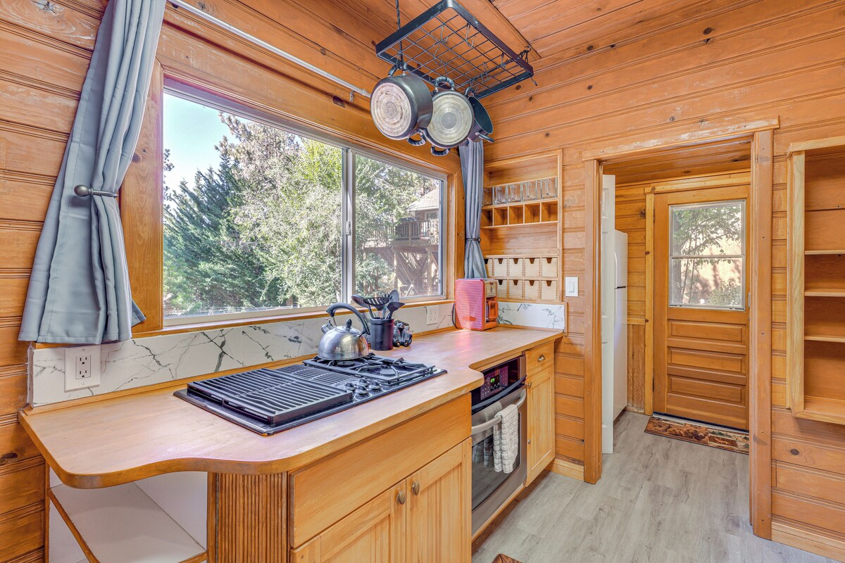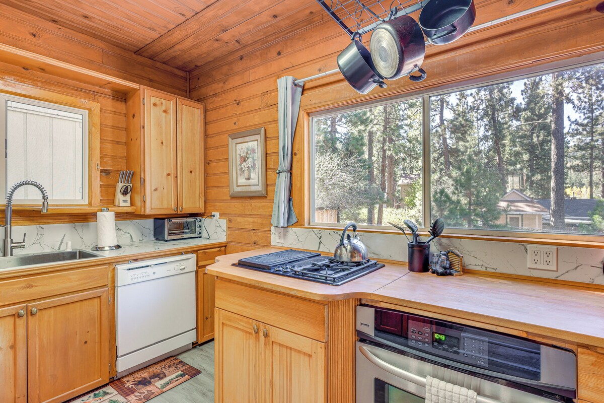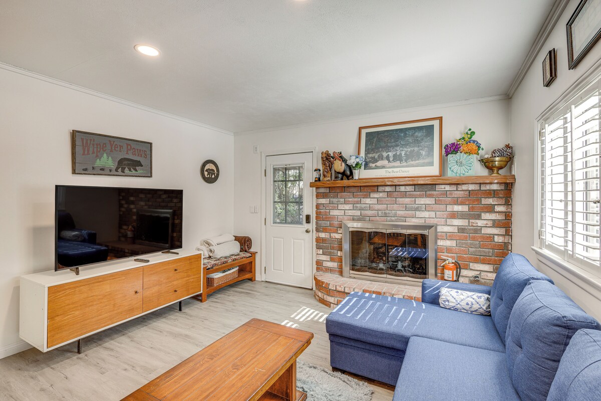 Pet Friendly w/ Fee | 2 Mi to Big Bear Mountain Resort | Outdoor Entertainment Space Nestled among the towering pines in Big Bear Lake, this 2-bed, 1.5-bath vacation rental invites you to embrace your adventurous side, no matter the season. This charming home boasts easy access to hiking, a furnished deck, and a fire pit — perfect for family BBQs or peaceful nights under the stars after a day spent on the slopes or visiting animals at the Big Bear Alpine Zoo. Don’t miss out, book now! -- THE PROPERTY -- VRR-2024-2177 SLEEPING ARRANGEMENTS - Bedroom 1: 1 queen bed, 1 queen daybed w/ 1 queen trundle - Bedroom 2: 1 queen daybed w/ 1 queen trundle, 1 twin daybed w/ 1 twin trundle OUTDOOR LIVING - Deck, patio - Gas grill, gas fire pit - Outdoor dining area, rocking chairs INDOOR LIVING - Flat-screen TVs - Wood-burning fireplace - Dining table - Shower/tub combo KITCHEN - Stovetop, oven, dishwasher - Cooking basics, dishware/flatware - Drip coffee maker, toaster oven, microwave GENERAL - Free WiFi - Portable heater - Complimentary toiletries, hair dryer - Washer/dryer, hangers, iron/board - Linens/towels, trash bags/paper towels FAQ - No A/C - Quiet hours (10:00 PM-7:00 AM) - 2 exterior security cameras (facing out) - Pet fee (paid pre-trip) ACCESSIBILITY - 2-story home, 4 steps to enter - 2 interior steps to access living room & half bath on 1st floor - Interior staircase to access all bedrooms & full bathroom on 2nd floor PARKING - Driveway (6 vehicles) -- THE LOCATION -- - Less than a mile to Big Bear Alpine Zoo & Bristlecone Trail - 2 miles to Snow Summit - 3 miles to Big Bear Marina: boat launch - 3 miles to Pine Knot Village: shops, restaurants, art galleries, live music, events & festivals - 4 miles to Big Bear Discovery Center, Cougar Crest Trailhead, Pineknot Trail, & San Bernardino National Forest - 20 miles to Rim of the World Scenic Byway - 28 miles to Highway 38 - 34 miles to Highway 18 - 58 miles to San Bernardino International Airport -- REST EASY WITH US -- Evolve makes it easy to find and book properties you’ll never want to leave. You can relax knowing that our properties will always be ready for you and that we’ll answer the phone 24/7. Even better, if anything is off about your stay, we’ll make it right. You can count on our homes and our people to make you feel welcome — because we know what vacation means to you. -- POLICIES -- - No smoking - Pet friendly w/ $ 50 fee (+ fees & taxes, 2 max) - No events, parties, or large gatherings - Additional fees and taxes may apply - Photo ID may be required upon check-in - Please observe quiet hours from 10:00 PM to 7:00 AM ADDITIONAL INFORMATION - This 2-story home requires 4 steps to enter, 2 interior steps to access the living room and half bath on the 1st floor, and an interior staircase to access all of the bedrooms and the full bathroom on the 2nd floor - The property does not have air conditioning - This property is heated solely by the wood-burning fireplace on the 1st floor and the portable heater on the 2nd floor - Your safety matters. This property features 2 exterior security cameras: 1 camera is located on the front of the home facing the stairway, and 1 camera is located on the side of the home facing the driveway. The cameras are outward facing and do not look into interior spaces. The cameras record video when activated by motion. The cameras do not record sound Our prices include all fees. No hidden fees.