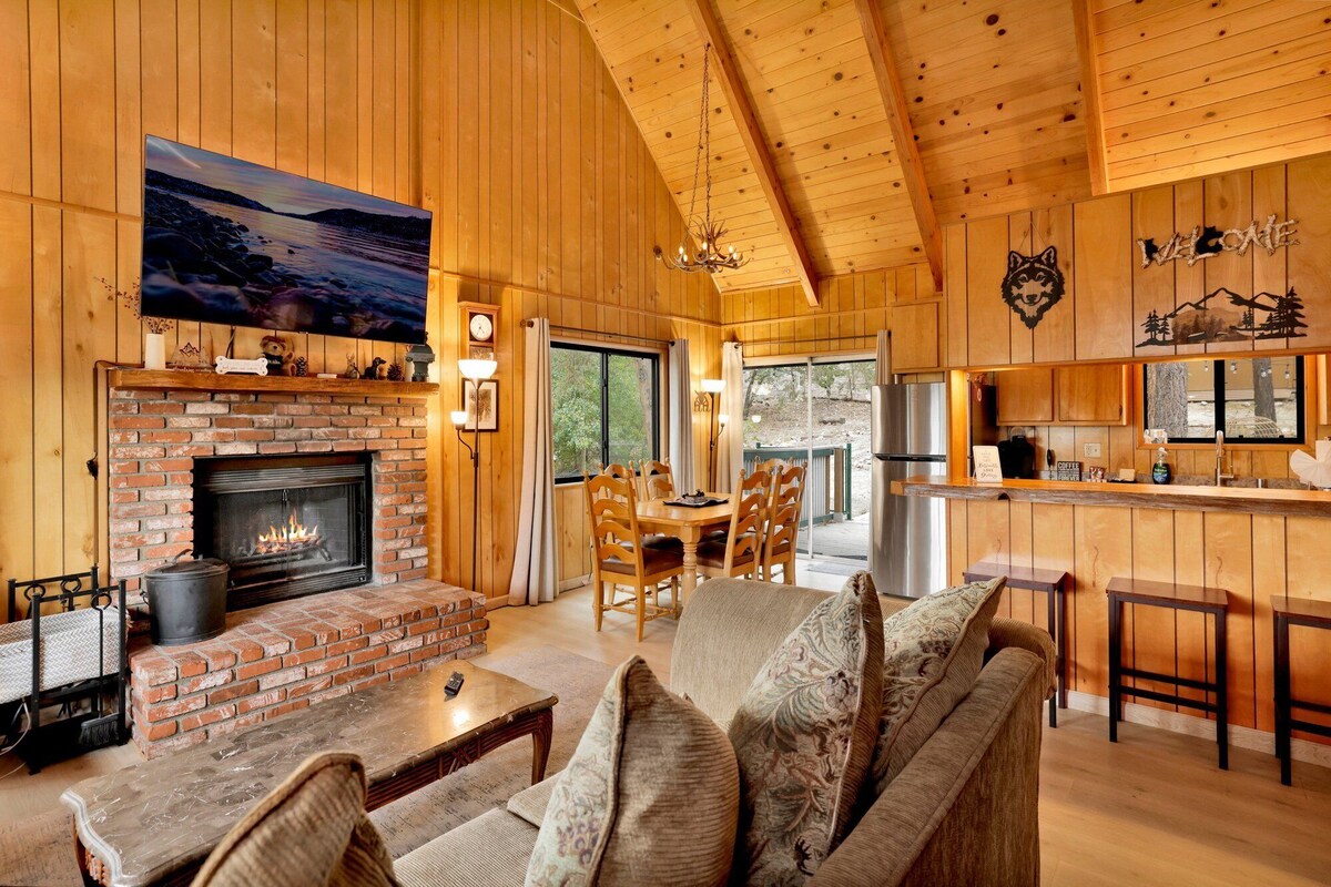 Lakeview Pines Log Cabin - Custom Built Village Log Cabin Retreat w/ Hot Tub, Pool Table, and Lake Views Discover the charm and rustic elegance of Big Bear from our Lakeview Pines Log Cabin! Perfectly situated across the street from the lake, offering breathtaking lake views, and a short stroll to local marinas and the downtown Village shops, this adorable chalet offers the very best of Big Bear at your fingertips. Boasting a private hot tub, BBQ and firepit patio, and a fun packed game room garage, the possibilities for your vacation are endless from here! Surrounded by soaring knotty pine ceilings paired with gorgeous hardwood floors and a centerpiece fireplace, you will love snuggling in the living room and watching the snow falling from the big open windows. The open floor plan is perfect for group and family retreats, offering a spacious dining area and a fully equipped kitchen with stainless appliances and cookware to prepare home cooked meals and holiday feasts. Two spacious sleeping areas are conveniently located on the lower main level accompanied by a remodeled bathroom, while the upstairs offers an expansive primary suite and private bath. Step out onto the sun deck to relax and enjoy the mountain views and lakeside breeze or head to the spacious backyard, which is ideal for entertaining, offering a serene setting amidst nature. This home is the epitome of comfort and style, blending modern updates with rustic charm. Hop in the car and you are within a quick ten-minute drive over to the local ski resorts, zoo, grocery stores, and more. Come experience your newest home away from home here at Lakeview Pines Log Cabin. Sleeping Arrangements: Bedroom 1: King Bed. Streaming TV- Downstairs Entry Level Bedroom 2: King Bed, Streaming TV- Downstairs Entry Level Open Loft/Bedroom 3: Queen Bed + Two Day Beds, Streaming TV- Upstairs 2nd Level Bathroom Arrangements: Hallway Full Bath- Downstairs Entry Level Private Full Bath- Open Loft/Bedroom 3- Upstairs 2nd Level -Sleeps 6 -3 Car Driveway Parking -No Pets Allowed -1,176 Square Feet -City Permit #: Our prices include all fees. No hidden fees.