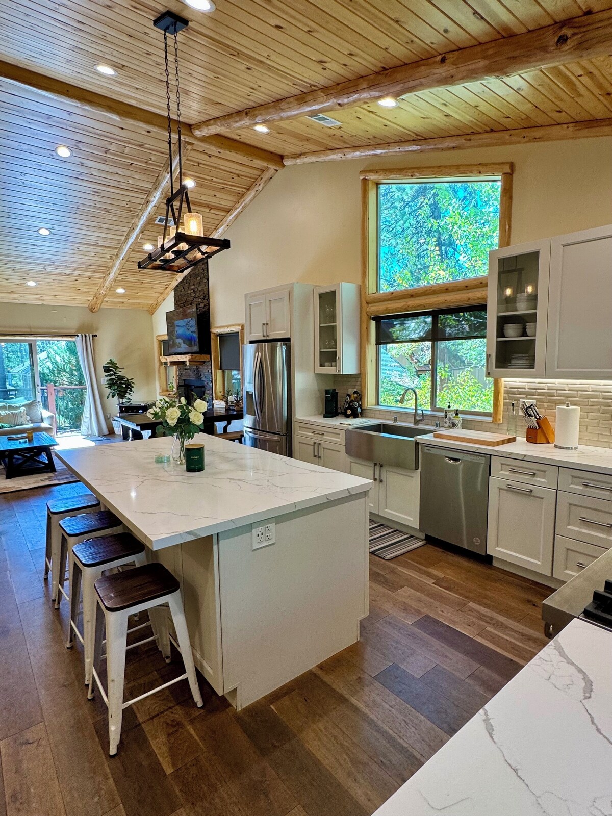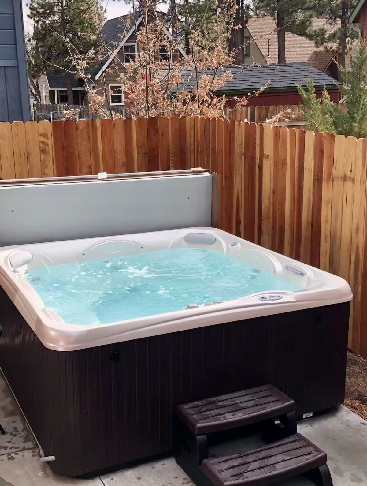 Slow down, soak in the spa, breathe in the clean mountain air, & escape to… Summit Dream Stays! This stunning private residence boasts a blend of contemporary design fused with rustic charm. Built in 2018, the cabin has 3 bedrooms / 2 baths & 1 AMAZING LOCATION! Walk or ride to: Alpine Slide - 0.4 mi The Village – 1 mi Big Bear Lake – 1 mi Snow Summit – 3.0 mi Bear Mtn - 4.8 mi Includes: Spa Game room (arcade game, shuffleboard) BBQ Fenced yard 3 TV’s Property is a single story, single family home, 1352 sq. ft interior space. Equipped with a full kitchen, living room, dining room, room, outdoor space with BBQ, jacuzzi, & game room! Sleeps up to 7 guests comfortably: Bedroom #1 has 1 King bed, en-suite bathroom, closet Bedroom #2 has 1 Queen bed, closet, 55” TV Bedroom #3 has 2 Twin beds, closet, 55” TV Living room has a large sectional couch, gas fireplace, board games, 65\ ,