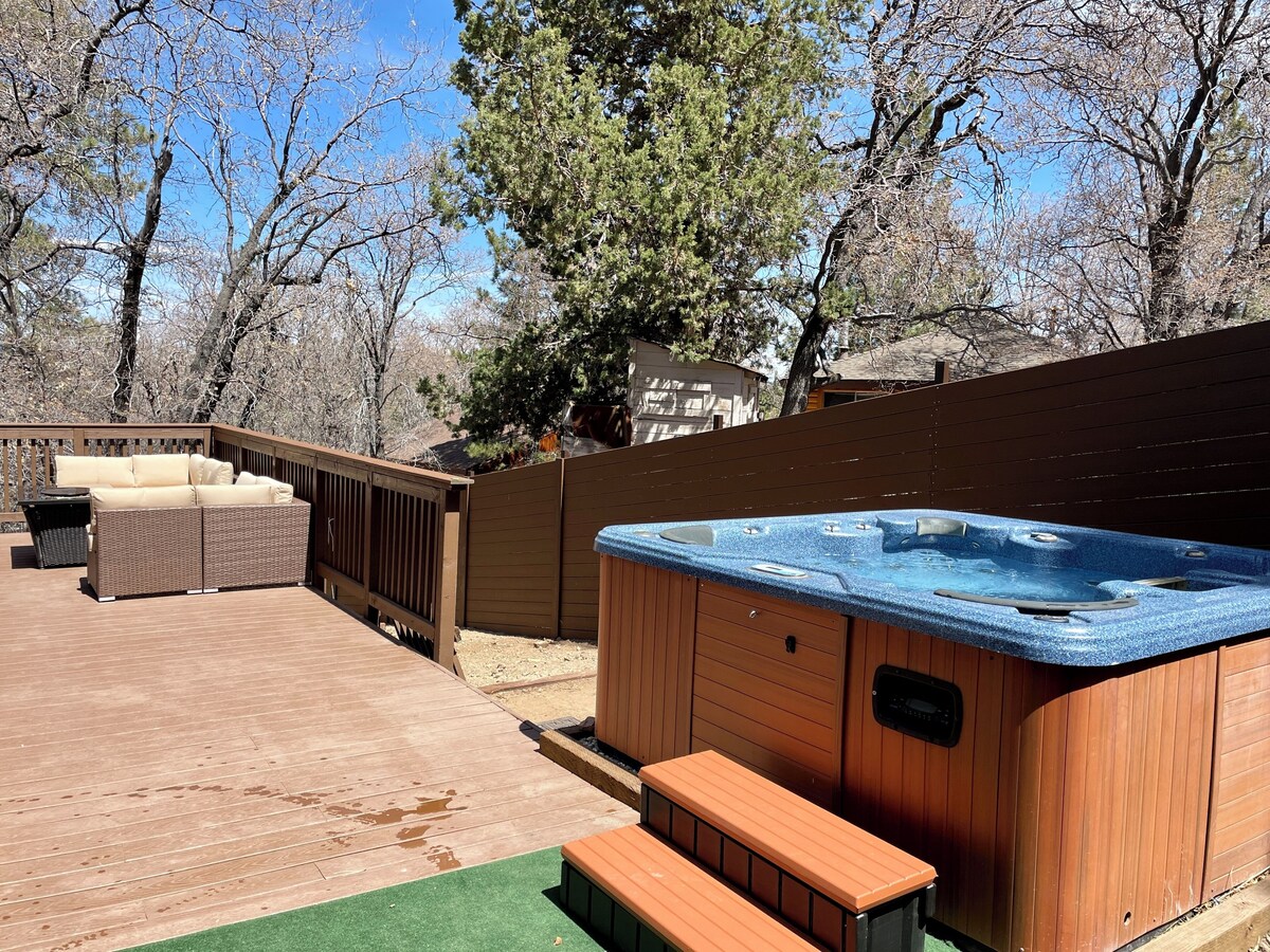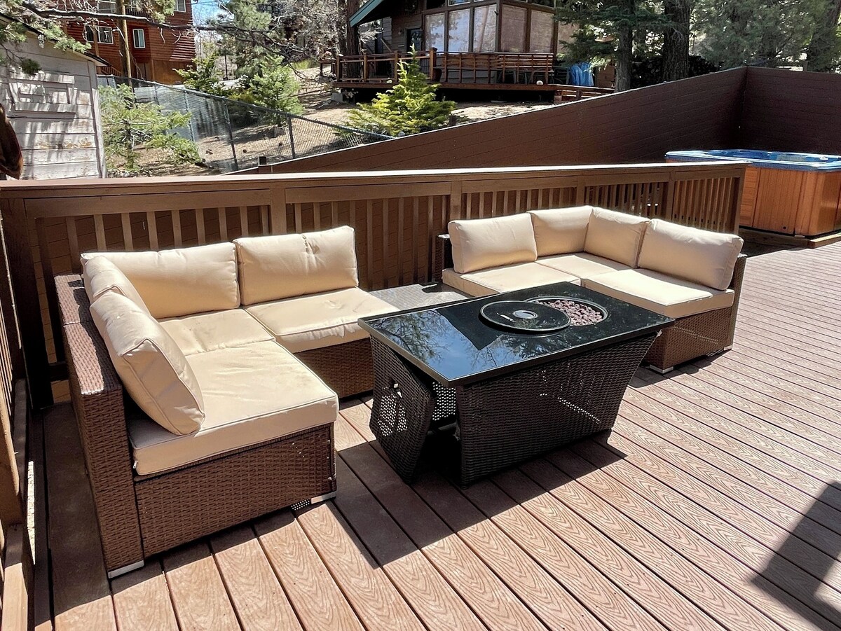 Herzl’s Hideaway is nestled in upper Moonridge offering panoramic views of Bear Mountain and Big Bear Lake. This warm, welcoming cabin is cozy but spacious and features NEW DECKS & HOT TUB! Everything you need to make your vacation special and memorable. Close proximity to the ski resorts, Alpine Zoo, coffee and donut houses, shopping, dining, downtown Big Bear, the Village, the lake and hiking trails, you’re never more than a few minutes and a short car ride to where you want to be! The space: You’ll be delighted by the whimsical bear cubs that welcome you upon entry and “hang out” with you in the living room. Every space is thoughtfully appointed with amenities far beyond what you’d expect! Super comfy beds, Smart TVs in every room, central heat in winter, ceiling fans to keep spaces cool in the summer months, two decks to relax and take in the amazing views are just the start! Your health and welfare is utmost to us! There is an Air & Surface Pro in the cabin that works continually to clean and sanitize the air and surfaces of germs and viruses. Your vacation can be worry-free at Herzl’s Hideaway! (Details are in the House Manual). It goes without saying that there is very reliable WiFi to meet the needs of today’s average family or traveling group. We know you’re working from home and the kids are distance-learning, so you can trust that you won’t skip a beat even while you spend some time away. Wireless chargers are available on every bedside table for compatible devices, DirecTV, Echo Dot, games, books, and more in the living room will make it easy to stay in, too! Breakfast, lunch, dinner or cooking for the holidays, you’ll have everything you need to feed the troops in the beautiful “Cook’s Kitchen.” We’ve got you covered with lots of tools, utensils, small appliances, and sleek, modern appliances. Plenty of serving ware, dishes and glassware to set the table, too! The newly installed DECKS & HOT TUB make this cabin the ultimate relaxation station winter, spring, summer, and fall! Come stay at Herzl’s Hideaway and discover comfortable luxury! Other things to note: 1. Fires and Firewood - *(If Applicable) a) Firewood for the indoor fireplaces is not provided. Please be prepared to purchase wood upon arrival in any of the markets and grocery stores in town. B) No campfires, fire pits or open charcoal fires are allowed outside. 2. Barbeque - propane is provided by the management company 3. Hot Tub - *(If Applicable) a) No children under the age of 14 are permitted in the hot tub without adult supervision. When using the hot tub, remember there is a certain health risk associated with this facility. Use at your own risk. 4. Smoking a) Cabin is non-smoking inside b) Smoking is permitted on property outside, however Guest(s) must properly dispose of butts or any other smoking materials. Smoking is prohibited in the National Forest, which is located beyond the steps in the backyard. 5. Pets a) There is a 2 dog limit unless explicitly stated otherwise by management in advance to your trip. b) Housebroken K9 guests are welcome at the cabin! We only ask that you bring a kennel for your fur baby in case you need to leave them unattended for any period of time throughout your stay. Pets are asked to keep off the beds and furniture. Please be sure to clean up after your pet. TAKE YOUR PETS WITH YOU WHEN YOU LEAVE THE CABIN. Leaving them behind could result in a fine for incessant barking. c) There is a $25 pet fee that goes directly to housekeeping to accommodate for extra cleanup and sanitization after an animal stays at the cabin. 6. In order to lessen the incidents of noise violations, this cabin is equipped with interior and exterior noise sensors. There is one sensor inside the cabin and one outside. Please DO NOT REMOVE or RELOCATE these sensors as they are programmed to alert us if the noise level is above the allowed decibel level per county and city ordinance. It is NOT a recording device so you can rest assured we are not monitoring our guests' conversations. Your comfort and privacy are of utmost importance to us and we value and protect your privacy. 7. Identification All guests are required to submit a photo ID upon check in. The ID must match the name of the reserving party. If your name differs from that of your VRBO account please let us know ahead of time to we have time to address the concern. Refunds are not issued due to lack of appropriate identifying credentials. Acceptable forms of ID are government issued picture ID's, Drivers Licenses, Passports, State ID's, International picture ID's, and other picture ID's upon prior approval. This is a mandated by the City of Big Bear and unfortunately we are not able to make exceptions. Emergency Room - Bear Valley Community Hospital - 41870 Garstin Dr (2.9 miles) Urgent Care - 41949 Big Bear Blvd, Big Bear Lake, CA 92315 (2.8 miles) Major Grocery Stores - Vons - 42170 Big Bear Blvd | Stater Bros - 42171 Big Bear Blvd (3.1 miles) Our prices include all fees. No hidden fees.