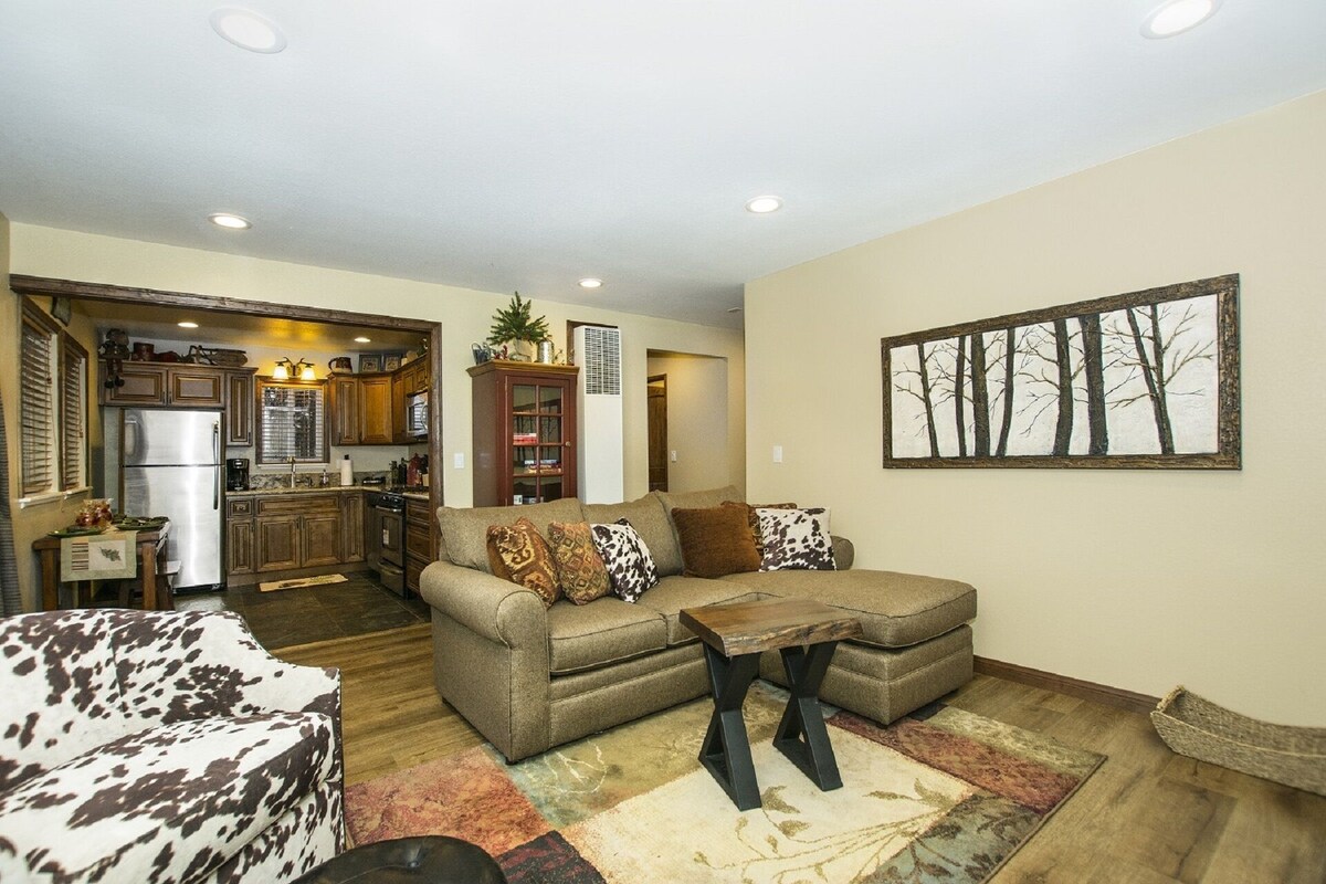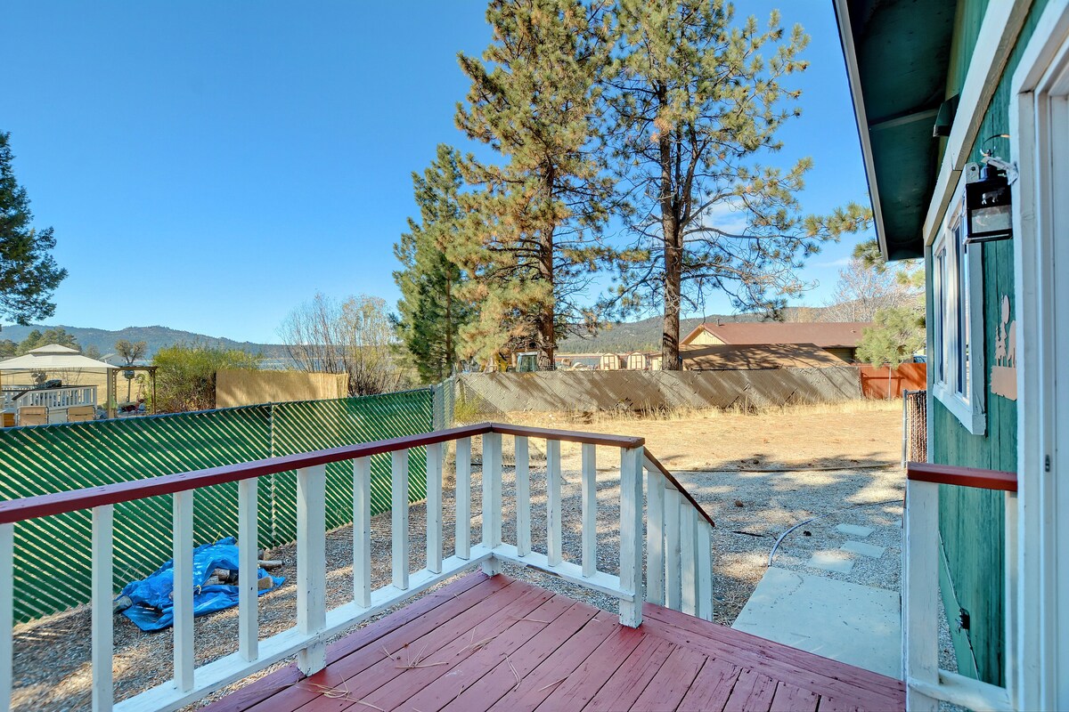 This 2 bedroom 1 bath home is perfect for year round family vacations. It's location is a 2 minute walk to Swim Beach, for summer fun and a short drive to the ski resorts for winter fun. The home has a beautiful newly remodeled kitchen with granite countertops and stainless steel appliances, including refrigerator, range, dishwasher and microwave oven, Kitchen comes complete with all the tools you will need to prepare meals. Each bedroom has a queen sized bed with pillows and linens. The newly remodeled bathroom has a double sized walk in shower, towels provided. The living room has a cozy wood burning stove and the sofa has a pull out bed that will sleep 2. Through the sliding door you will find a deck with a beautiful view of the lake and mountains. Our prices include all fees. No hidden fees.