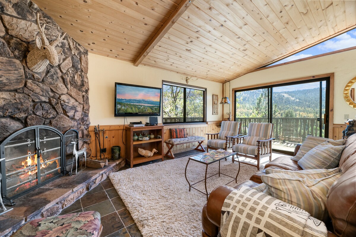 Welcome to Canyon Crest View FREE 3rd NIGHT Book 3 nights for any stay before 12/19/2025 & get your FREE 3rd night with code FREE3 in booking notes. Does NOT apply 11/21/25-11/29/25! Applies to new bookings only, cannot be combined with other offers. Must be mentioned at time of booking. SUMMER: 1 FREE kayak, bike, or Paddleboard RENTAL, or 50% off a double kayak for 2 hours. WINTER: 1 FREE (1 day) SKI/SNOWBOARD beginner rental is included in booking! & UP TO 20% SAVINGS on LIFT TICKET window prices when purchased more than 3 days in advance! \ - Stephanie M. July 2024 MOUNTAIN VIEWS from Hot Tub! Breathtaking Views from this Cabin nestled in the trees! You will truly feel \ yet it's so close to the LAKE! Relax in your large, private HOT TUB while enjoying the gorgeous Mountain views! Moonridge location! Incredible ski slope views from the living room. Flat Screen TV. WIFI. Fireplace. Everything you will need at an awesome price! Enjoy this perfect Lake & Ski Cabin for your next adventure to Big Bear. Pets are welcome inside & out with a FENCED YARD to roam freely. SUPER CLOSE to LAKE & VILLAGE, Dining, Shopping, & more, with a steep driveway. (There is a flight of stairs to access this cabin) LOCATION: 1.7 Miles to BEAR MOUNTAIN SLOPES (5 Minutes Drive.) 2 Miles to ALPINE ZOO (5 Minute Drive.) 3 Miles to the LAKE (8 Minute Drive.) 3.3 Miles to SNOW SUMMIT SLOPES (9 Minute Drive.) 4.8 Miles to the VILLAGE (12 Minute Drive.) SLEEPS 6 People - 2 Bedrooms, 1 loft, 1.5 Bathroom. 1200 sq ft. - 2 CAR MAX. Bedroom 1 - Queen (2 pp.) Bedroom 2 - Queen (2 ppl) Bedroom 3 - Double/Twin bunk bed (3 ppl) Bathrooms- 1 full (bath & shower) on the lower bedroom level. 1/2 bathroom upstairs. BY REQUEST: PACK n PLAY CRIB & HIGHCHAIR are available at an ADDITIONAL COST!! $75 per item - delivery fee NEWER HOT TUB FREE WI-FI GREAT VIEWS of slopes FLAT-SCREEN TV WOOD BURNING FIREPLACE FENCED YARD (Full - Great for dogs!) CHARCOAL BBQ SPACIOUS DECK WASHER/DRYER DISHWASHER Bar soap, Shampoo, & Conditioner, provided Enjoy a large rock fireplace in the living room, bright sunlight shining in, & breathtaking views of the ski slopes & nearby mountains while relaxing in your living room. FLAT SCREEN TV & WIFI are there for some indoor entertaining. Vaulted wood beam Ceilings add to the cuteness of this cabin. Relax on the spacious deck with a morning cup of coffee & take in the AMAZING VIEWS of the surrounding mountains, ski slopes, & beautiful trees. The night lights of the slopes are a spectacular view as well. Spacious kitchen with seating for 6. Full Kitchen with Refrigerator, Dishwasher + Washer/Dryer. Dine with a view of the mountains & slopes. Sliding glass doors connect the kitchen to the outdoor patio deck, where more beautiful views of the outdoors & the quiet sounds of Big Bear await you. A spacious HOT TUB sits on the deck. Relax beneath the stars or take an early morning. THERE IS A FLIGHT OF STAIRS TO ACCESS THIS CABIN YOUR GETAWAY GIVES BACK: A portion of your stay supports wildlife conservation through our partnership with Kind Traveler and Friends of the Big Bear Alpine Zoo. NO SMOKING NO GARAGE ACCESS NO AIR CONDITIONING All basic kitchen items provided - NO PANTRY ITEMS! All linens provided All homes come with cozy blankets & fresh towels, & linens. Our dedicated cleaning crew has prepared this vacation home for your arrival & will clean upon your departure. FENCED Yard - Fully fenced (not intended for small dogs) Dog Friendly ($35 per dog per night, 2 dog max) It is REQUIRED to keep dogs off furniture & bring a pet bed. SORRY, NO CATS WELCOME STRICTLY ENFORCED by BBL CODE ENFORCEMENT GOOD NEIGHBOR POLICY RING CAMERA at Front Door 10pm NOISE ORDINANCE 2 CAR MAX - NO STREET PARKING 6 ppl MAX - DO NOT EXCEED Application - VRR-2025-0925 Our prices include all fees. No hidden fees.