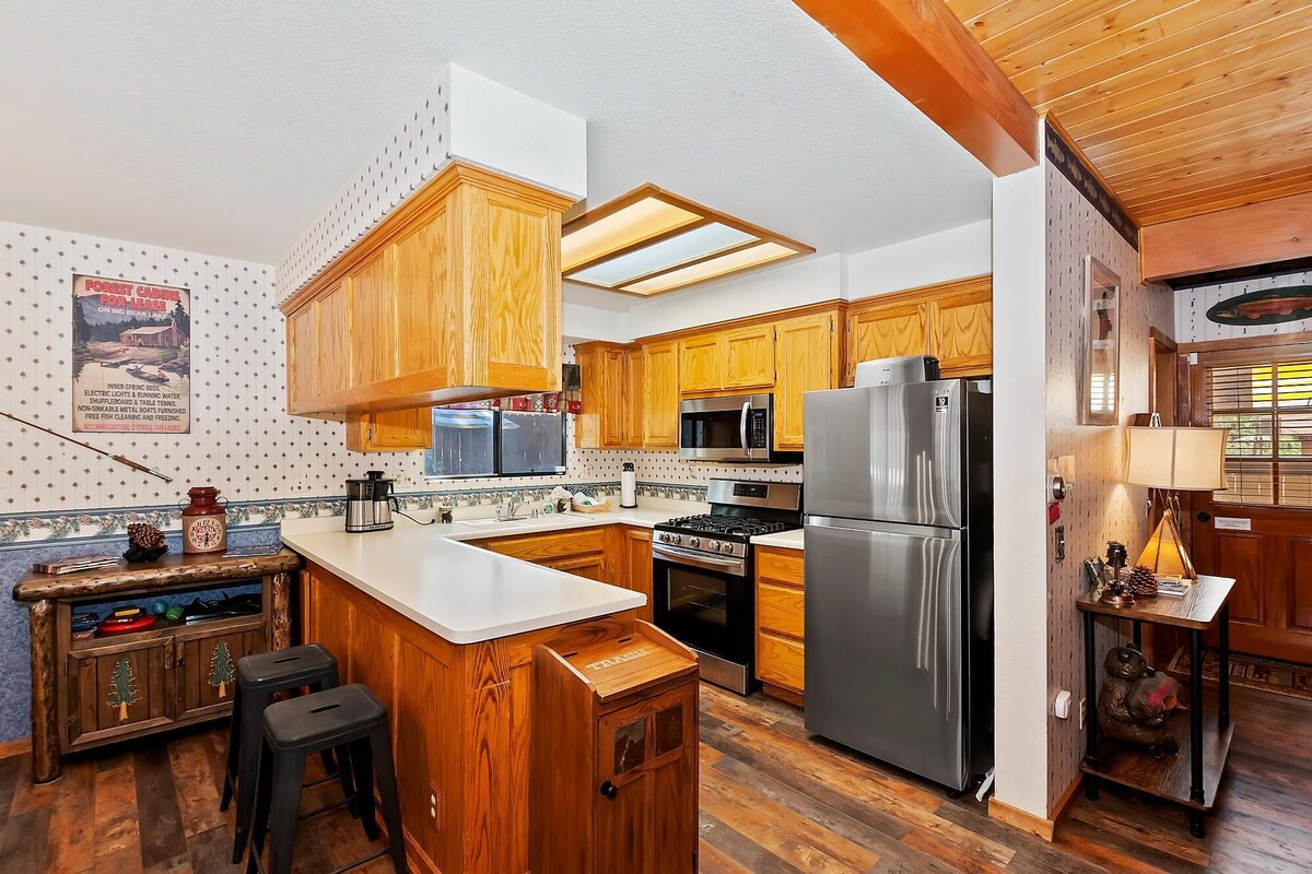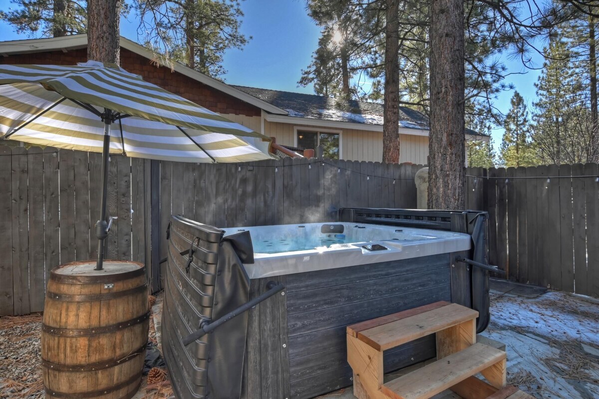 Welcome to Relaxation Flats, a charming cabin nestled on a spacious corner lot in the peaceful Fox Farm neighborhood of Big Bear. This cozy retreat offers the perfect blend of rustic cabin charm and modern amenities, making it the ideal getaway for families or small groups of friends looking to unwind and explore the beauty of the mountains. ★★ Cabin Highlights ★★ ✓ Prime Location: Situated in the serene Fox Farm neighborhood, Relaxation Flats is just a short distance from the Stanfield Cutoff bike path and local amenities, providing a peaceful escape with convenient access to Big Bear's attractions. ✓ Outdoor Space: Enjoy a large corner lot with a flat driveway, plus a back deck featuring a pellet grill/smoker and propane BBQ, perfect for cooking and dining al fresco. ✓ Comfort & Relaxation: The cabin is equipped with a wood-burning fireplace and a hot tub, ideal for relaxing after a day of outdoor adventures. Evening ambiance is enhanced with string lights, creating a cozy atmosphere. ★★ Main Living Areas ★★ Step inside Relaxation Flats and you’ll be greeted by an inviting, open floor plan with true cabin accents. The spacious living room, dining area, and kitchen flow together seamlessly, providing a perfect space to gather with family and friends. ✓ Living Room: Relax on the comfortable couch, loveseat, and lounge chair, all centered around a wood-burning fireplace and a large flat-screen Smart TV with sound bar for entertainment. (Guests are asked to bring their own wood.) ✓ Dining Area: A cozy nook with large windows allows natural light to flood the room. The dining table comfortably seats six, while the bar top is great for casual meals or appetizers. ★★ Kitchen & Dining ★★ The fully equipped kitchen features stainless steel appliances, a coffee maker, and everything you need to prepare meals during your stay. A bar top separates the kitchen from the dining area, making it easy to serve meals and socialize at the same time. ✓ Kitchen: Includes stainless steel appliances, a coffee maker, and ample counter space for preparing your favorite meals. ✓ Dining Area: A table with seating for six is surrounded by windows that offer a beautiful view of the outdoors. ★★ Sleeping Arrangements ★★ Relaxation Flats offers two well-appointed bedrooms and a full bathroom. Ideal for small families or groups, the sleeping arrangements provide comfort and privacy for all guests. ✓ Bedroom 1 (Upstairs Loft): This cozy space includes a Full-over-Queen bunk bed and an additional Queen bed. The room also features a Smart TV and closet for your storage needs. ✓ Bedroom 2: This room offers a Queen bed, solid pine furniture, and lake-themed decor. A Samsung flat-screen TV is also included for your entertainment. ✓ Bathrooms: A full bathroom with a shower/tub combo is located upstairs, and the lower level includes a washer/dryer combo and access to the back deck. ★★ Outdoor Features ★★ Enjoy the serene outdoors with a spacious front yard and back deck that’s perfect for relaxing and entertaining. ✓ Back Deck: The deck is equipped with a built-in pellet grill/smoker, propane BBQ, and string lights, providing a perfect setting for evening meals or relaxation. The hot tub on the deck offers a great spot for stargazing and unwinding after a day of adventure. ✓ Front Yard: The large corner lot features natural landscaping, providing a peaceful, scenic setting for your stay. ★★ Additional Features ★★ ✓ Amenities: This cabin includes a wood-burning fireplace, Smart TVs, stainless steel appliances, a washer/dryer, and all necessary linens and towels. ✓ Note: Exterior security cameras are in place for property monitoring and policy enforcement. Guests are responsible for bringing their own firewood. Relaxation Flats offers a perfect mountain retreat where you can escape the hustle and bustle of everyday life and unwind in a tranquil, cozy cabin. Book your stay today and experience the ultimate relaxation in Big Bear! 2024-2566 Important: Dear Traveler, you will be charged with USD 200 in case you include a Pet in your reservation as a Refundable Damage Deposit for Pets. Our prices include all fees. No hidden fees.