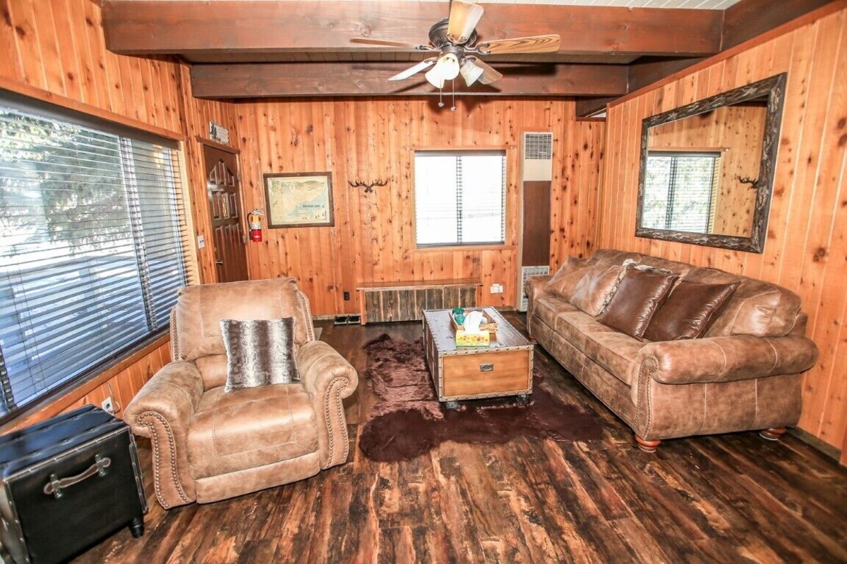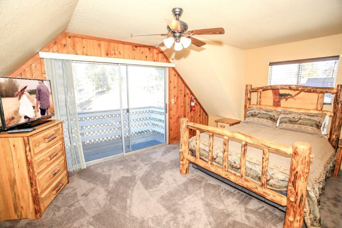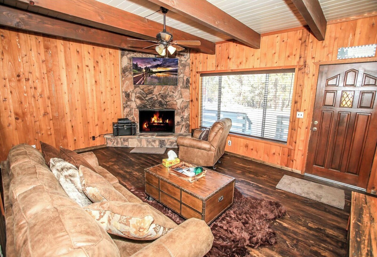 Come and enjoy this cozy little hideaway right in the center of the Big Bear Village! Restaurants, Bars, Movie Theater, Bowling Alley, and even the lake, are just a few steps away! LIVING SPACE - Comfy 900+ sq ft home with living room, ceiling fans, dining table, bar seating, a convenient gas fireplace, and plenty of comfortable living room seating. ROOMS & BEDS - 2 bedroom, 1.5 bath. The upstairs first bedroom suite has a queen bed, TV, and deck. The second upstairs bedroom has double/twin bunk beds and a TV. Extra blankets and pillows are available. KITCHEN - Features a full kitchen with new stove/oven, refrigerator, microwave, rice cooker, dishwasher, blender, toaster, coffee maker, dishes, pots/pans, and more. AMENITIES - Fast WiFi, Roku, board games, and card games. Relax near the cozy gas fireplace or go for a walk in The Village. OUTDOORS - The Big Bear Village! Ideal for those that prefer a short walk to shopping and local restaurants. PARKING - 2 car driveway Close to National Forest hiking trails Lake - close walk Village - close walk Snow Summit - 2.1 miles Bear Mountain - 3.7 miles Other things to note: Big Bear Lake local ordinance 99.300 limits maximum occupancy to 5 people. Children, toddlers, and infants do count as a person. Occupancy is permitted per City Ordinance - over occupancy could result in a fine or non-refundable eviction. Parking for 2 vehicles No smoking Pet fee $75 per pet (dogs only) Check in: 4 pm Check out: 11 am Our prices include all fees. No hidden fees.