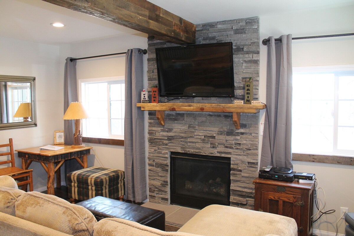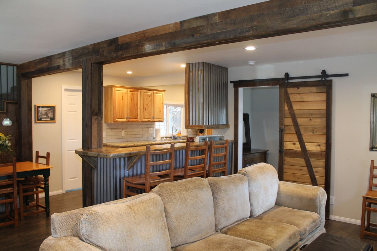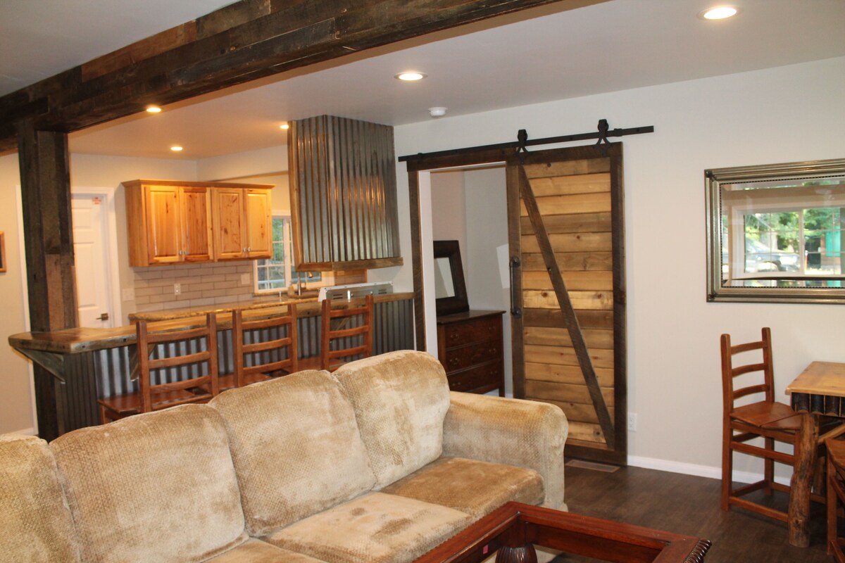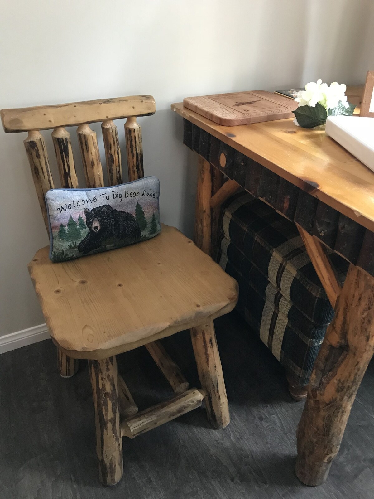 CHARMING HISTORIC HOME IN THE VILLAGE - COMPLETELY REMODELED 3 bedroom, 2 bathroom cabin is beautifully and completely Remodeled and is just steps to the Village. WiFi, 2 Smart TV's with Firestick & Roku remote for streaming, Blu-Ray player, Fireplace, Washer/Dryer, Library, BBQ, Large Front Porch and Back Deck, Driveway Parking, Pet Friendly. LOCATION! LOCATION! SO CONVENIENT, WALK TO THE VILLAGE, LAKE & TRAILS! OUR HOME IS A VILLAGE DELIGHT ! Dazzling \ is just steps from our Home. Winter turns The Village into a Wonderland of Dazzling Lights. Stroll to the Village all dressed in it's festive beauty, right at the end of our block! Our home is only four houses from The Village, which is less than a 100-yard walk and a short easy walk, on sidewalks, to the Lake, Rotary Park and Pine Knot Marina! The National Forest is also just up the street from our home, for easy access to great Hiking and Biking trails. Our home is nestled in a quiet neighborhood, yet steps to The Village! An added bonus during the snow season, is that our home is an easy drive just off the main Village road. No icy hills to navigate, and our street is plowed during snow season. WHAT YOU'LL LOVE: The entire interior of the cabin is upgraded and completely remodeled, including the carpet and flooring! Cozy up to the gas log fireplace when the chilly weather pays a visit. A Weber Propane BBQ is on the large back deck. Large Pine Trees offer a great space for Hammock napping. The spacious covered grand Front Porch has a Table with 4 chairs, and 2 rocking chairs, to extend the living space into the great outdoors. The front porch is a great place for dining, fun board game and card playing, visiting, or just relaxing with a good book. This house is as clean as it gets. Plenty of driveway parking, including boat parking. Pet Friendly. DOWNSTAIRS: 1 Queen Bedroom with dresser, closet and ceiling fan 1 Full Bathroom fully remodeled with new tub & shower, tile, and vanity Laundry area with Washer and Dryer Kitchen with new cabinets and granite countertops Refrigerator with filtered water and ice dispenser Kitchen Aid dishwasher Microwave oven Gas stove-top and oven Coffeemaker, Blender, Toaster Dining area seats 6 Bar top counter seats 2 Living room with gas log fireplace, WiFi, Smart TV with a Firestick for streaming, Blu-Ray player Library of Books, DVD’s, Board-games and Playing Cards UPSTAIRS: 1 Cal-King Bedroom with 40” Roku Smart TV and remote for streaming, dresser, closet, desk/chair and sitting area 1 Bedroom with two Twin beds and “Book Nook” 1 Full Bathroom fully remodeled with new tub & shower, tile, and vanity Book Library with reading chair and ottoman EXTERIOR MONITORING: Video Surveillance cameras monitor the exterior of our home. Footage remains private and may be used for liability reasons, and to monitor occupancy compliance, authorized pet compliance, and other policies. It in no way infringes upon the expectation of privacy in these outdoor public areas. Disabling or obscuring the cameras are prohibited and may result in eviction without any refunds. CLEANING PROTOCOL: We have always taken pride in providing a very clean home for our guests. We are now committed to providing you with a safe environment that aligns with expert protocols consisting of Best Practices provided to us by the City of Big Bear Lake and the County of San Bernardino. We are redefining our cleaning and safety standards and will actively monitor and evolve our solutions to ensure a continued focus on the health and safety of our guests. CITY OF BIG BEAR LAKE VACATION RENTAL ORDINANCE: The City of Big Bear Lake’s regulations require that there may only be 3 vehicles at the property. All guest vehicles must be parked in the driveway. No Guest street parking at any time. Music/Noise must be kept to a low level and never be audible at the property line, to disturb our neighbors. No parties. Maximum of 6 occupants at our property at all times, 24/7. There is ZERO Tolerance for violating any of the Ordinance or City Code regulations. See the rental agreement for the complete Ordinance and City Codes. Citations and possible eviction, without any reservation refunds, will be enforced. Thank you for helping to keep our beautiful mountain community a safe and pleasant destination. Our prices include all fees. No hidden fees.