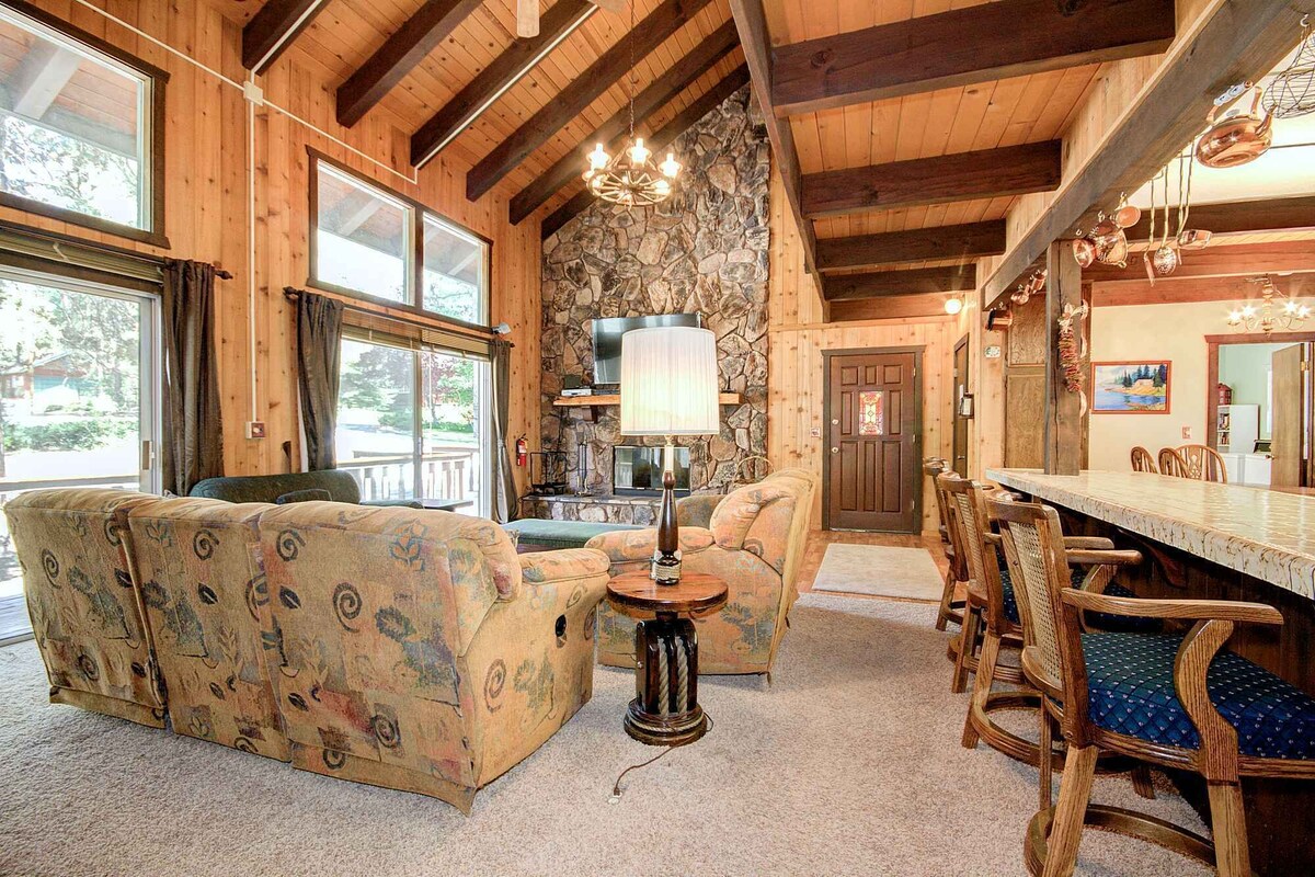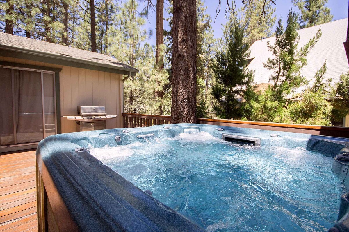 Discover Bond Chateau, the perfect home base for all your Big Bear adventures! Located close to dining, shopping, and just a short drive to the Village, this charming two-story home offers ample parking and plenty of deck space for enjoying those sunny summer days. ★★ BRIGHT AND INVITING INTERIOR ★★ ✓ Living Area: Bask in natural light through large windows and double sliding glass doors. Relax on the comfy seating, including a queen pull-out sofa, or gather around the wood-burning fireplace. Enjoy movie nights or catch the big game on the large flat-screen TV with Roku streaming, featuring YouTube TV, Netflix, Disney+, and Prime. ✓ Kitchen & Dining: The kitchen boasts beautiful wood floors and comes fully equipped for a delightful dinner night in. Bar seating for four and a dining area for five ensure ample space for family meals. Just off the dining area, the game room features a foosball table for friendly competition. ✓ Convenience: A full-size washer and dryer are provided for your convenience. ★★ COMFORTABLE SLEEPING ARRANGEMENTS ★★ ✓ Master Bedroom (First Level): Enjoy a king-size bed, private deck access, and ample storage. The master bath includes a tub, shower, and dual sinks. ✓ Bedroom Two (Upstairs): Features a twin-size bunk bed and a queen-size bed, ideal for little ones or additional guests. ✓ Bedroom Three (Upstairs): Offers a king-size bed and plenty of dressers for storage. A shared bath with a shower is conveniently located between the two bedrooms. ★★ OUTDOOR FUN AND RELAXATION ★★ ✓ Backyard: The fenced backyard includes a deck and plenty of shaded areas for outdoor fun. ✓ Front Deck: Unwind in the hot tub or fire up the propane grill, perfect for long summer days and evenings. ★★ WHY CHOOSE BOND CHATEAU? ★★ ✓ Convenient Location: Close to all Big Bear attractions. ✓ Comfortable Home: Featuring a well-equipped kitchen, game room, and multiple sleeping options. ✓ Ample Parking: Plenty of space for your group. ☆☆ MAKE BOND CHATEAU YOUR BIG BEAR RETREAT! ☆☆ Whether you're seeking relaxation or adventure, Bond Chateau offers the perfect blend of comfort and convenience for your next Big Bear vacation. Book now and enjoy the ultimate mountain retreat! 2025-0932 Important: Dear Traveler, you will be charged with USD 200 in case you include a Pet in your reservation as a Refundable Damage Deposit for Pets. Our prices include all fees. No hidden fees.