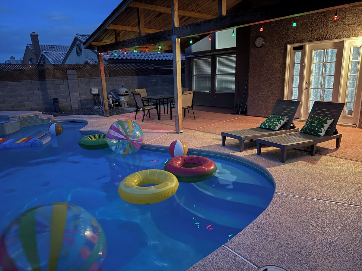 Pool House! Newly renovated 3 bed/2.5bath with huge backyard. Enjoy the whole house with everything you need for vacation, a place you will feel more than home in Vegas! *** Pool with patio and outdoor furniture. (no heated/no jacuzzi) *** 2 car garage parking and driveway parking. ***Brand new air conditioner. ***Brand new water heater *** High ceiling living room with 55\ ,
