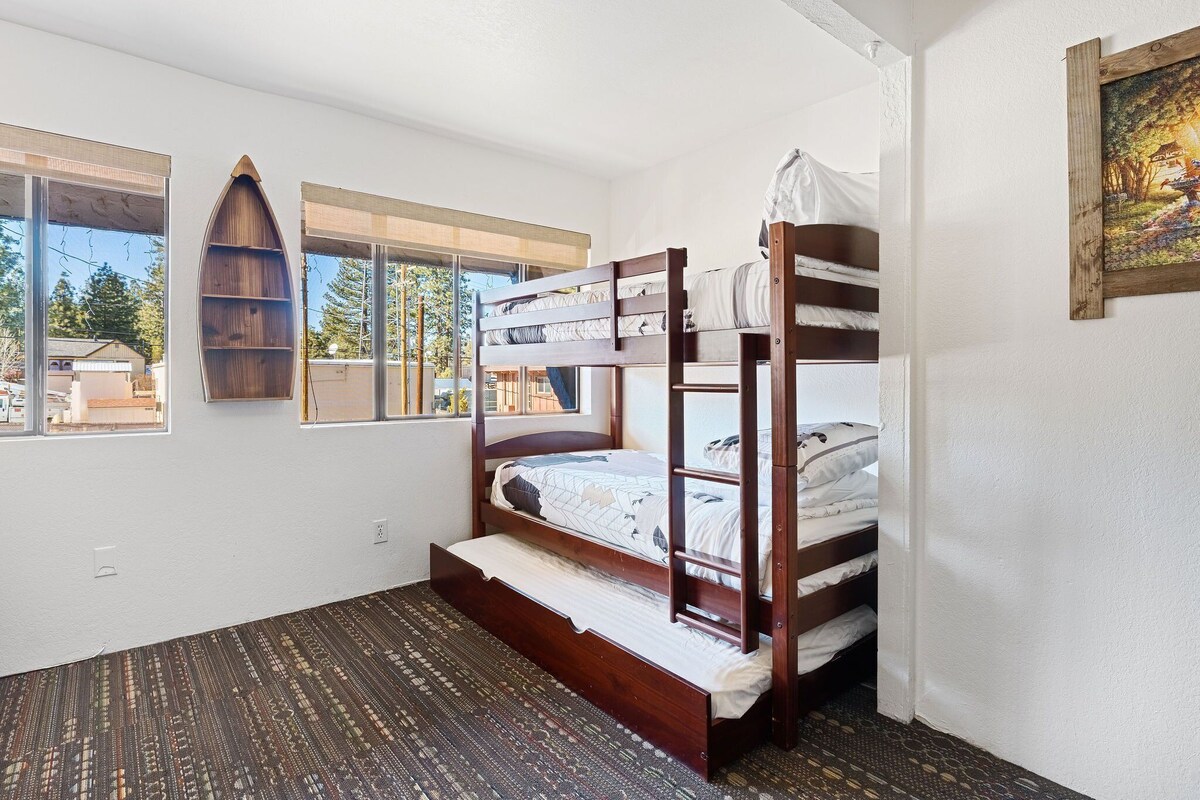 Welcome to the unique charm of the Grizzly Bear Suite at Bear Suites Village Inn, a one-of-a-kind vacation haven nestled in the vibrant heart of Big Bear Lake Village. The adventurous spirit will find joy in this upper-level suite, which is accessed by ascending a full flight of stairs, turning every arrival into a mini workout. Within the suite, you're met with a fully-equipped kitchen ready to aid you in preparing your favorite dishes. The suite's cozy atmosphere is heightened by the gas fireplace, the perfect companion after a day filled with activities. Ideally positioned, the lodge offers easy access to a myriad of local amenities. Restaurants, the Village Theater, quaint coffee shops, unique shopping boutiques, and a convenience store are all just a stone's throw away. Not to mention the nearby Big Bear Lake, a focal point of your water-related fun. Retire for the night in the tranquil bedroom, fitted with a comfortable king bed, and an en-suite bathroom for your convenience. For extra sleeping space, the living room houses a sturdy bunk bed. While central air conditioning is absent, nature steps in with its refreshing mountain breeze, providing natural ventilation. Immerse yourself in the delightful blend of comfort, convenience, and Big Bear Lake Village's charm with a stay at the Bear Suites Village Inn - Grizzly Bear Suite. Parking On-site parking at the property accommodates one vehicle. According to city ordinance: - Street parking directly in front of the lodge is permitted. - However, during snowy conditions, you cannot park on the street. - It's imperative to avoid leaving vehicles parked, stopped, abandoned, or unattended on any city street. - There is a large Free Parking area located off of Bartlett, between Beaver Lane & Village Drive if you need additional parking. Location Description Bear Suites Village Inn boasts a prime location in the heart of Big Bear Lake's Village. This prime location is mere steps to everything one could want. Distance to key places: - Lake: a couple of hundred feet - Nearest boat ramp: 0.5 miles - Snow Summit: 1.9 miles - Bear Mountain: 3.7 miles - Grocery Stores: 2.3 miles - Closest dining: steps away Immerse yourself in the Big Bear experience. This haven for outdoor enthusiasts offers a myriad of activities that change with the seasons. When winter dusts the landscape with fresh snow, engage in thrilling activities such as skiing, snowboarding, snowshoeing, and tubing. Summer shifts the playground to the lake, where water sports abound, and the trails, are perfect for hiking, mountain biking, and horseback riding. Golf enthusiasts won't be left out, with courses available to test your skills. Big Bear Lake is your year-round ticket to adventure and fun. ** Bear Suites Village Inn Rules ** Welcome to the rules for Bear Suites Village Inn - Grizzly Bear Suite. Our aim is to maintain a harmonious environment that aligns with local Code Compliance and respects the comfort of all guests. As part of this effort, we've established some friendly but firm and inflexible house guidelines. 1. Maximum Occupancy: 4 guests (4 adults max). 2. Parking: Space for 1 vehicle. Exceeding the limit may result in fines of up to $1,000. 3. Pets: Pets Allowed (Max: 2 pets). - Pets require pre-approval: Post-approval, a $20 fee per pet applies (charged post-booking). - Unapproved Pets: incur a minimum of a $1,000 fine. - Pet Guidelines: ** Kennel pets when unattended. ** Keep off furniture/beds. ** Clean up after them. ** Charges apply for pet damages. *** Coyote Warning: *** Coyotes are extremely prevalent in Big Bear, even in the most densely populated areas. If you see one, you can bet they're part of an unseen pack. These animals are bold and territorial. They pose a significant threat to pets. For their safety, never leave your pets unattended, even in fenced areas, especially after dark. Coyotes are known for their ability to overcome barriers, including high fences. And they're even known for attacking pets that are on a leash. We cannot overstate the need for heightened vigilance concerning your pets' safety. 4. Check-In: ID verification is required for check-in. 5. Noise: Quiet hours from 9 pm to 8 am. You are not allowed to be outside, in a hot tub, play music or create any noise from inside of the residence that could be heard outside of the home. If these rules are violated, Code Enforcement could impose fines of up to $1,000 or eviction. (We have no control over Code Enforcement's decisions.) 6. Air Conditioning: NO Central AC. 7. Ants: Sometimes our ants can be a bit over-friendly. To keep these small visitors at bay, we suggest promptly cleaning up right after each meal and don't leave food out. (We do use ant bait & ant traps… and the ants tend to look at those as snacks.) 8. Trash: You are mandated by ordinance to dispose of your trash at the designated trash site. If you require assistance, we can arrange a pick-up service for a nominal fee. 9. Video Surveillance & Noise Monitors: We employ external video surveillance and noise monitors at most of our properties. (We do not have video or audio monitoring inside of the residences.) 10. No Smoking/Vaping: We have a very strict No Smoking and/ or No Vaping policy on the grounds of all of our properties. * If any guest smokes or vapes on the premises during their stay, a minimum cleaning fee of $750 will be charged automatically to the Credit Card on file to cover the cost of carpets cleaning, dry cleaning of all bedspreads, curtains, etc. And the security deposit will be forfeited. 11. Age: Minimum booking age is 18. 12. Parties: No parties allowed; parties will result in immediate eviction and forfeiture of the security deposit. Additional cleaning fees may apply. 13. Communication: For questions or concerns, we're available via phone or email. * Note: Code Enforcement enforces all of the ordinances in Big Bear Lake. We have no control over the decisions they make, up to and including fines and e
