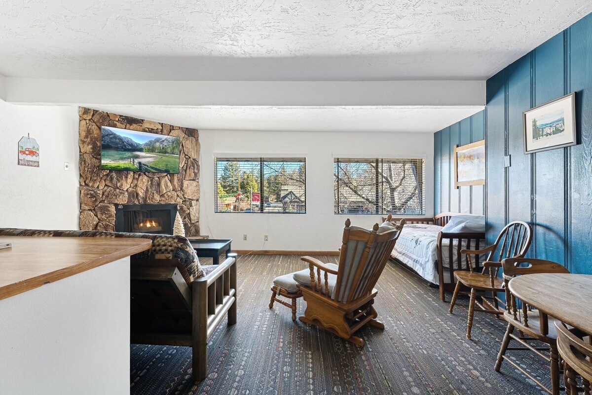 Introducing the unique American Black Bear Suite at Bear Suites - Village Inn, a charming vacation sanctuary right at the center of Big Bear Lake Village. This upper-level suite demands a bit of an adventurous spirit, as you will need to conquer a full flight of stairs to access your cozy retreat. Once inside, you'll find a kitchen complete with all the essentials to assist you in creating your favorite culinary delights. An addition of warmth and ambiance comes in the form of a gas fireplace, providing the perfect setting to unwind after a day of exploration. Strategically located, the lodge gives you easy access to a variety of local attractions. Restaurants, the Village Theater, quaint coffee shops, and unique boutique shops are merely a stone's throw away. For last-minute needs, a convenience store is just steps away, and the beautiful Big Bear Lake is within walking distance, promising a wealth of water-based fun. When it's time to retire for the night, the suite offers a tranquil bedroom equipped with a cozy king bed, and an ensuite bathroom for your convenience. In the living room, you'll find a day bed with a twin trundle for additional sleeping space. While central air conditioning is absent, nature compensates with its own cooling system - the fresh mountain air. Experience the perfect blend of comfort, convenience, and the unique charm of Big Bear Lake Village with a stay at the Bear Suites Village Inn - American Black Bear Suite. Parking On-site parking at the property accommodates one vehicle. According to city ordinance: - Street parking directly in front of the lodge is permitted. - However, during snowy conditions, you cannot park on the street. - It's imperative to avoid leaving vehicles parked, stopped, abandoned, or unattended on any city street. - There is a large Free Parking area located off of Bartlett, between Beaver Lane & Village Drive if you need additional parking. Location Description Bear Suites Village Inn boasts a prime location in the heart of Big Bear Lake's Village. This prime location is mere steps to everything one could want. Distance to key places: - Lake: a couple of hundred feet - Nearest boat ramp: 3.2 miles - Snow Summit: 1.9 miles - Bear Mountain: 3.7 miles - Grocery Stores: 2.3 miles - Closest dining: steps away Immerse yourself in the Big Bear experience. This haven for outdoor enthusiasts offers a myriad of activities that change with the seasons. When winter dusts the landscape with fresh snow, engage in thrilling activities such as skiing, snowboarding, snowshoeing, and tubing. Summer shifts the playground to the lake, where water sports abound, and the trails, are perfect for hiking, mountain biking, and horseback riding. Golf enthusiasts won't be left out, with courses available to test your skills. Big Bear Lake is your year-round ticket to adventure and fun. ** Bear Suites Village Inn Rules ** Welcome to the rules for Bear Suites Village Inn - American Black Bear Suite. Our aim is to maintain a harmonious environment that aligns with local Code Compliance and respects the comfort of all guests. As part of this effort, we've established some friendly but firm and inflexible house guidelines. 1. Maximum Occupancy: 4 guests (4 adults max). 2. Parking: Space for 1 vehicle. Exceeding the limit may result in fines of up to $1,000. 3. Pets: Pets Allowed (Max: 2 pets). - Pets require pre-approval: Post-approval, a $20 fee per pet applies (charged post-booking). - Unapproved Pets: incur a minimum of a $1,000 fine. - Pet Guidelines: ** Kennel pets when unattended. ** Keep off furniture/beds. ** Clean up after them. ** Charges apply for pet damages. *** Coyote Warning: *** Coyotes are extremely prevalent in Big Bear, even in the most densely populated areas. If you see one, you can bet they're part of an unseen pack. These animals are bold and territorial. They pose a significant threat to pets. For their safety, never leave your pets unattended, even in fenced areas, especially after dark. Coyotes are known for their ability to overcome barriers, including high fences. And they're even known for attacking pets that are on a leash. We cannot overstate the need for heightened vigilance concerning your pets' safety. 4. Check-In: ID verification is required for check-in. 5. Noise: Quiet hours from 9 pm to 8 am. You are not allowed to be outside, in a hot tub, play music or create any noise from inside of the residence that could be heard outside of the home. If these rules are violated, Code Enforcement could impose fines of up to $1,000 or eviction. (We have no control over Code Enforcement's decisions.) 6. Air Conditioning: NO Central AC. 7. Ants: Sometimes our ants can be a bit over-friendly. To keep these small visitors at bay, we suggest promptly cleaning up right after each meal and don't leave food out. (We do use ant bait & ant traps… and the ants tend to look at those as snacks.) 8. Trash: You are mandated by ordinance to dispose of your trash at the designated trash site. If you require assistance, we can arrange a pick-up service for a nominal fee. 9. Video Surveillance & Noise Monitors: We employ external video surveillance and noise monitors at most of our properties. (We do not have video or audio monitoring inside of the residences.) 10. No Smoking/Vaping: We have a very strict No Smoking and/ or No Vaping policy on the grounds of all of our properties. * If any guest smokes or vapes on the premises during their stay, a minimum cleaning fee of $750 will be charged automatically to the Credit Card on file to cover the cost of carpets cleaning, dry cleaning of all bedspreads, curtains, etc. And the security deposit will be forfeited. 11. Age: Minimum booking age is 18. 12. Parties: No parties allowed; parties will result in immediate eviction and forfeiture of the security deposit. Additional cleaning fees may apply. 13. Communication: For questions or concerns, we're available via phone or email. * Note: Code Enforcement enforces all