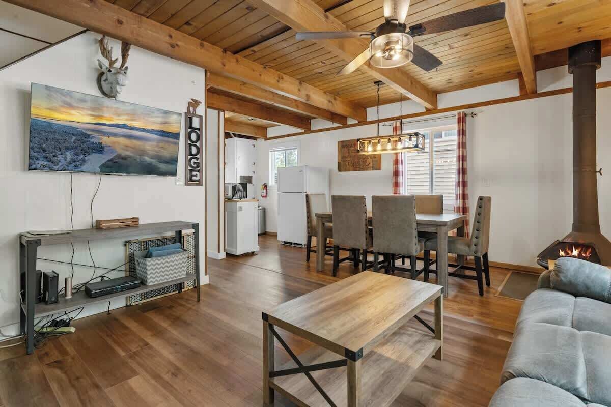 Summary: Welcome to Vista Cottage! A great getaway to relax and unwind! Vista Cottage is located close to the lake, and Alpine Slide -Occupancy 5 -Spa -Air conditioning unit upstairs -Grill -Fenced yard -Propane Fire pit & Grill -Quiet area -Wood burning fireplace -Smart TV in living room. -Full kitchen with oven, fridge and dish rack. For all your cooking needs just bring the groceries! The Space: Welcome to Vista Cottage! Located in a quiet area of Big Bear Lake, within walking distance to the lake, yet still very close to all that Big Bear has to offer. Vista Cottage is 900 sq ft, with 3 bedrooms. All waterproof wood look floors throughout the home. 1 full bathroom, kitchen, large yard, and a deck with views of the sunset. Almost all you need to enjoy your stay is provided, including wifi, and air conditioning unit upstairs. More on the space below! Parking- Tandem 2 car parking on property. All parking is only in driveway, no street parking allowed. Winter months may reduce parking amount due to snow build up. AWD/4x4 is recommended in winter as there is a decline in the driveway. Living area- has a reclining couch, and love seat. 55' TV with Roku access to stream all your favorite apps/shows. With wifi throughout house. Fireplace- We do not provide firewood; however if any is left in the home please feel free to use. Wood can be purchased and delivered to the home. We will need advance notice. If you are not familiar with starting fires, we recommend purchasing Duraflame logs. They last a long time, and are easy to maintain. Kitchen- Is stocked with all dishes, utensils, bake ware, pots and pans. There is full sized fridge, gas stove, microwave, coffee maker, and toaster. A starter pack of paper towels, dish soap, trash bags, sponge, sugar, coffee grounds, and filters are provided. Dining area- Situated right off the kitchen and living room, with seating for 6 people. Plenty of space for games. Bathroom- located on the main level. Full shower/bath. Stocked with Public Goods shampoo, conditioner, body wash, lotion, and hand soap. Bedrooms- all linens are provided. including extra blankets in dressers or closets. Bedroom 1- King sized bed, and closet shelves for storage. Bedroom 2- 2 queen sized beds and small dresser. Bedroom 3- Downstairs- 1 queen sized bed, set of dresser drawers. It is located across hall from bathroom, and near patio door. This room has a space heater. Linens- 2 kitchen towels, 5 bath towels, 5 spa towels, limited hand towel, and wash cloths. Please bring your own towels for the lake. Heating- The home is heated by a wall heater in the living room and a mini split unit in the stair area. There are also space heaters provided Cooling- Like most homes in Big Bear there is no central AC. There is one mini split unit in the upstairs landing. All bedrooms have a ceiling fan. Some games, and extra blankets are provided in the closet between the bedrooms. Yard/Deck- located off the back of the home has great sunset views. seating for 4, propane grill, and propane fire pit. The yard has a 3 ft chainlink fence. Be mindful for the safety of your pets. Grill & Firepit- Propane only. We swap tanks once a week. However if it is empty, please exchange it, and we will reimburse the cost. (Lake View Market is under a mile away) Hot Tub- Large 6 person hot tub. Spa hours are 7A-10P per Big Bear Lake. Violation of these times can result in eviction and fine. If traveling in winter, we highly suggest purchasing trip insurance! We have a strict cancellation policy and will stand by it. Winter months can be challenging with snow, ice, road closures, and other things. Cover yourself by purchasing the trip insurance. We hope you choose Vista Cottage and look forward to hosting you! Guest Access: Everything except downstairs hallway closet is yours to use. The Neighborhood: Popular location distances in miles Lakeview Market .3 (closest small mercantile) Sister My sister bakery .4 Azteca Grill Restaurant .4 Big Bear Marina .9 Boulder Bay 1.6 (lake/park) The Village 1.2 Alpine Slide at Magic Mountain .6 Snow Summit 3 Vons/Stater Bros 3.4 (grocery store Bear Mountain Ski 4.7 Big Bear Snow Play 4.6 Big Bear Zoo-4.9 Convention Center 4.8 Getting Around: Mountain Transit is available .5 miles from the house. Other Things to Note: Please note in winter months: The roads are plowed regularly, but you may need 4x4 vehicle and chains. We are not responsible for any weather related travel issues. There is one camera on property. Views driveway and door Violation of the restrictions will result in eviction without refund. Our strict cancellation policy is still in affect. Any cancellations requesting full refund, will need to provide proper documentation to the hosting site. We will NOT cancel your reservation for you. All requests to change date, must be done a minimum of 14 days before your stay. Prices may change due to change of date. If you instant book, you assume responsibility that all restrictions will be followed. We will not be responsible for any eviction, fine, or inconvenience due to disregarding the restrictions placed for Big Bear Lake and Big Bear City. City of Big Bear Lake Good Neighbor Policy must be respected at all times. Please review the city rules. Do not exceed the occupancy limit (5 including children & infants) Do not exceed the stated occupancy at any time during your stay. The maximum number of adult occupants may be less than the total maximum occupancy. NO PARTIES ALLOWED. No parking in street or yard Parking is only permitted in the driveway, designated parking spaces, and garage. This includes trailers. The maximum number of vehicles permitted is on the exterior sign. (2 vehicles) No amplified music 24/7 Amplified music is not permitted to be heard beyond the property line 24/7. Close your windows to avoid music carrying beyond the property line. Head inside at 10:00 p.m. Noisy outdoor activities and spa use are prohibited from 10:00 p.m. – 7:00 a.m. Take your f