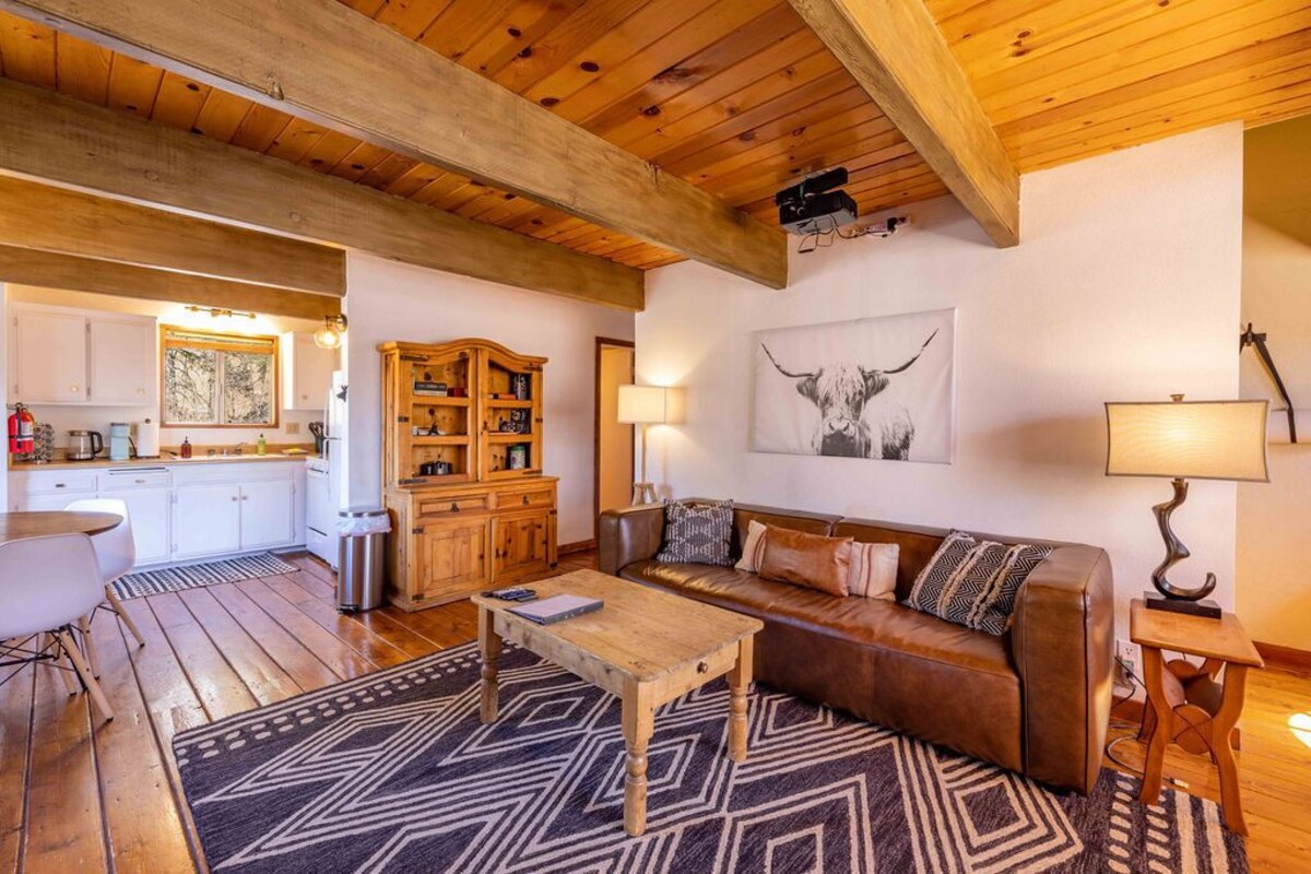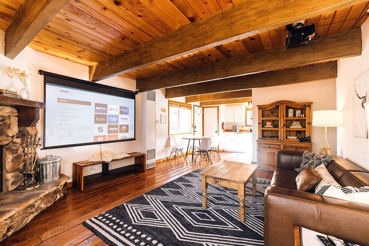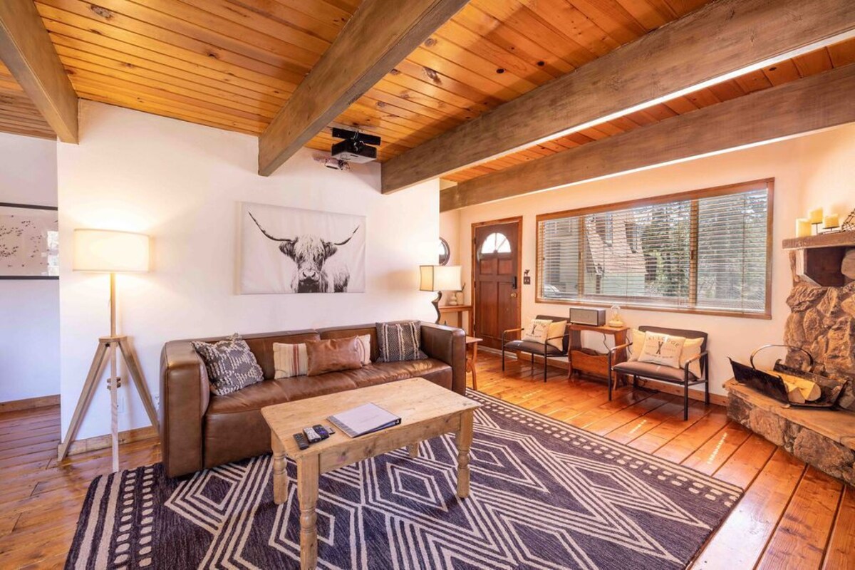 Welcome to Bear On The Moon! Surround yourself with the beauty of the scenic mountain landscape. Located on a quiet street in Lower Moonridge, Bear On The Moon is ideal for ski trips, family getaways, romantic trips, or to relax after a hike in the National Park. Located minutes from Bear Mountain skiing, Snow Summit, Big Bear Lake, hiking, biking and “The Village” shops. Enjoy the large wrap-around deck with peek-a-boo views of the slopes of Bear Mountain. This cabin is perfect for a peaceful getaway in Big Bear. Welcome home. Nestled in the pines and oaks enjoy Peek a boo views of the ski slopes with glorious sunsets from the large wrap around decking. Cabin is appointed with Real Hardwood Floors, Exposed Beam Ceiling, Native Rock Fireplace And Open Floor Plan. Bedroom #1 has a king bed, TV, and full bathroom with shower. Bedroom #2 has a queen bed and a bunkbed with 2 twin beds. Living room area has plenty of room for relaxing, a wood burning fire place, brand new leather sofa and chairs, and a projector set up for movie nights. The driveway holds 2 cars (2 cars max by law). Wood burning fireplace (wood and flame not provided). Keruig coffee maker - variety of coffee pods provided. Things to know: - Sleeps 6 - Wood burning fireplace - Outdoor propane BBQ - Free Fast WiFi -TV +Roku upstairs and Movie projector with Roku downstairs -Single use toiletries provided with each stay Accessibility and Safety: - Cabin has stairs to reach front door and bedrooms are located upstairs - Snow chains required on all vehicles during the snowy season. Please check weather forecast ahead of time and be prepared for the winter conditions. -Snow removal above 4 inches will be provided. Less than 4 inches, there is shovel on the property for guests. Our prices include all fees. No hidden fees.