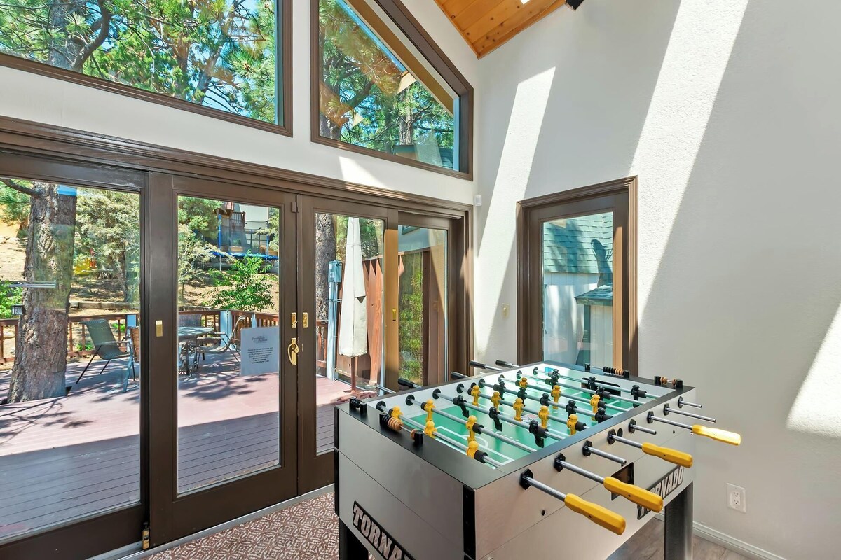 ★★ Yosemite Ridge is a stunning custom-built mountain lodge that blends rustic craftsmanship with modern luxury, creating the perfect getaway for families, friends, and adventure seekers. Located in the sought-after Moonridge neighborhood, this three-bedroom retreat sits just minutes from Bear Mountain Ski Resort, the Big Bear Alpine Zoo, and the Bear Mountain Golf Course. With expansive views of the slopes and forest, an entertainer’s loft, and an oversized yard with room to roam, Yosemite Ridge is your ideal four-season escape. ★★ ★★ HIGHLIGHTS ★★ ✓ Beautifully Crafted 3 Bedroom Lodge in Moonridge – Sleeps up to 11 Guests ✓ Open-Concept Great Room w/ Vaulted Ceilings, Floor-to-Ceiling Rock Fireplace & Large View Windows ✓ Chef’s Kitchen w/ Granite Counters, Stainless Steel Appliances, Center Island & Modern Conveniences ✓ Living Room Loft w/ Foosball Table, Arcade Game, & Game Table (BYO Poker Chips!) ✓ Expansive Deck w/ Outdoor Seating & Stunning Views of the Slopes and Pines ✓ Oversized Yard w/ Horseshoe Pit – Perfect for Outdoor Fun & Stargazing ✓ Smart Flatscreen TV + High-Speed WiFi ✓ Linens & Towels Provided ★★ COZY MOUNTAIN LIVING ★★ Yosemite Ridge welcomes you with a warm and inviting open-concept great room that showcases rich wood finishes, tall ceilings, and dramatic windows framing the spectacular forest and ski slope views. Relax in the comfortable seating area beside the floor-to-ceiling stone fireplace, stream your favorite shows on the smart TV, or simply soak in the peaceful alpine setting. ✓ Great Room w/ Plush Sofas, Rock Fireplace, Smart TV & High Ceilings ✓ Large View Windows Offering Tons of Natural Light & Scenic Backdrop ✓ Open Layout Seamlessly Connects Living, Dining & Kitchen Spaces ★★ GOURMET KITCHEN & DINING ★★ Whether you're cooking up a family breakfast or hosting an après-ski dinner, the kitchen at Yosemite Ridge is as functional as it is stylish. With granite countertops, stainless steel appliances, and a large center island, there’s room for everyone to gather and enjoy. ✓ Fully Equipped Kitchen w/ Stainless Steel Appliances, Gas Range & Dishwasher ✓ Granite Countertops, Rich Wood Cabinetry & Center Island for Prep or Serving ✓ Dining Table + Breakfast Island – Ideal for Shared Meals or Game Night ★★ PEACEFUL BEDROOMS & BATHROOMS ★★ Each bedroom is tastefully decorated with mountain charm and comfortable bedding to ensure a restful night’s sleep. With space for up to 11 guests, it’s perfect for families or groups. ✓ Bedroom 1: King Bed + En-suite Bathroom with Standing Shower, Flatscreen TV, Mirror Closet Doors, Ceiling Fan, Slider Door to Private Deck w/ Views of Forest and Slopes ✓ Bedroom 2: Bunk Room w/ Twin Over Twin + Twin Over Full – Perfect for the Kids! ✓ Bedroom 3: Queen Bed, Flatscreen TV, Mirror Closet Doors ✓ Living Room Loft: Twin w/ Twin Trundle ✓ Bathroom 2 has Standing Shower and Bathroom 3 has a Shower/Tub Combo. ★★ ENTERTAINMENT LIVING ROOM LOFT ★★ Upstairs you’ll find a versatile entertainment loft, perfect for both kids and adults. Challenge your crew to a foosball match, relive retro games on the arcade, or gather around the poker table for game night (BYO chips!). ✓ Twin Bed with Twin Trundle ✓ Foosball Table & Arcade Game ✓ Game Table for Poker or Board Games ✓ Great Bonus Space for Family Fun ★★ OUTDOOR ENJOYMENT ★★ Step outside and enjoy one of Big Bear’s most relaxing and scenic yards. Whether you’re enjoying a morning coffee on the deck or tossing horseshoes in the afternoon sun, Yosemite Ridge is designed for memory-making. ✓ Expansive Deck w/ Outdoor Seating & Spectacular Views ✓ Horseshoe Pit + Huge Yard for Games, Snow Play & Stargazing ✓ Ideal Setting for Entertaining or Just Unwinding in Nature ★★ Yosemite Ridge is the ultimate blend of rugged mountain style and modern comfort. With ski slopes, golf, hiking trails, and wildlife encounters right at your doorstep, this cabin is your perfect year-round retreat in Big Bear. Come relax, explore, and make lasting memories with the ones you love. Book your stay today! ★★ NOTE: HOT TUB has been removed as of 7/1/2025. 2024-2953 Important: Dear Traveler, you will be charged with USD 200 in case you include a Pet in your reservation as a Refundable Damage Deposit for Pets. Our prices include all fees. No hidden fees.