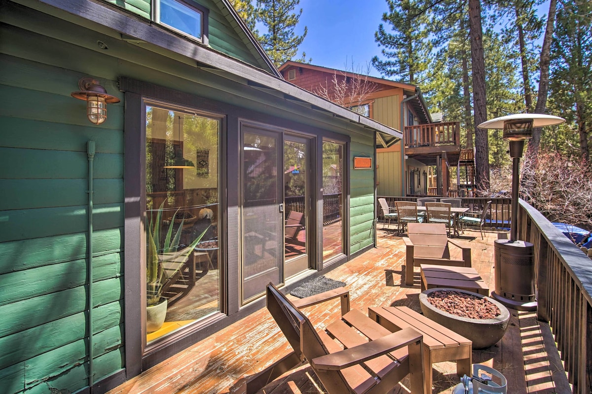 Walk to Zoo & Hiking Trails | Foosball Table | Arcade Game Table | In-Unit Laundry Centrally located near ski resorts, scenic trails, and waterfront activities, this 2-bed, 1-bath cabin offers an all-season California escape! This vacation rental has it all: a hot tub for relaxation, a foosball table for game nights, and an unbeatable location for endless exploration. Tour the streets of Big Bear Lake Village, shred the slopes at Snow Summit, or hike through the surrounding forest. -- THE PROPERTY -- VRR-2023-0497 SLEEPING ARRANGEMENTS - Bedroom 1: 1 queen bed - Bedroom 2 (Loft): 2 full beds OUTDOOR LIVING - Elevated deck, dining space, lounge area - Gas grill, hot tub, gas heater - Gas fire pit, fenced yard KITCHEN - Refrigerator, stove/oven, dishwasher, microwave - Drip coffee maker, blender, toaster, toaster oven, kettle - Cooking basics, dishware/flatware, paper towels/trash bags INDOOR LIVING - Smart TV, fireplace - Dining table, breakfast nook - Rustic decor, board games GENERAL - Free WiFi - Central heating, window A/C units - Laundry detergent - Linens & towels, iron/board - Complimentary toiletries, hangers - Keyless entry FAQ - Pet fee (paid pre-trip) - Quiet hours (10:00 PM-7:00 AM) ACCESSIBILITY - Stairs required to access, 2-story property - Bedroom & bathroom on main floor PARKING - Driveway (2 vehicles; 1 any size, 1 compact) -- THE LOCATION -- - Forested location close to hiking trails, golf courses, & parks - 0.3 miles to Big Bear Alpine Zoo - 1 mile to Bear Mountain: ski resort w/ rentals, lessons, & dining options - 2 miles to Snow Summit: ski resort w/ night riding, terrain parks, & climbing wall - 3 miles to Big Bear Lake Village - 50 miles to SBD International Airport & 67 miles to Ontario International Airport -- REST EASY WITH US -- Evolve makes it easy to find and book properties you'll never want to leave. You can relax knowing that our properties will always be ready for you and that we'll answer the phone 24/7. Even better, if anything is off about your stay, we'll make it right. You can count on our homes and our people to make you feel welcome — because we know what vacation means to you. -- POLICIES -- - No smoking - Pet friendly w/ $80 fee (+ fees & taxes, dogs only) - No events, parties, or large gatherings - Please observe quiet hours from 10:00 PM to 7:00 AM - Additional fees and taxes may apply - Photo ID may be required upon check-in ADDITIONAL INFORMATION - This 2-story property requires exterior stairs to access. Although there is a bedroom on the 1st floor, additional interior stairs are required to access the lofted bedroom on the 2nd floor - The 2nd bedroom is a loft with full walls. The bedroom is accessible via stairs but does not have a door Our prices include all fees. No hidden fees.