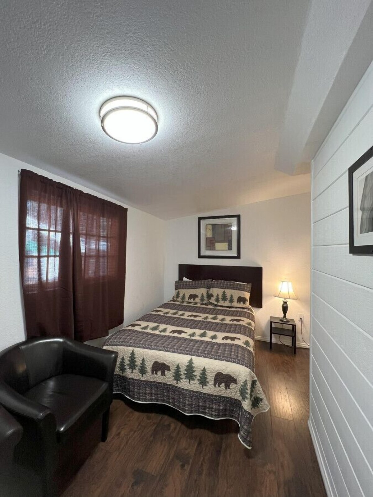 Nestled among tall pines and just steps away from the Famous Alpine Slide, this charming cottage is the perfect blend of rustic charm and modern comfort. Inside, you'll find cozy and inviting living space adorned with traditional wood furnishings and a rustic fireplace perfect for snuggling up with a good book or enjoying a romantic evening. The Location offers a peaceful retreat after a day of exploring the great outdoors. Outside, you can relax in the serene views of the surrounding forest. Walk down to the lake and spend the day fishing, kayaking, or swimming in the crystal-clear water. Or you can walk to the Village in about 10 minutes. In the evenings, gather around the the starry night sky. The location is unbeatable for the Price, with easy access to all the attractions Big Bear has to offer. Take a scenic hike in the mountains, go skiing on the slopes, or visit the charming village and enjoy a variety of restaurants and shops. Our goal is to make sure you have an affordable stay in a great location. If you are looking for a fancy 5 star resort, we can recommend another property of ours.. But If you are looking for an affordable but yet greatly located stay, then this is the right cabin for you. Our cabins are not new and we want to make sure we are transparent before your booking. Come and experience the beauty and tranquility of our log cottage suites. Book your stay now and make unforgettable memories with your loved ones. Our prices include all fees. No hidden fees.