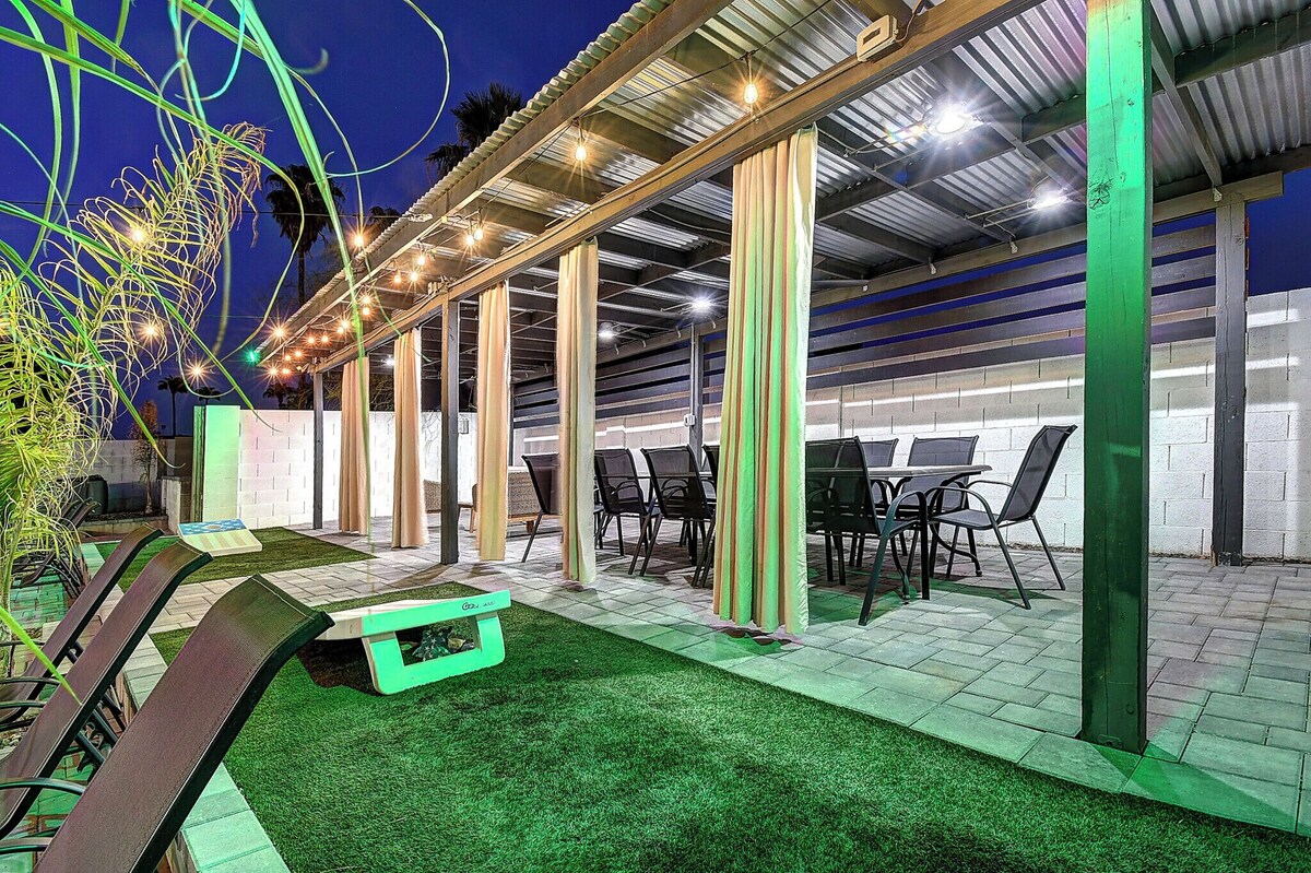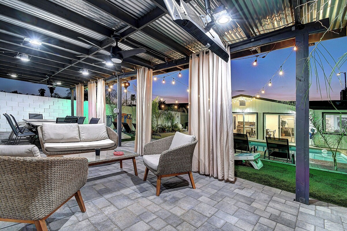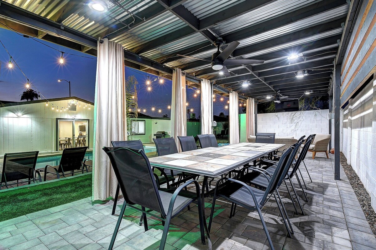 Paradise Park Estate – Private 6–7BR Resort-Style Home in Scottsdale Why settle for a 200’ hotel room when you can enjoy an entire private estate in one of N. Phoenix / Scottsdale’s most central neighborhoods? Perfect for golf getaways, bachelorette trips, staycations, or family gatherings. Highlights: Private Pool (heating available) & Hot Tub Firepit, Bocce, Bean Bag Toss, Grassy Play Area Billiards Room, 9 TVs (including outdoor) Outdoor dining for 12 + BBQ Grill Sleeps up to 24 guests comfortably Prime location near Desert Ridge, Barrett Jackson, Phoenix Open & Old Town The Space This tropical, resort-style home is designed for fun and relaxation. Inside, enjoy a spacious great room, fully stocked kitchen, billiards, and dining for 12. All bedrooms feature quality mattresses and TVs. Outside, the covered patio offers alfresco dining, loungers, and multiple entertainment areas. Sleeping Arrangements Primary: King bed + ensuite w/jetted tub & shower BR2: 2 Twins or 1 King BR3: 2 Twins or 1 King BR4 (Theater): 2 Twins + 2 Doubles BR5: 2 Full Beds (adult bunks) BR6: King bed + full bath BR7 (off BR6): 2 Full Beds (adult bunks) Cots available for rent ($200 each) Location Perks Surrounded by hundreds of restaurants, shopping, golf courses, and just minutes to major events. 15–20 min to Sky Harbor Airport. Why Book With ScottsdaleStays We’re one of Scottsdale’s largest local owners with thousands of 5-star reviews. On-call service staff, pool maintenance, and cleaners available Mon–Sat — no dealing with remote call centers. Important Info Primary guest: Must be 25+ with ID sent within 3 days of booking. Parties: Strictly prohibited by City of Phoenix Ordinance G-5444. No outside guests. Violations result in eviction and loss of deposit. Extra guests: Rates based on 8 guests. $40/night per additional guest (over age 2). Smoking Allowed Only Outdoor In \ Optional Add-Ons Pool heat: $150/night or $600/week + tax Hot tub service: $150 + tax per stay Mid-stay cleaning: Available upon request Early check-in/late checkout: From $200 if available Pets: Approved in advance, $150 per pet (non-refundable) Included Amenities Full kitchen, coffee maker (Keurig + drip), blender, cooking essentials, washer/dryer, linens, toiletries, hair dryer, Wi-Fi, TV, A/C, outdoor seating, and more. IMPORTANT: This property fully complies with the city of Scottsdale rules, regulations, and ordinances regarding short-term vacation rentals. Pursuant to Arizona state law §33-1806.01 / §33-1260.01. * Pool and Spa Indemnification. (REQUIRED) All renters must provide an email address and email us back a signed Pool & Spa Safety Indemnification Notice before occupancy. VERY IMPORTANT: Our home does not have a lifeguard or a pool fence. GUEST SWIM IN POOL AT THEIR OWN RISK WAIVER OF LIABILITY: You understand that you using the swimming pool/hot tub at your own risk and that special risks may be involved in using the swimming pool/hot tub. You accept full responsibility for any bodily injury arising from use of the swimming pool/hot tub and hold owner harmless. You understand there are potential dangers that the swimming pool/hot tub may present to children who are not carefully supervised, as well as the danger to any person using the swimming pool/hot tub, or if a person has health risks, or if a person uses the swimming pool/hot tub while intoxicated or using any kind of drugs or medication, or uses the swimming pool/hot tub if pregnant. You agree to explain the risks of using the swimming pool/hot tub to any guests you may have at the property and to be fully and solely responsible for any accidents your guests may incur. You understand the risks discussed above and agree that you will assume all responsibility for yourself and your guest for the consequences of those risks. You agree to waive any claim whatsoever against owner for accidents or claims arising from your guests’ use of swimming pool/hot tub. Our prices include all fees. No hidden fees.