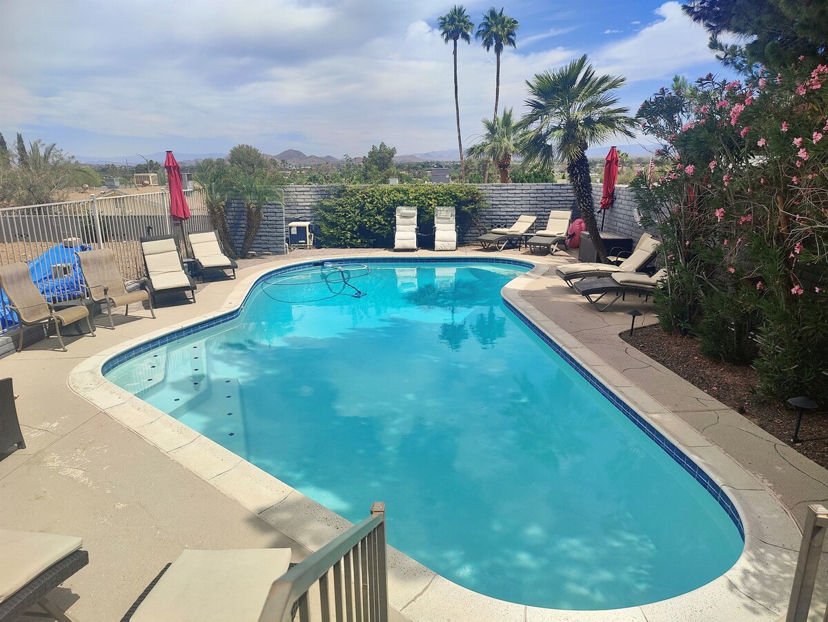 10% DISCOUNT FOR SHORT NOTICE BOOKINGS FOR THIS NEW LISTING (if booking is placed 14 days or less of arrival). Come enjoy the luxurious private pool and hot tub! 3 HOLE PUTTING GREEN under way, to be completed by mid-October! PERFECT PLACE FOR LARGE GROUPS, GOLF TRIPS, COMPANY RETREATS, SPECIAL EVENTS AND OCCASIONS, BUSINESS GETAWAYS, AND MASTERMIND RETREATS. Walk to Hiking trails! GOLF, SPRING TRAINING GAMES, HIKING, SHOPPING, DINING! Beautiful spacious backyard with pool, hot tub, fire pit, yard games, scenic valley views, resting on the foothills of Shadow Mountain, and just steps away from excellent hiking trails. The Oasis Overlook is just a short drive to multiple golf courses. Create an amazing experience for groups looking for peaceful natural surroundings and fun times with family and friends. Nearby you will find wonderful shopping, restaurants, and the best entertainment in Arizona. Our vision for this home was that it would be a great place for families and large groups of people to come to relax, have fun, connect with each other, and have an unforgettable experience. Indoor space: The expansive kitchen has been recently remodeled with all high-end finishes, including beautiful granite countertops, a large bar area, double ovens, and a large side-by-side refrigerator. This area is very spacious and has the open concept with skylights, and a picture window over the sink. All of the 8 bedrooms have customizable bed set ups, and can be configured as 2 XL Twin beds, or 1 King bed with luxury linens. Bedroom 3 also has a futon bed. The bathrooms have all been beautifully remodeled. The perfect place to enjoy beautiful Arizona weather! The hot tub area overlooks the large pool, valley views, and majestic mountains. The fire pit provides a bit of heat and comfort on the cooler evenings, as you enjoy the sunsets and starry nights. Outside you will find: Large sparkling pool (which can be heated for a small fee) Above ground hot tub Fire pit BBQ Corn hole Pool table Inside the house you will find: Flat screen Smart TV’s in multiple rooms Large open spaces to congregate Board games With 8 bedrooms, 17 beds, and 6.5 bathrooms, there is enough space to accommodate 17 people and more. HOUSE RULES * No parties - i.e. Bachelor/Bachelorette Parties due to noise, parking, and and property damage issues. * Street address and email address are required to receive all arrival instructions. * All renters must submit ID & credit card verification to secure online portal. Minimum age to rent is 25. *Pool Heating: For all short-term stays, the energy fee to heat the pool is calculated based on the number of days of your stay. The cost to heat the pool is $60 per day. * Arrival and Departure: Arrival instructions will be sent via text and email a few days prior to your arrival. * All requests for early arrival and late departure must be requested in advance and may not be possible based on cleaning and maintenance schedules. If authorized, all early arrivals and late departures will be subject to an additional fee of $25 per hour. * It is important that trash and recycle containers must be wheeled to the street for pickup the night before the scheduled day. * Upon departure, please refer to the checkout list posted in the house manual. * No smoking allowed inside the property at any time, including cigarettes, cigars, marijuana, vaping, etc. If anyone in your group violates the no smoking policy, the host reserves the right to charge your account for $500 minimum to engage smoke remediation process. * Base rate is set for up to 9 people, 5 years of age and older. Occupancy levels above 9 people will incur an additional charge of $35 per person, per night. * Renters are provided one propane tank per day at no charge. There is a $35 charge for extra tanks above the one per day. * Quiet hours after 9:30 are enforced to ensure that neighbors are able to enjoy their homes without disturbances. * Home comes stocked with toiletries, including hand soap, shampoo, conditioner, laundry detergent, fabric softener, dish soap, and dishwasher detergent. Toilet paper, paper towels, napkins, coffee filters, trash bags, and a general assortment of kitchen spices are also provided. * Cancellation & Refund policy: No Exceptions will be made to the published cancellation policy. If cancellations occur 30 days or more prior to arrival date, 100% refund, if 15 to 29 days prior, 50% refund. If cancellation occurs less than 14 days prior to arrival date, no refund will be issued. PARKING: Driveway space can hold 2-3 cars. Overnight parking on-street is allowed. Our prices include all fees. No hidden fees.