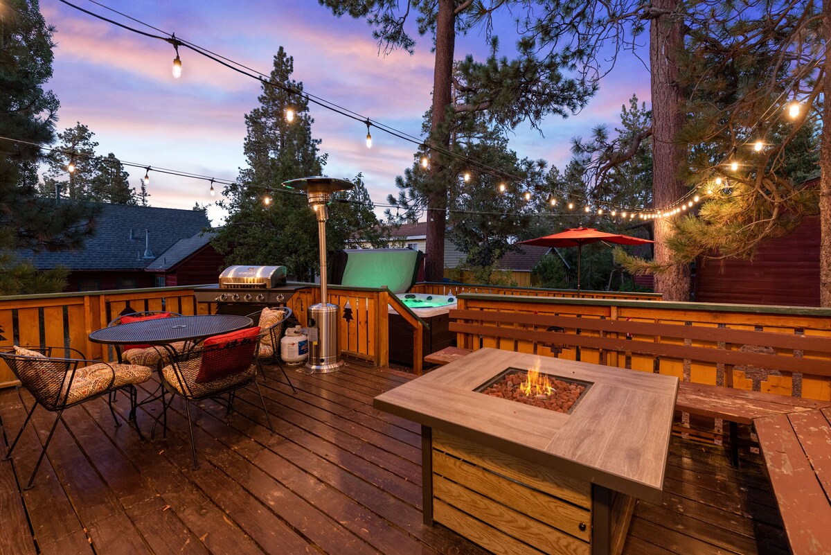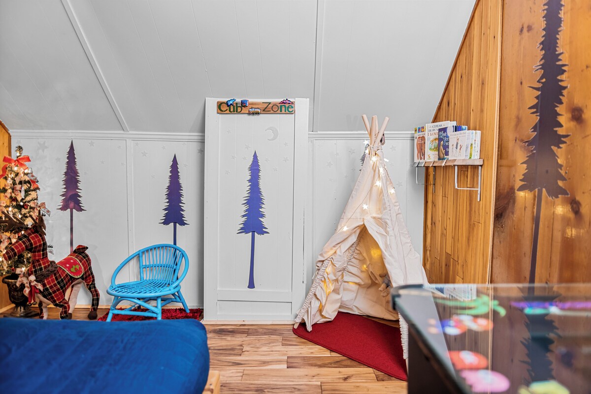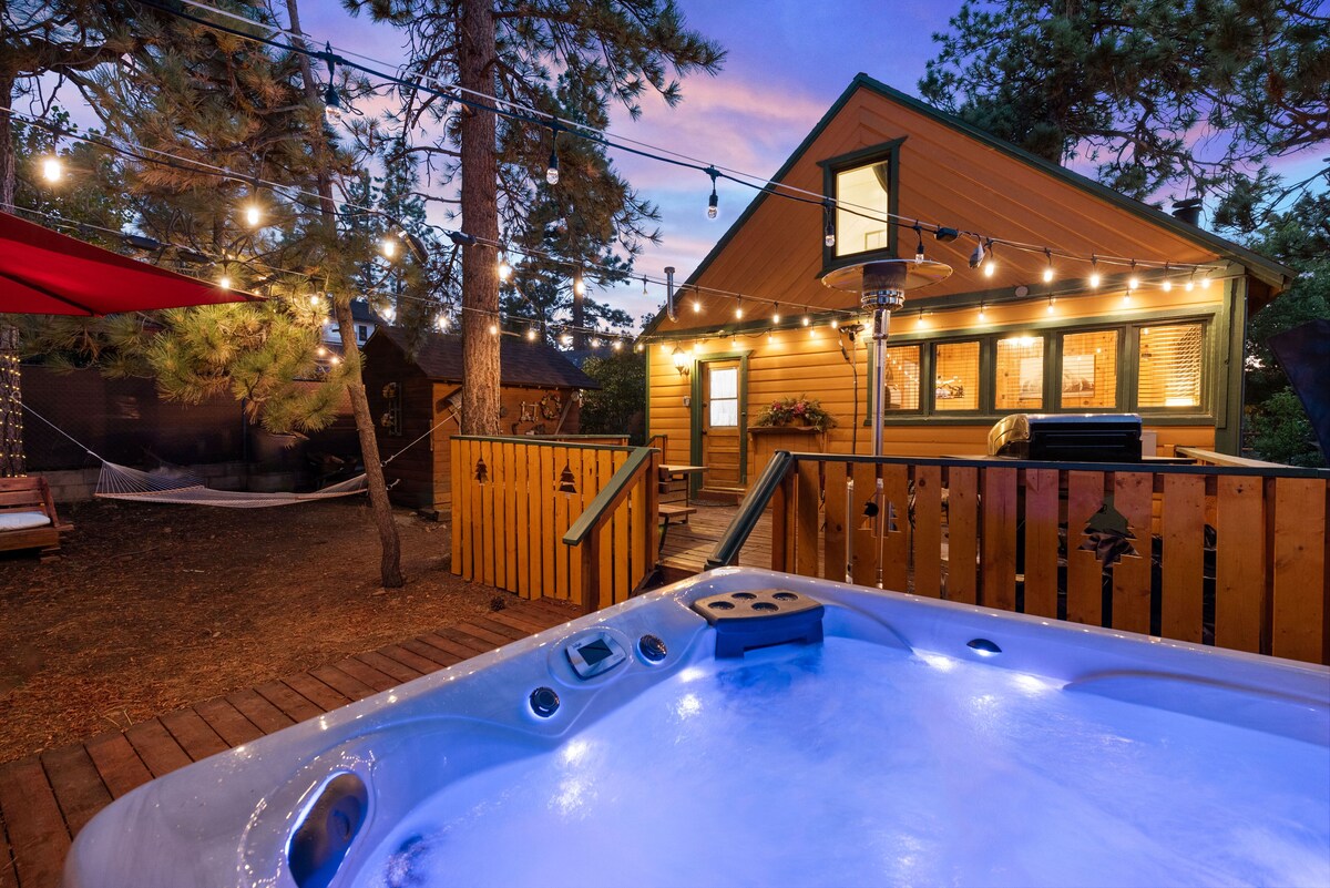 𝗖𝗶𝗻𝗻𝗮𝗺𝗼𝗻 𝗕𝗲𝗮𝗿 is a storybook like cabin providing a peaceful and relaxing stay; walk to Big Bear Lake or take a short drive to Big Bear Lake Village. Reconnect with nature in a beautiful mountain setting on our back deck with a hot tub, gas fire pit, propane BBQ, a relaxing hammock and plenty of backyard space. Indoors you will find a wood burning fireplace, a fully equipped kitchen, coffee/tea, board games, a Smart TV, hi-speed wifi internet, portable fans, heating in all rooms and a home air purifier. Big Bear Valley offers something for everyone throughout all of the seasons. Minutes from world class skiing and snowboarding, beautiful Big Bear Lake and The Village. Where you’ll find dining, nightlife, entertainment and our local shops. 𝗟𝗜𝗩𝗜𝗡𝗚 𝗔𝗥𝗘𝗔 Relax and warm up beside a wood burning fireplace, reconnect with nature in a beautiful mountain setting from our backyard deck. Chill on one of the comfortable living room chairs, take a nap on the cozy couch, grab a soft throw blanket and watch a movie on the Smart TV (Chromecast or AirPlay from your accounts on Netflix, Disney+, Hulu, Amazon Prime, YouTube and much more). The television console is equipped with a Blu-ray player, lots of movies and board games plus the cutest Owl smart speaker with Alexa. You can ask Alexa to play music, read a bedtime story and more! 𝗞𝗜𝗧𝗖𝗛𝗘𝗡 & 𝗗𝗜𝗡𝗜𝗡𝗚 A fully equipped beautifully designed kitchen with wood countertops providing all the amenities of home! Stainless steel appliances, enamel coated pots, utensils, toaster, microwave, blender, baking supplies, a tea kettle and a rice cooker. Our expansive coffee bar includes a standard drip coffee maker, pod coffee maker, and an assortment of teas. The cabinets are stocked with plates, bowls, glasses, coffee cups, and wine glasses. 𝗕𝗘𝗗𝗥𝗢𝗢𝗠𝗦 The \ bedroom is located downstairs on the main living area and has a queen sized bed. Upstairs you will find the elegant \ bedroom with a CalKing sized bed and the \ bedroom with a full size bed. All bedrooms have full length mirrors or a vanity mirror, extra blankets, lots of pillows and heating. Note: Upstairs head clearance is 7ft high in the middle and slopes down on the sides. Keep that in mind when booking. 𝗟𝗢𝗙𝗧 𝗔𝗥𝗘𝗔 / 𝗕𝗢𝗡𝗨𝗦 𝗦𝗣𝗔𝗖𝗘 A perfect little loft space, the \ , best suited for a child or the young at heart. This bonus space features a retro style head to head arcade table with 500+ games, a cozy reading corner, glow in the dark stars, a play tent, and a comfortable small single bed. Note: Loft area head clearance is 7ft high in the middle and slopes down on the sides. Keep that in mind when booking. 𝗕𝗔𝗧𝗛𝗥𝗢𝗢𝗠 A spa like bathroom with vintage cabin charm! Walk into a luxurious shower with a flat river rock flooring, dual overhead rain shower system and an additional handheld showerhead. Luxury hygrocotton bathroom towels, Q-tips, cotton rounds, plenty of shampoo, conditioner, body wash and black makeup towels. 𝗠𝗢𝗥𝗘 𝗗𝗘𝗧𝗔𝗜𝗟𝗦 • In addition to our gas fire pit, our back deck is also equipped with an outdoor stainless steel patio heater to keep you toasty warm on chilly nights. 𝗙𝗼𝗹𝗹𝗼𝘄 𝘂𝘀 𝗼𝗻 𝗜𝗚 𝗼𝗿 𝗙𝗕 @𝘂𝗻𝗱𝗲𝗿𝗻𝗲𝗮𝘁𝗵𝘁𝗵𝗲𝘀𝘁𝗮𝗿𝘀𝗿𝗲 𝗗𝗜𝗦𝗖𝗟𝗔𝗜𝗠𝗘𝗥 𝗙𝗢𝗥 𝗙𝗔𝗠𝗜𝗟𝗜𝗘𝗦 𝗪𝗜𝗧𝗛 𝗜𝗡𝗙𝗔𝗡𝗧𝗦 (𝗨𝗡𝗗𝗘𝗥 𝟮 𝗬𝗘𝗔𝗥𝗦) 𝗔𝗡𝗗 𝗬𝗢𝗨𝗡𝗚 𝗖𝗛𝗜𝗟𝗗𝗥𝗘𝗡: This property is not child proof. Please do not leave your child unattended. 𝗚𝗨𝗘𝗦𝗧 𝗔𝗚𝗥𝗘𝗘𝗠𝗘𝗡𝗧 & 𝗗𝗘𝗣𝗢𝗦𝗜𝗧 A confirmation to your acknowledgement of the rules via an e-signed guest agreement, a copy of a government-issued photo ID and a security deposit pre-authorization are required within 24 hours. 𝗚𝗨𝗘𝗦𝗧𝗦 𝗧𝗥𝗔𝗩𝗘𝗟𝗜𝗡𝗚 𝗪/𝗗𝗢𝗚𝗦 House-trained and friendly dogs 1 yr+ are welcomed. Up to 2 dogs allowed, additional dogs may be allowed w/ an added pet fee. 𝗣𝗟𝗘𝗔𝗦𝗘 𝗿𝗲𝗮𝗱 𝗮𝗹𝗹 𝗵𝗼𝘂𝘀𝗲 𝗿𝘂𝗹𝗲𝘀 𝗳𝗼𝗿 𝗺𝗼𝗿𝗲 𝗶𝗻𝗳𝗼. 𝗧𝗵𝗮𝗻𝗸 𝘆𝗼𝘂! Permit #2022-2847 Guest access Guests will have access to the entire vacation home with the exception of a downstairs locked owner's closet. 𝗣𝗔𝗥𝗞𝗜𝗡𝗚 Please plan accordingly, 1 car is permitted to be parked in the driveway; there is no street parking. The driveway is a gravel driveway. 𝗢𝗨𝗧𝗗𝗢𝗢𝗥 𝗖𝗔𝗠𝗘𝗥𝗔𝗦 Please note...there are cameras located at the driveway and entrances of the property. These are solely on the exterior of the property. Footage remains private and may be used for liability reasons and to monitor occupancy and other property policies. It in no way infringes upon the expectation of privacy in these public areas. To disable or obscure the cameras is prohibited and may result in the immediate removal of guest(s) and forfeiture of all amounts paid. 𝗦𝗡𝗢𝗪 𝗥𝗘𝗠𝗢𝗩𝗔𝗟 Snow removal services are supposed to arrive within 24 hours of any snowfall more than 4+ inches, to clear the driveway and a pathway to the main entrance. Snow removal companies cannot guarantee a specific time the property will be serviced. Therefore, guests may have to shovel a spot to park if they arrive before the snow removal company or if it snows during their stay. There have been times in larger storms (2ft+ of snowfall) when snow removal can take longer. It doesn’t happen often, and our other guests have always been able to make it work. Just know that in those cases we are doing everything we can to g