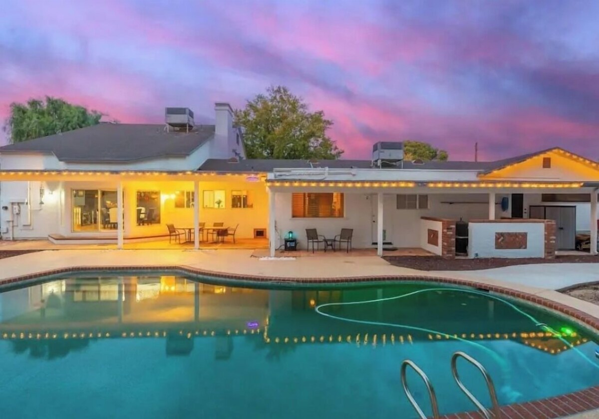 Experience Phoenix like a local in this marvelous 5-bedroom farmhouse. With 3 king beds, 1 queen bed, and 2 twin beds. This superb property is perfect for a large group. The farmhouse offers amenities such as an iron, AC, WiFi, hair dryer, washing machine, and heating. You'll also find 4 bathrooms with amenities like a bathtub, shower, and hair dryer. Fall in love with Phoenix and enjoy the magic it has to offer. Able to sleep 18 guests if needed :) Wedding Breakdown: May-August dates: 3 night stay with a wedding on property is $2,500 September-January dates: 3 night stay with a wedding on property is $2,750 February-April dates: 3 night stay with a wedding on property is $2950 I have a 56 Buick Convertible that can be used for wedding pics if I get a specific date and time with the photographer We have a good amount of extra weddings supplies that are available for use :) 55 person Max unless otherwise worked out with me. Outdoor noise is shut down at 9:30 pm. 10 pm is city noise ordinance and must be respected. Contact me to talk more :) Chris 6o2 3 seven 3 2 zero 1 3 Our prices include all fees. No hidden fees.