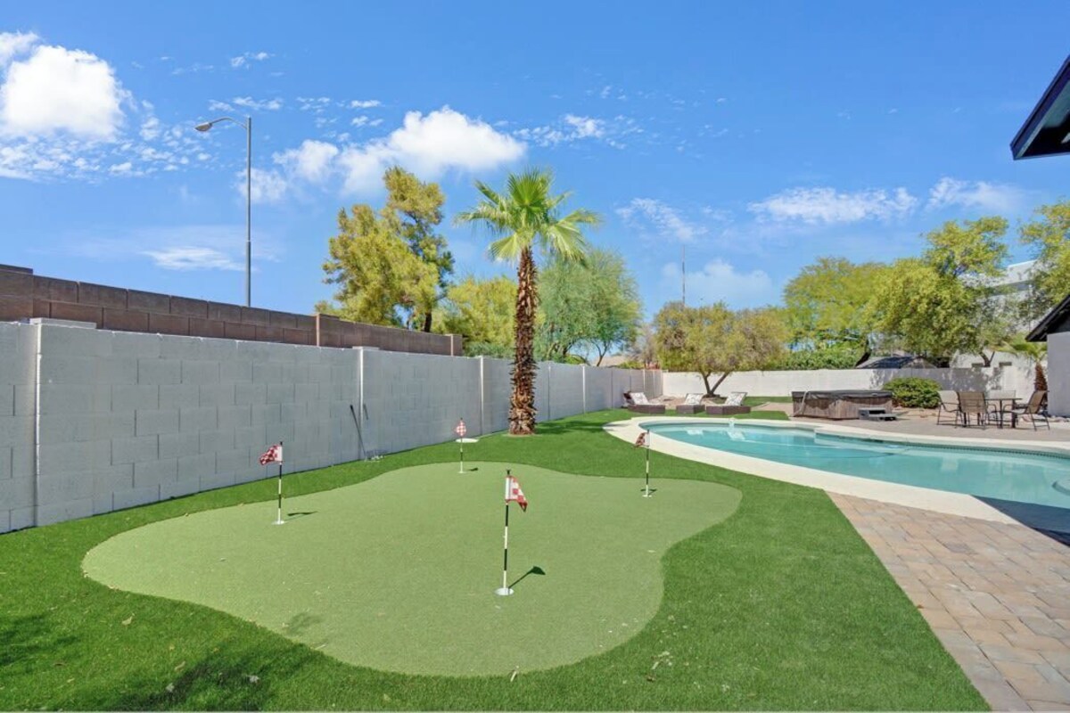 Summary: Additional Master Suites with its own full bath and walk in closets recently added to the home in our renovation project! This home now offers TWO Master suites! Lush green lawns for a true Private Oasis backyard retreat. We are very excited for the larger space and look forward to being able to accommodate more families and groups! Thank you for booking with us. Experience the luxury of desert living at this Five-bedroom Scottsdale home in a private cul-de-sac Hot Tub Fee $25/Per Day (optional) Upon Request* Pool Heating $100 per day (optional) upon request *Pet-friendly* retreat - $85 pet fee /per pet /per stay (one time fee) * This luxury Scottsdale home has an open floor plan with two maters suites and is ideal for enjoyable vacation stay. *Large backyard features covered patio, paver patio extension, charcoal BBQ, patio table and chairs, artificial grass putting green, amazing pool, lounge chairs, ideal for outdoor dining. *Home is perfect for families (with kids) and multiple couples *Smart TVs in living room and both Master suites. Bring your Netflix, Hulu etc account and never miss your favorite episode. KITCHEN ACCESSORIES: Dish ware/flatware, cookware, glasses, shot glasses, coffee mugs, Keurig Coffee/Tea Maker, skillets, salt/pepper/spices, blender, toaster, refrigerator equipped with ice maker/water dispenser, other appliances, etc. LAUNDRY ROOM: Featuring front load washer and dryer and ironing board with iron. ACCESSORIES: We have luxurious bedding throughout the house, extra pillows, WI-FI, hairdryers in bathrooms and electronic key pad code door lock so everybody can come and go as needed without a key. There is security camera over looking front door & Driveway for your safety. *Guests have access the entire house. There is 2 car garage parking, parking in the drive way and along the street. *Home is professionally cleaned before every stay, comes with clean linens, towels, soaps and everything else you will need for a comfortable stay. *This gorgeous home is within miles to: Casinos Golf Courses Mountain hiking Old town Scottsdale Kierland, shopping and dining Scottsdale Quarter, shopping and dining Desert Ridge, shopping and dining Fashion Square mall Grocery Stores, Westworld (Features many annual major events) The Neighborhood: *This gorgeous home is within miles to: Casinos ,Golf Courses,Mountain hiking,Old town Scottsdale, Kierland and Scottsdale Quarter shopping. shopping and dining in Deseret Ridge, shopping and dining at Fashion Square mall, Grocery Stores, Westworld Other Things to Note: ★Pet Friendly with $85.00 pet fee/ per pet/ per stay ★No smoking ★Check-in is anytime after 4PM ★Check out by 11AM ★Self check-in with door code ★Quiet hour starts at 10 pm (strict) ★ Hot Tub Fee $25.00 per Day (optional) ★ Pool heating available $85.00 a night (optional) (Charged for the full amount of nights as your reservation) 24 hours advice notice required ★Surveillance or recording devises on property, Security camera on front of home facing entrance and street only Our prices include all fees. No hidden fees.