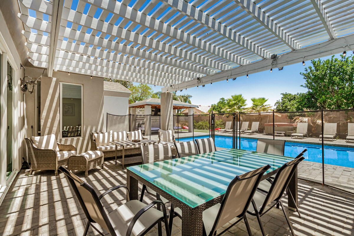 ScottsdaleStays - The Ultimate 10BDRM/6BATH Estate Luxury Retreat with Huge Pool, Spa, and Sports Courts Prime Scottsdale Location | Perfect for Large Groups, Family Gatherings, & Corporate Retreats Why You’ll Love This Estate: Escape to The Ultimate Estate—a near new 10-bedroom, 6-bathroom luxury retreat nestled in the heart of Scottsdale, Arizona. With room for up to 40 guests, this sprawling estate is ideal for golf trips, family reunions, or corporate retreats. Just minutes from world-class golf courses, fine dining, shopping, and iconic events like the Phoenix Open and Barrett-Jackson, this stunning property combines luxury with convenience. Resort-Style Outdoor Amenities: Massive Heated Pool with 30' Sitting Bench-Vegas-style Cabana and 65” Outdoor TV (Optional: $150/day or $600/week) Hot Tub (Optional: $150 per stay, includes service) Sport Courts: Private Pickleball, Basketball, Bocce and Sand Volleyball (Shared) Games: Cornhole, Ping Pong, Giant Connect 4 Grassy Play Area for kids and relaxing outdoor activities BBQ Grill (Guests refill propane & clean after use) Outdoor Fireplace (BYO Firewood) Spacious Sleeping Arrangements: Each room is furnished with super-comfy beds and flat-screen TVs. Perfect for large groups, this estate ensures everyone has their own private space. West Wing: Primary Suite: King bed + private luxury bathroom Bedroom 2: 2 Double beds + TV + bathroom Bedroom 3: 2 Double beds + TV + bathroom Bedroom 4: 4 Double beds (2 adult bunk beds) + TV Powder Room Bathroom East Wing: Bedroom 5: Primary Suite: King bed + private luxury bathroom Bedroom 6: 2 Double beds + TV + bathroom Bedroom 7: 2 Double beds + TV + bathroom Bedroom 8: King bed + TV Main Bathroom Bedroom 9: Den off great room with 2 Twin beds + TV Bedroom 10: Optional Garage Conversion with own AC: 4 Double beds (2 adult bunk beds) Living room setup with TV, Ping Pong & Poker Table, 2nd fridge for large groups Indoor Amenities: 12 Smart TVs with popular streaming services Billiards Table for entertainment Fast Wi-Fi throughout Multiple Spacious Living Areas for relaxation and socializing Included Essentials: Washer/Dryer, towels, linens, extra pillows Fully-stocked kitchen: cookware, plates, utensils, blender, toaster, coffee makers Shampoo, conditioner, body wash Hair dryer, iron/ironing board Optional Add-On Services (Available Upon Request): Daily or Mid-Stay Cleaning Deep Cleaning: $200 8AM Early Check-In / 8PM Late Check-Out: From $400 Pet-Friendly: $150 per pet (prior approval required) Booking Details: Primary renter must be 30+ with valid ID (submit within 3 days of booking) Base price includes 8 guests; Additional guests are $40 per person per night (age 2+). (Example: For 36 guests = $1120 extra per night) Check-in: 4 PM | Check-out: 10 AM (Early/Late check-in available for a fee) Pets allowed with prior approval and $150 fee per pet House Rules: No parties, events, or unauthorized guests City Ordinance G-5444 strictly enforced Disturbances resulting in police involvement = immediate eviction and loss of security deposit Waiver + ID required post-booking Guest Testimonials: \ – Tom \ – Muhammad \ – Dana Host's Note: We welcome respectful travelers seeking a luxurious escape in Scottsdale. This property is perfect for large groups, but please note it is not intended for parties. Book with us and enjoy the best of Scottsdale in style and comfort. GUEST SWIM IN POOL AT THEIR OWN RISK WAIVER OF LIABILITY: You understand that you using the swimming pool/hot tub at your own risk and that special risks may be involved in using the swimming pool/hot tub. You accept full responsibility for any bodily injury arising from use of the swimming pool/hot tub and hold owner harmless. You understand there are potential dangers that the swimming pool/hot tub may present to children who are not carefully supervised, as well as the danger to any person using the swimming pool/hot tub, or if a person has health risks, or if a person uses the swimming pool/hot tub while intoxicated or using any kind of drugs or medication, or uses the swimming pool/hot tub if pregnant. You agree to explain the risks of using the swimming pool/hot tub to any guests you may have at the property and to be fully and solely responsible for any accidents your guests may incur. You understand the risks discussed above and agree that you will assume all responsibility for yourself and your guest for the consequences of those risks. You agree to waive any claim whatsoever against owner for accidents or claims arising from your guests’ use of swimming pool/hot tub. Our prices include all fees. No hidden fees.