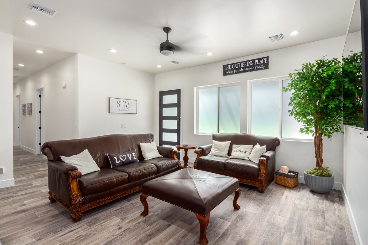 AMAZING LOCATION - ARCADIA/SCOTTSDALE - 2022 NEW BUILD -Open Floor Plan over 3200sf- heated pool, 2 car garage, minutes from Sky Harbor, downtown PHX, Old Town Scottsdale and Biltmore. Great backyard with huge built-in bbq an fireplace with views of Camelback Mountain. Chefs kitchen with top of the line appliances - two huge islands with 12 bar stools and formal dinning table! Beautiful 5 bedrooms/ en-suite bathrooms. Bedroom 3-4 share a jack an Jill bathroom. GREAT Neighborhood - Walk to lots of neighborhood restaurants, bars, bike trails to Scottsdale. Top Golfing within minutes in all directions. Also check out our other listings -about 1 mile North with 4 bd/4.5bath - Reserve both houses for extended guest - both homes can accommodate large family gatherings!!!! Bachelorette Parties, Family Reunions, Men's Golf Trips! Both homes have everything needed for your stay! Home away from HOME!!!! For more information text 602-330-8539 The City of Phoenix short-term permit # is STR-2024-002372 “This property cannot be used for purposes identified in the City of Phoenix Ordinance Section 10-195(c). A copy of the Ordinance is located in home information binder. NO PARTIES ARE ALLOWED PER CITY OF PHOENIX Ordinance Section 10-195(c). DO NOT TOUCH POOL EQUIPMENT ON AUTOMATION!!! Our prices include all fees. No hidden fees.