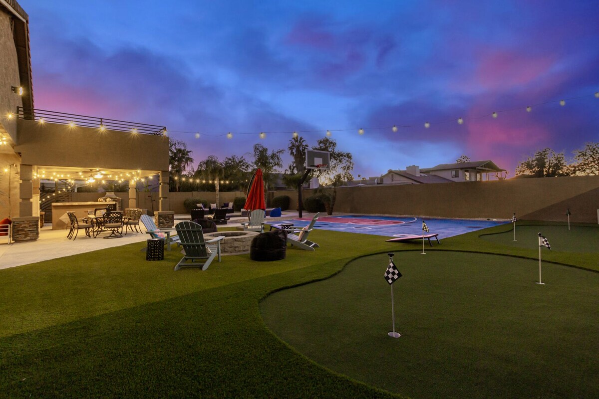 Welcome to The Senita at South Mountain, a centrally located resort style home near the base of South Mountain, with easy access to Arizona's best sporting events & venues (including all the city’s professional teams), hiking trails, golf courses, dining, shopping, and more! Chef's kitchen with 6 burner, gas stove with griddle and double oven! BBQ and bar in the back plus heated pool, a basketball court and putting green. This is an unforgettable destination to share with family and friends, as you relax in the southwest sun! The Senita is not just a home, but a lifestyle – and will guarantee memories long after you return home. Our prices include all fees. No hidden fees.
