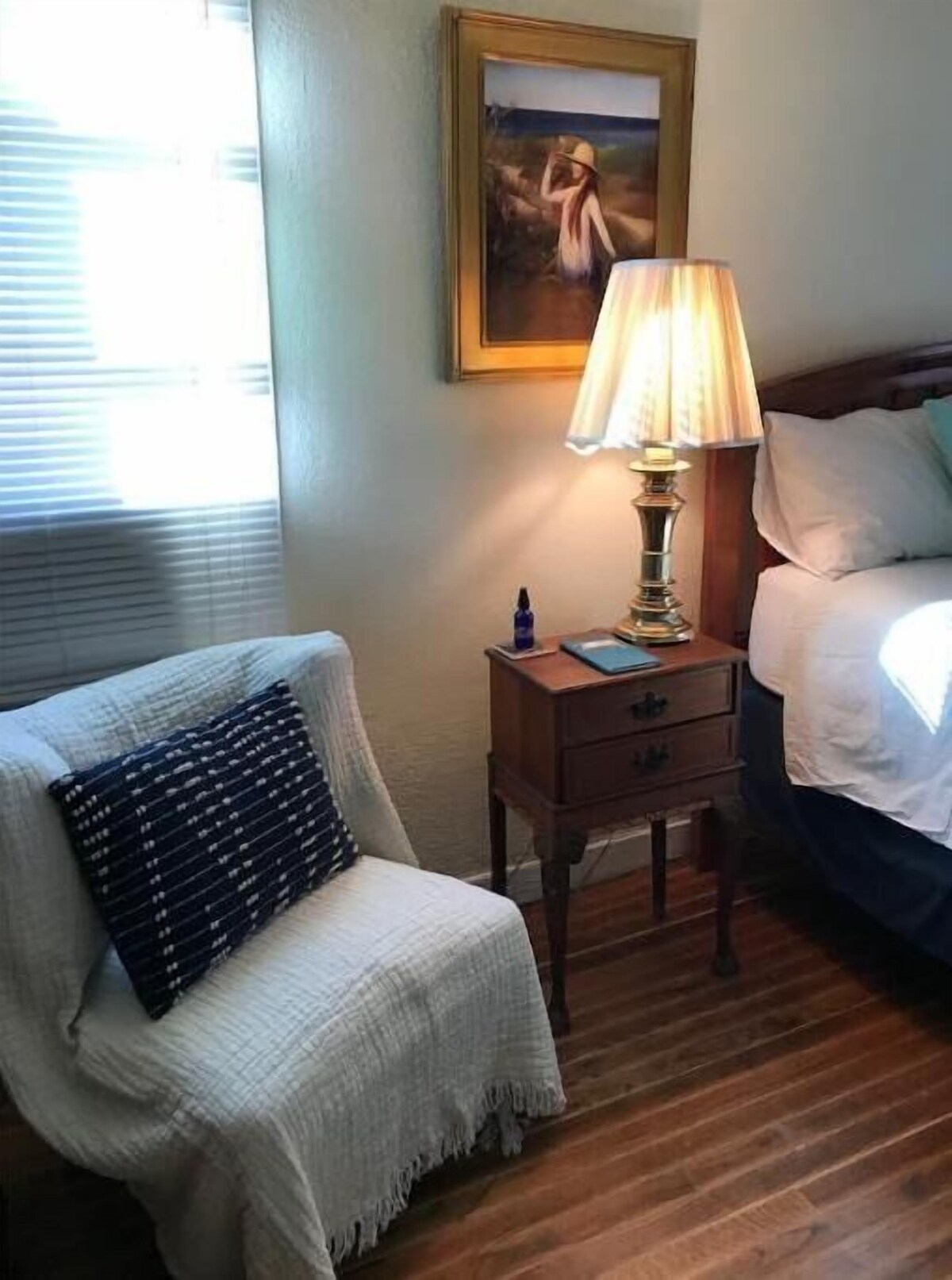 About this space This is a comfortable, private inlaw apartment that is perfect for a stay in Albuquerque. Private garden entrance with smartlock. Living area has kitchenette with basic amenities: dish-ware, bar sink, microwave, mini-fridge but not a full kitchen. Bedroom has queen bed, chair, antique armoire. WIFI, AC, Street parking, outdoor seating & private bath with good quality toiletries. Centrally located, near grocery, laundry, restaurants. Near I25, I40, Los Ranchos & Downtown. The space Quiet charming Pueblo style home. Decorating is simple, clean, “New Mexico Casita” style making this a real BnB style experience at a great value. This is like a small inlaw appartment & is attached to a main house. Entrance is through a gated 6’ tall fenced in backyard with side door garden entrance. The outdoor gate can be locked by guests from the inside, and we have just installed August smart locks on the apartment entry door, so this is super secure even with a full lite glass door as entry. Please look at the pictures of the set up to make sure you will be comfortable staying here. The space is like a small one bedroom apartment but does not have a full kitchen. It does have a small living area w/ hutch \ includes: bar sink, mini fridge, microwave, plates, glassware, mugs, and basics for eating. Ask about a hot plate if you need one. The house is old without soundproofing so if you need a perfectly isolated stay this place is not recommended for such use but we do provide a white noise maker to help with the ambiance. Television must be requested in advance of your stay since we don’t keep one in there. Hours of use for TV are between 8:00am and 10:00pm. Additionally, while the living room and bathroom have standard height ceilings, the bedroom currently has ceilings that are only 7’4” high. If you are tall and need higher ceilings please contact the host about possibility to book our other listing. Cleaning fee insures that your stay is as fresh & clean for you as it will be for the next person. This a great value if you need to be near Midtown, Downtown, or the Universities. 6 miles to Balloon Fiesta Park, 9 miles to Sunport Airport. The beautiful grounds of the Casa Rondena Winery are only a short drive away. Private, clean, accessible and close to everything. Our prices include all fees. No hidden fees.