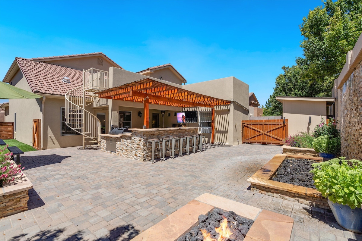 Welcome to your perfect getaway! This spacious 5-bedroom, 3.5-bathroom home in a gated community combines modern decor with comfort and style. Ideal for large families and groups, it features a fantastic outdoor space for entertaining and relaxation. Pet-friendly and thoughtfully designed, this property ensures everyone—two-legged and four-legged—feels right at home. Enjoy your stay in this inviting retreat! *Please note that bedrooms 4 and 5 are open and connected to each other. *One King Bedroom with Ensuite is downstairs. The rest are upstairs. Our prices include all fees. No hidden fees.