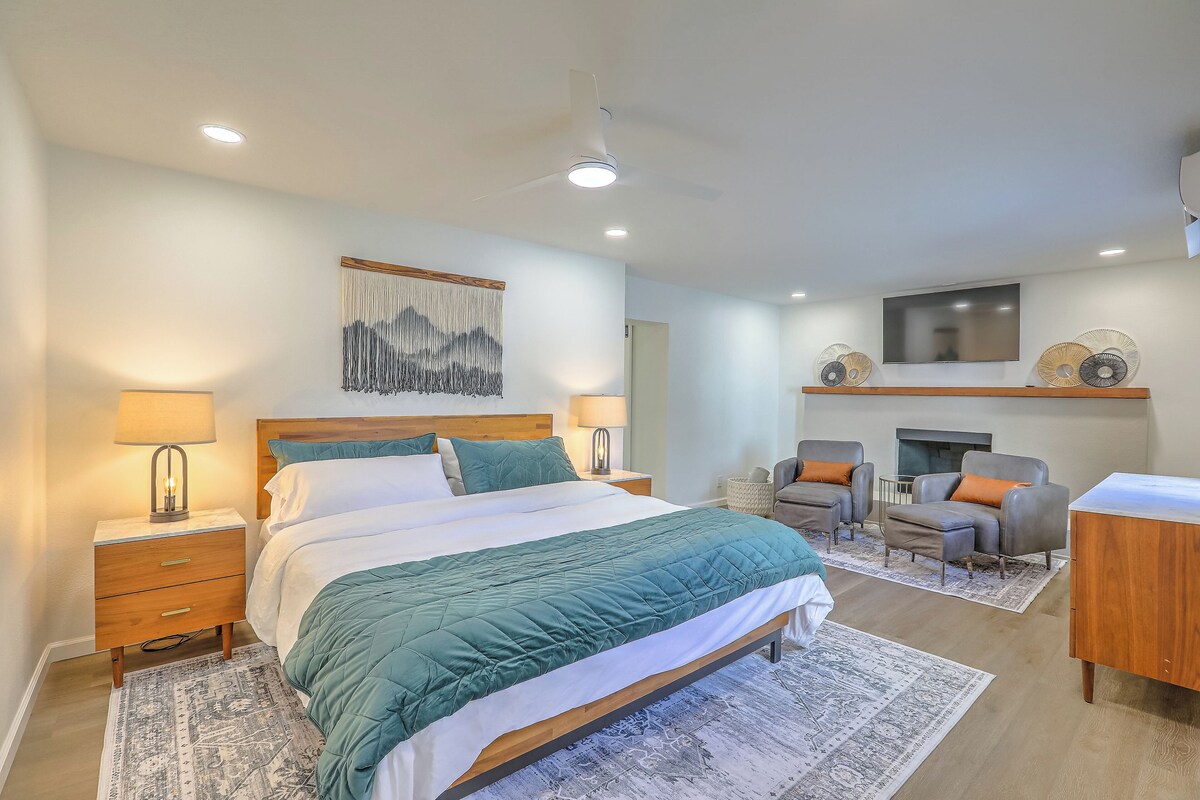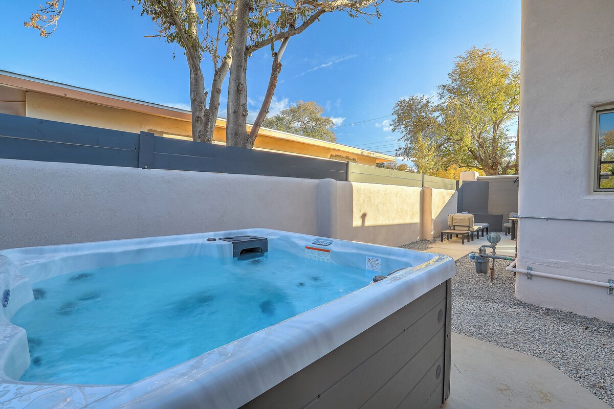 BEDROOMS • 5 private bedrooms, 6 beds (including 2 KING & 2 QUEEN!) • Individual climate control in every room BATHROOMS • 3 bathrooms • Fully stocked with fresh towels and essential toiletries KITCHEN & DINING • Fully equipped kitchen with quartz countertops and new stainless steel appliances • Coffee station stocked with all the fixings • Beautiful spatious formal dining area seats up to 10, with patio access for indoor/outdoor dining • Additional dining table for 4 LIVING SPACES • 2 spacious living rooms with fireplace and Smart TV • Sunroom with Corn Hole bag-toss game and window seat OUTDOOR FEATURES • Private courtyard with hot tub, fire pit, grill, and ample seating EXTRAS • New full-size HE washer and dryer in-home • Free high-speed WiFi (500+ MB) • Quiet North Albuquerque Valley neighborhood close to everything, with easy access to I-25 & I-40 • Dog-friendly (host approval required, with additional fee) Nestled in the heart of Albuquerque, this spacious 3313 sq ft two-story retreat is perfect for cherished reunions and unforgettable moments. Each of the five spacious bedrooms features premium mattresses, blackout shades, charging stations, and personalized climate control to ensure restful and comfortable stays for everyone. **Check out the floor plan and be sure to message us with any questions! (Floorplan is shown in photos). Start your day with coffee in a sunlit living area, as excitement builds for your adventures in the Land of Enchantment. There's plenty of space for everyone to unwind—play corn-hole, enjoy board games or puzzles, or curl up in the sunroom with a good book. With room to relax and bond, this home is designed for creating lifelong memories. Cook your favorites together in the fully equipped kitchen or grill on the patio and dine in one of two inviting dining areas. Whether you're sharing a casual breakfast or a celebratory dinner, the space brings everyone together seamlessly. After exploring Albuquerque’s rich culture and breathtaking landscapes, unwind in the private courtyard. Share stories by the fire pit under a starlit sky or rejuvenate in the therapeutic hot tub for ultimate relaxation. While you plan your trip, don't forget to add this listing to your wishlist! ;) What’s Cooking, In The Kitchen? Gather your loved ones and create culinary magic in our fully stocked kitchen, designed to bring everyone together. With gleaming brand-new stainless steel appliances, including a gas range ready for your favorite recipes, this space invites you to prepare hearty meals for the entire group. Imagine laughter filling the air as you chop, sauté, and stir, surrounded by everything you need to cook up memories as rich and flavorful as the local culture you’re exploring. Whether it’s a festive dinner or a cozy brunch, this kitchen is your hub for connection, nourishment, and unforgettable moments. **What’s included...Everything including the kitchen sink! ;) New stainless steel appliances including refrigerator, microwave, dishwasher, gas stove with convection oven and air fryer, AND a 2nd oven... NEW Breville countertop multi-function oven, with toaster, air fryer, baking, convection cooking settings, and more! Plus -- multiple blenders, GreenPan indoor griddle, sandwich grill, Henckels 14pc knife set, full dinnerware set, silverware, kids’ dish sets and utensils, wine & margarita glasses, pots/pans, cutting boards, mixing bowls, graters, bakeware, storage containers, colander, electric tea kettle, salad spinner, non-stick spray, salt & pepper, as well as a huge variety of cooking spices and herbs. Dish sponge, soap, and dishwasher pods are also supplied. Coffee Station equipped - New Keurig coffee maker and full-size coffee maker. Complimentary K-Cups, coffee, hot cocoa, teas, creamer, Stevia sweetener packets, and sugar give you added options. Gather, Savor, Connect: Your Perfect Dining Spaces Await! Revel in the joy of togetherness in a dining experience crafted for connection. The formal dining room welcomes 8-10 with ease—perfect for shared stories over a celebratory feast. Nearby, the breakfast bar for 3 invites quick bites and casual chats, while a stylish round table for 4 adds flexibility for breakfast, game nights, or an impromptu toast. The sleek sideboard in the dining room is loaded with games & puzzles for kids and adults to bring out that inner child! From the dining room, step onto the patio for an effortless indoor-outdoor flow, blending laughter and fresh air. These spaces aren't just for meals—they're for creating cherished moments with loved ones, from generations young to seasoned, under one inviting roof. Where Togetherness Meets Tranquility! Step into living spaces designed for connection and comfort. The two living rooms flow effortlessly into one another, creating a harmonious balance of togetherness and privacy. The main living rooms invites cozy movie nights with a plush sectional for 6-8, a smart TV for your favorite streaming, and the gentle warmth of an electric fireplace. The formal offers a fusion of Mid Century Modern and Southwest style with seating for 4, perfect for quiet conversations or board games. Whether gathering as one or enjoying separate moments, this open floor plan ensures your group feels both connected and perfectly at home. 5 Large Bedrooms! Embrace pure comfort in each of our five spacious bedrooms, designed as your personal sanctuary. Sink into top-rated Zinus mattresses dressed in premium linens, while blackout shades cocoon you in restful privacy. Every room caters to your needs with convenient charging stations and personalized climate control for ultimate relaxation. Whether you're a parent seeking peace after a lively day of exploring Albuquerque, or a grandparent cherishing the quiet of a family reunion or the sweet dreams of reconnecting with old friends, these rooms offer unmatched tranquility. Recharge, and rest easy—because unforgettable moments begin 