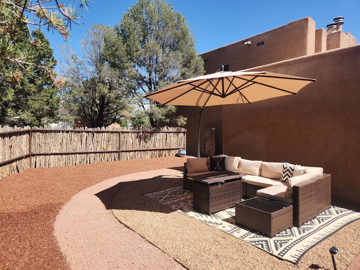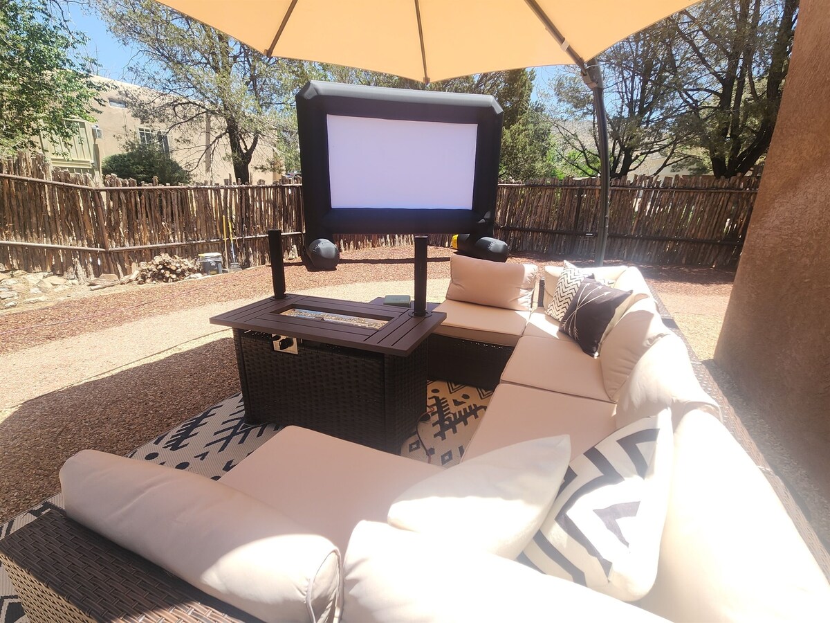 Enjoy the best of Albuquerque in our home. A gorgeous, secluded wooded lot and spectacular deck views. Large master suite w/ king bed, spa bathroom w/ soaking tub & walk-in shower, sunrise mountain and sunset city views. Two light-filled bedrooms w/ queen beds and modern shared bathroom. Gourmet kitchen, virtual work spaces w/ monitors, and yoga & exercise space. Walk to large park and Sandia trailheads. Quick drive to Sandia Peak tram. Perfect for virtual work, vacation, TDY, PCS. 🎥 Movie Night Under the Stars – Just $75 Per Stay! 🌟 Looking for a magical way to spend an evening during your stay? ✨ Treat yourself and your group to a private outdoor movie experience you won’t forget! For just $75 per stay, you’ll enjoy: 🍿 A 15-foot inflatable movie screen – perfect for big-screen vibes 🔊 A sound bar that fills the night with crisp, clear audio 📱 A wireless projector that mirrors your phone – stream your favorite movies or shows right from your device 🛠️ Complete setup & takedown – you don’t lift a finger 📖 Simple instructions from your hosts to get started quickly 🍿 Popcorn for your group – because it’s not a movie night without snacks! Whether it’s family fun, date night, or a hangout with friends, this is a unique, cozy way to unwind under the stars. 🌌 🎬 Add this experience to your stay for just $75! Reserve in advance – we require 48 hours notice to set up the outdoor movie theatre! Our prices include all fees. No hidden fees.