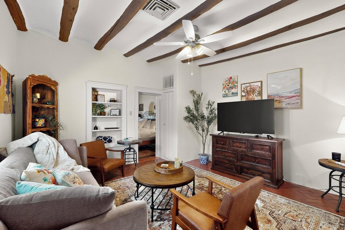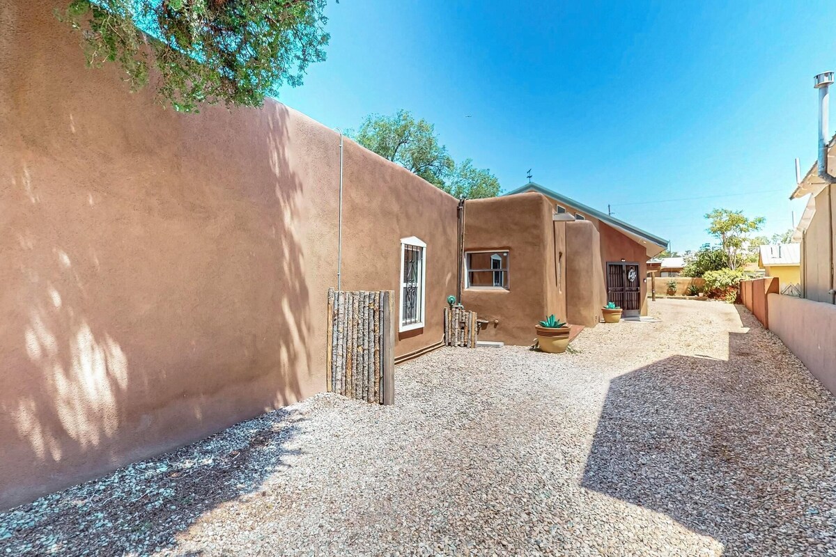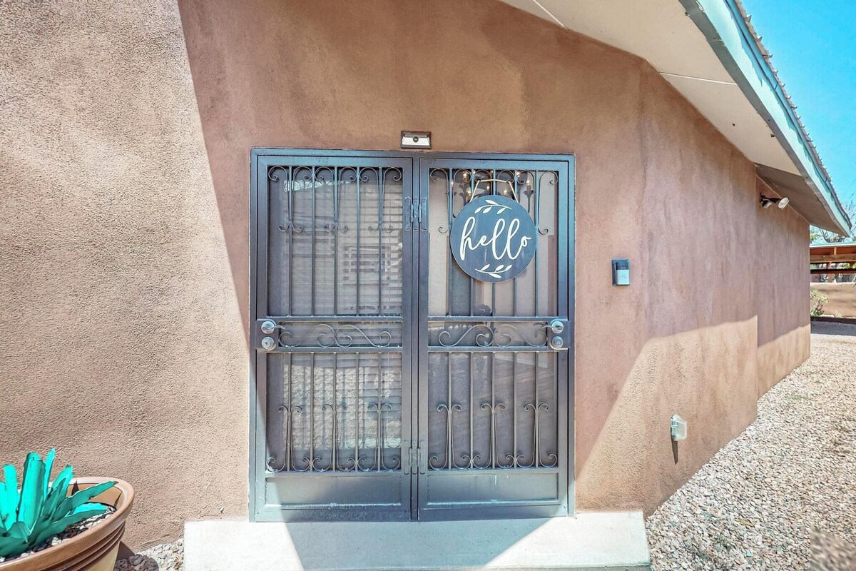Please read the full listing before booking — we want to make sure all your questions are answered and that you feel 100% confident in your choice! Save this property so you can easily find it again for future stays! The Space This fully private unit features: *Private entrance & driveway *Fully fenced backyard *Tankless water heater! You and your guests will never run out of hot water! *No shared spaces — your area (Unit A) is completely separate from Unit B *Limit of 8 guests and no events, celebrations or gathering above the guest amount. **Neighborhood & Noise Note: Our home is in a lively, walkable neighborhood just minutes from Old Town. You’ll often see neighbors out walking their dogs, biking, walking to restaurants, or heading to the nearby park that has a walking trail and playground, which gives the area a friendly, bustling feel. With that foot traffic, you may occasionally hear dogs from the neighboring property, as they tend to bark at passersby. For your comfort, we provide earplugs to suit different sleeping preferences. This is a duplex-style home. While the units are fully private, with separate entrances and parking on opposite sides of the property you may occasionally hear minor sounds through the shared wall — this is rare but possible. Please do not book this property if this might impact your stay and review of the home. *We offer parking behind the locked gate for 2 vehicles depending on size, and an additional spot for a 3rd vehicle outside the gate well off the street. Sleeping Arrangements Master Bedroom 1: King bed, en-suite bathroom with shower/tub combo. Bedroom 2: King bed Bedroom 3: King bed - couch as an additional option suitable for kids. * Living & Dining • Large Smart Roku TVs in the living room and dining area • Indoor & outdoor dining (seats 6) • Cold refrigerated A/C • Complimentary WiFi, coffee bar (Keurig + drip), and snacks • Secure locked parking • Convenient keyless entry - Location Highlights *Walk Score: 87 (Walker’s Paradise) *Located just steps from Old Town, Sawmill Market, museums, restaurants, and more: *5 min walk to restaurants, shops, & museums *8 min to UNM Popejoy & Kimo Theatre *15 min to Balloon Fiesta Park (9 min to park & ride) * 8 min to stadiums: UNM, Isotopes, United Soccer *5 min to Zoo, Aquarium, BioPark *17 min to Sandia Casino *25 min to Sandia Tramway *1 hr to Santa Fe *8 min to airport *7–8 min to major hospitals --About the Home Welcome to this beautifully restored, quintessential New Mexico adobe, where historic charm meets modern upgrades. +Features include: • Wood-beamed ceilings • Smooth plaster walls • Fully renovated kitchen • Updated appliances and bathrooms • Fire pit for evening relaxation Tucked away on a neighborhood street yet minutes from vibrant city life — perfect for both short getaways and 30–90 day extended stays. What to Know Before Booking We value transparency so your stay is exactly what you expected. Please read through the following before booking: *This home is in a pet-loving neighborhood near a busy park, so it’s not uncommon to occasionally hear dogs barking in yards at birds, squirrels, or raccoons. *Like many urban cities, Albuquerque has seen an increase in the un-housed population. On occasion, you may see individuals when driving out toward Central Ave. Our neighborhood itself is safe, residential, and diverse — with long-time families, medical staff, UNM students, and friendly dog-walkers. Nearby: a church, private and public schools, and a local park. +Noise notice: This is a duplex. While interaction is uncommon, you may occasionally hear guests next door. X No cats allowed (due to allergies). *Third-party bookings are not allowed per Airbnb’s policies. If booking for a friend or colleague, please share this listing so they can book directly. *We strongly recommend purchasing travel insurance and reviewing our cancellation policy before booking. We’re committed to offering exceptional hospitality — please browse our reviews to hear from past guests! If you have any questions, don’t hesitate to message us. We want your stay to be safe, memorable, and stress-free. X No events, No Celebrations or gathering that exceed the guest amount of 8. We look forward to hosting you in beautiful Albuquerque! Our prices include all fees. No hidden fees.