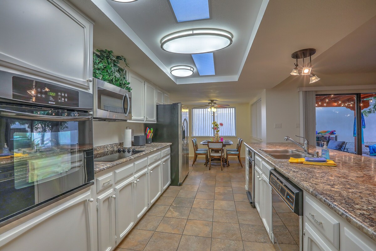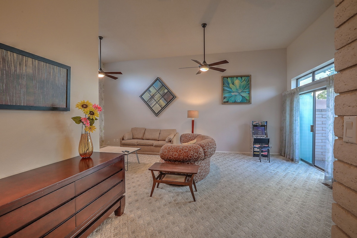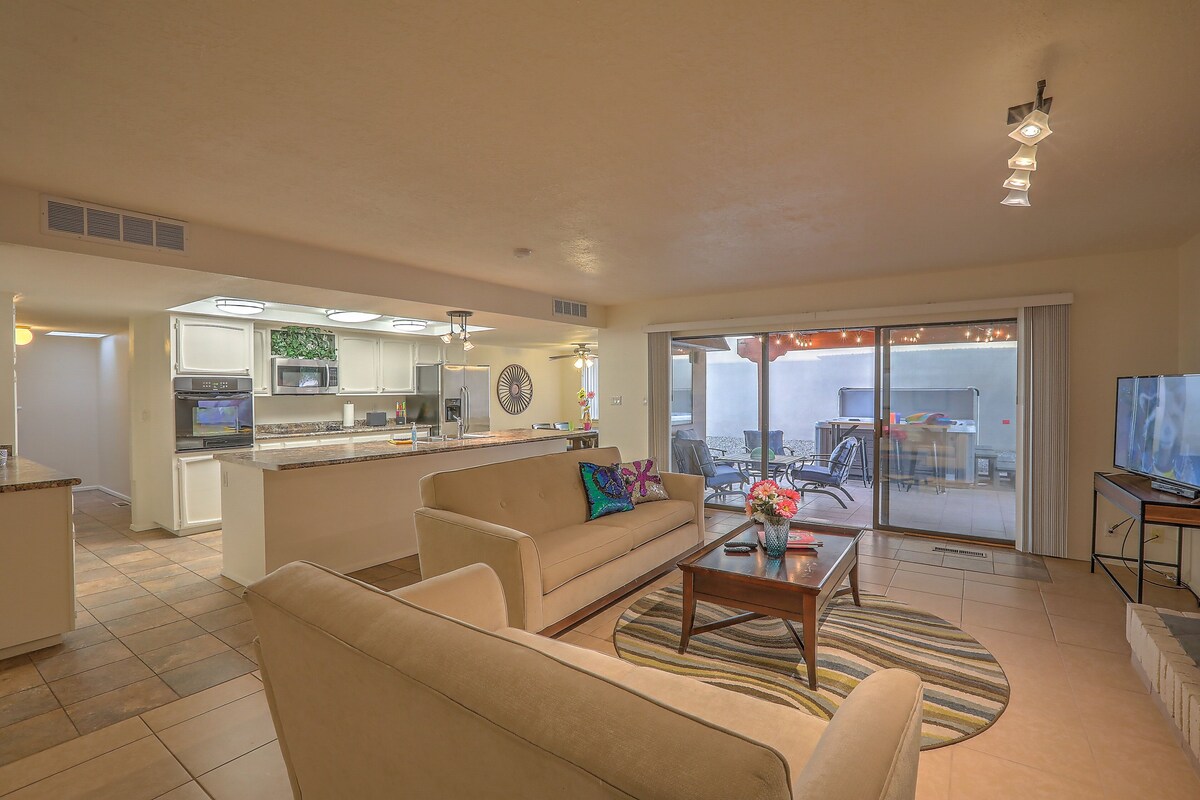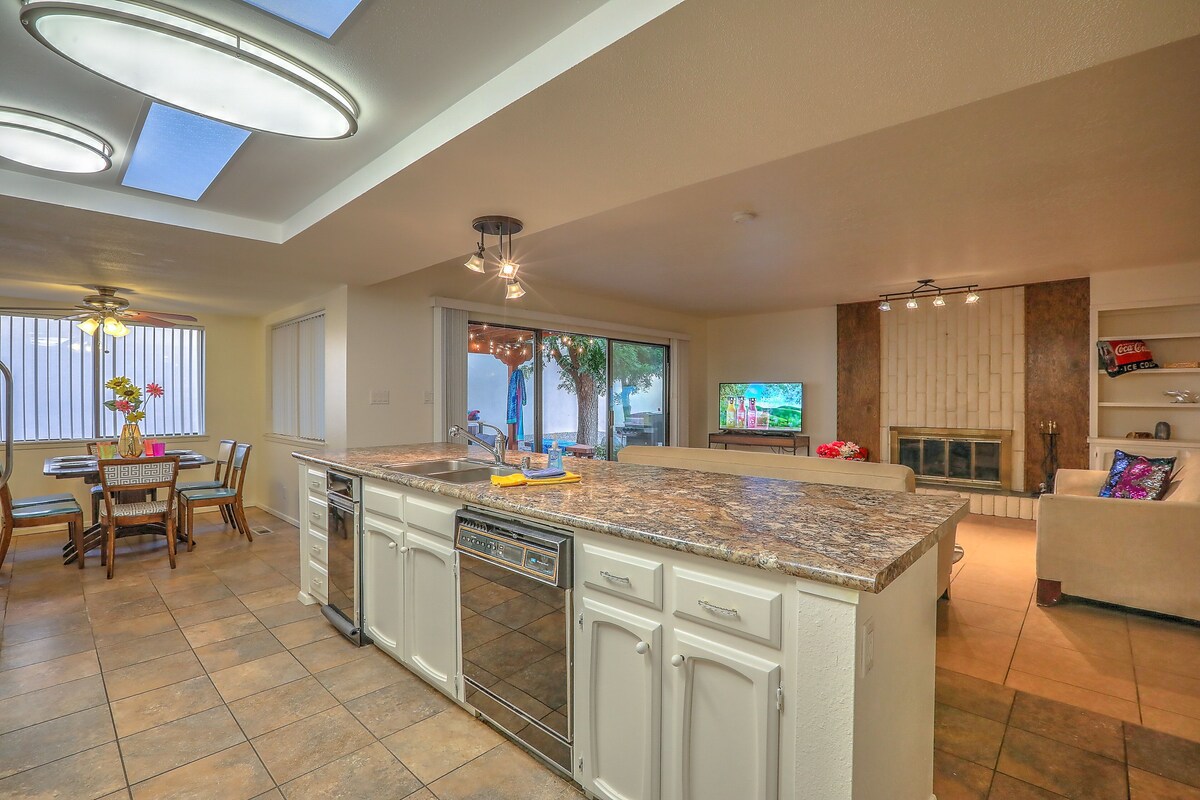 Welcome to the \ a little Mid Century Modern with a Vacation Mod Pod feel. What a great home in a highly sought after area. New Carpet and Wonderful Landscaping. Back yard is fully landscaped with BBQ, Hot-tub, and Privacy. Balloon Fiesta Park is 7 miles away. Santa Fe is 40 Minutes away, great 3 bedroom Single Story home. Walk to shopping and restaurants. RV Parking is available on garage side. 2 Car Garage . Walk to shopping and restaurants. Easy access and great privacy. Our prices include all fees. No hidden fees.