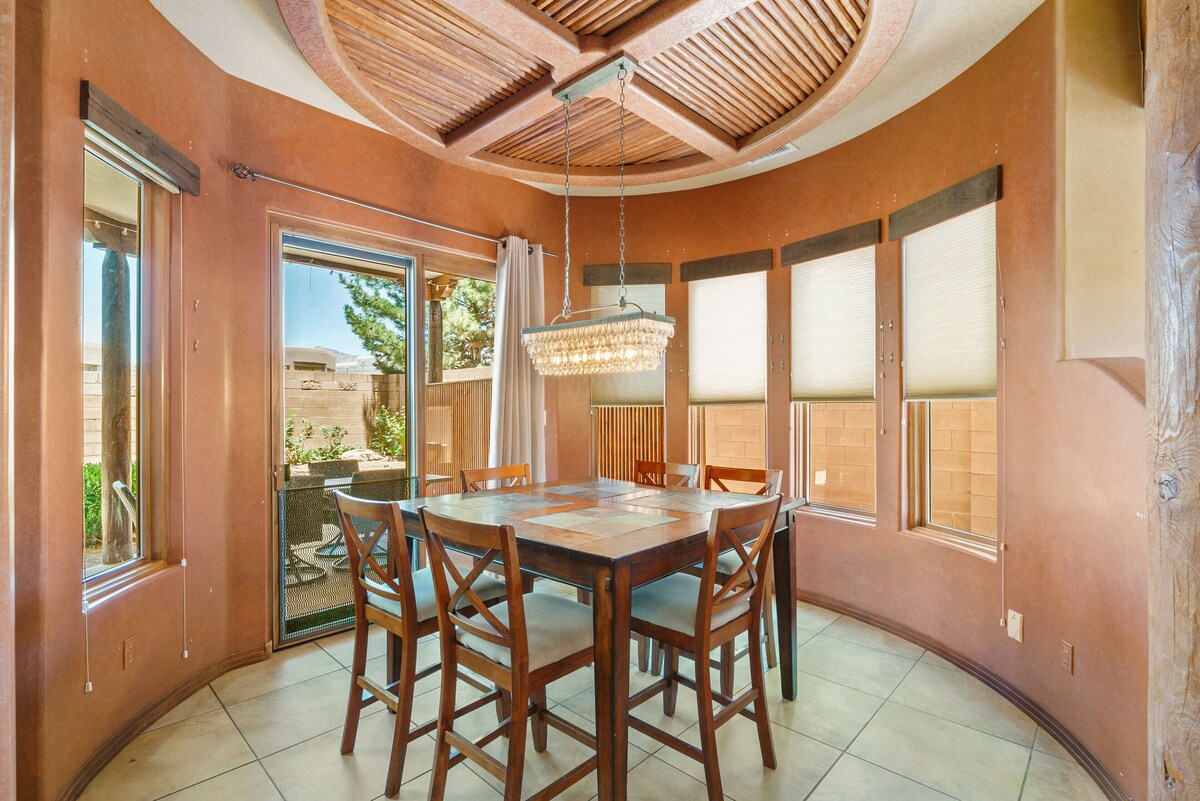 \ Style Custom Home, With Vigas, Latillas, Kiva Fireplaces, Banco's and Nicho's. Kitchen Won Best in Show. 4 bedroom ( 2 bedrooms on the Main Level) 3 Full bathrooms and a Guest Powder Bath. High top Dinning table. Large Master Bedroom with Jetted Tub, Greek Shower, and Exterior deck to view the Sandia's and Balloon Fiesta. backyard features, Clean Hot tub with privacy, Patio Table and BBQ Grill. Exclusive North East Heights location with Quick access to Downtown 15 minutes, and 45 minutes to Santa Fe. Our prices include all fees. No hidden fees.