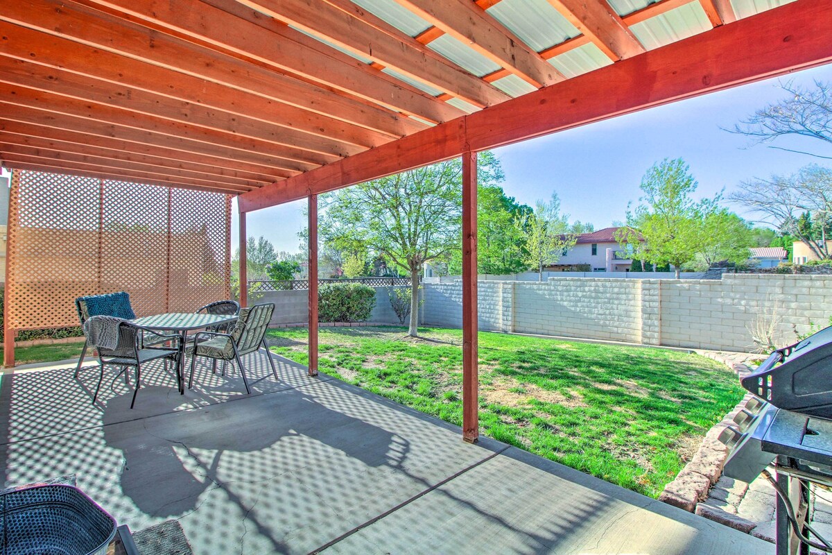 Experience the best of Albuquerque when you book a stay at this charming 3-bedroom, 2.5-bathroom townhome! This vibrant vacation rental offers a spacious interior complete with a pool table, a fully equipped kitchen, and a private backyard space with a gas grill. Spend the day observing the scenic beauty of Sandia Peak Tramway, explore the Petroglyph National Monument, or take a short drive downtown for local fare, museums, and entertainment. Your premier desert oasis awaits! -- THE PROPERTY -- Albuquerque STR Permit 379252 | Private Patio | Gas Grill | Fenced-In Backyard | Private Balcony w/ Views | Private Hot Tub With a spacious interior, desired amenities, and a premier location, this family-friendly abode promises a memorable stay in Albuquerque with the ones you love. Bedroom 1: King Bed | Bedroom 2: Queen Bed | Bedroom 3: Full Bed, Twin Bed INDOOR LIVING: Smart TV, pool table, mini-fridge (bedroom 1), laptop workspace (bedroom 2), dining table KITCHEN: Fully equipped, drip & Keurig coffee makers, blender, toaster, dishware & flatware GENERAL: Free WiFi, central heating & A/C, towels & linens, complimentary toiletries FAQ: Step-free entry, stairs required for bedroom access, pet fee (paid pre-trip) PARKING: Driveway (2 vehicles), garage (2 vehicles) -- THE LOCATION -- THINGS TO SEE & DO: Sandia Peak Tramway (4.7 miles), Bosque Trail (10.8 miles), Indian Pueblo Cultural Center (11.3 miles), Turquoise Museum (12.1 miles), Albuquerque Museum (12.5 miles), Explora (12.7 miles), New Mexico Museum of Natural History and Science (12.7 miles), ABQ BioPark Zoo (13.0 miles), ABQ BioPark Aquarium (13.1 miles), ABQ BioPark Botanic Garden (13.2 miles), Rio Grande Nature Center State Park (13.9 miles), Petroglyph National Monument (14.9 miles) BALLOON FIESTA PARK (8.5 miles): Annual hot air balloon festival, museum, golf + event center OLD TOWN (12.7 miles): Historic town w/ outdoor shopping, dining + gift shops AIRPORT: Albuquerque International Sunport (14.4 miles) -- REST EASY WITH US -- Evolve makes it easy to find and book properties you'll never want to leave. You can relax knowing that our properties will always be ready for you and that we'll answer the phone 24/7. Even better, if anything is off about your stay, we'll make it right. You can count on our homes and our people to make you feel welcome — because we know what vacation means to you. -- POLICIES -- - No smoking - Pet friendly w/ $50 fee (+ fees & taxes) - No events, parties, or large gatherings - Additional fees and taxes may apply - Photo ID may be required upon check-in - NOTE: While this property provides step-free entry, stairs are required to access all the bedrooms Our prices include all fees. No hidden fees.