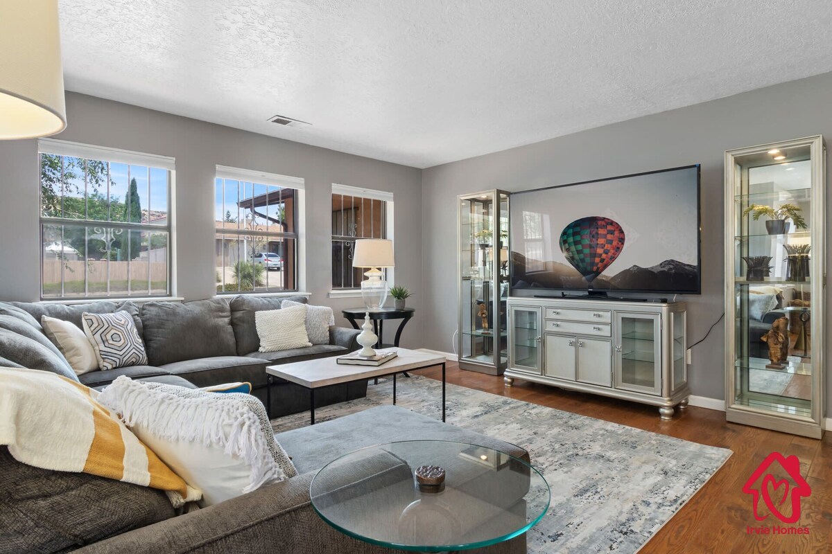 Summary: Near the Petroglyph National Monument with its ancient volcanoes, important archaeological sites, and some 24,000 carvings, Casa Bonita is an amazing & sizable home spread over 2 levels. Resting within a relaxed and friendly community on the West side of ABQ, this 3-bedroom home comfortably sleeps up to 8 guests. This modern and functional vacation rental is beautifully decorated and designed for relaxation & convenience. Massive yard with a resort-style heated pool, hot tub! The Space: Casa Bonita grants full access to a large yard with a resort-style heated pool, hot tub, grill, fire pit, and seating—a perfect space for family entertainment. Small dogs are welcome! The pool is open March 1st to October 20th, weather permitting, while the hot tub is open year-round. The house features two living areas, an upstairs balcony with mountain views, and amenities like games, pool toys, and high-speed internet for a stylish and enjoyable family vacation. LIVING ROOM - An oversized sofa is perfect for sinking into and enjoying movie nights with the family - Huge 72-inch Smart TV with access to streaming, including Prime Video, Disney+, HBO, ESPN+, Hulu, and Netflix, among others. There are also local channels available for your added entertainment. - Central Air provides year-round comfort DINING ROOM - A large dining table which comfortably seats 6 plus there are 4 additional stools at the kitchen bench for extra seating. THE KITCHEN The gourmet kitchen is a home cook's dream, fully equipped with deluxe stainless appliances and spacious stone countertops, offering ample food prep zones. Just bring your ingredients and start cooking! - Adjoining nook with seating for 4 - Plenty of storage and ample bench space - Full-size oven and gas range cooktop - Full-size fridge/freezer with filtered water and icemaker - Keurig coffee maker with complementary coffee with sugar creamer and sweeteners - Comes completely stocked with all your cooking needs, including a selection of pots, pans, crockpot, waffle iron, rice cooker, toaster, blender, microwave, serving dishes, cooking utensils, spices and more - Included also are plates, cutlery, glasses, coffee cups and all the essentials 2nd LIVING AREA – UPSTAIRS - Loft living area with a Queen sleeper for extra guests - Large 50-inch smart TV with access to an abundance of streaming, including Amazon Prime Video, Disney+, HBO, ESPN+, Hulu, and Netflix, among others. There are also local channels available for your added entertainment. - Fireplace - Work desk - Plenty of games and puzzles - Balcony with unobstructed views of the Sandia mountains, the incredible resort style yard and at night the city lights of ABQ THE PRIMARY BEDROOM - Features a luxurious King Size Bed - Large 60-inch Smart TV with access to an abundance of streaming, including Amazon Prime Video, Disney+, HBO, ESPN+, Hulu, and Netflix, among others. There are also local channels available for your added entertainment. - The Ensuite, complete with double vanity, separate bathtub, and a large walk-in shower, conveniently connects to the bedroom. Here you'll find all your bathroom necessities, including towels, hairdryer, soap, shampoo, and conditioner. - His and hers closet offers plenty of storage space. SECOND BEDROOM - DOWNSTAIRS - Comfortable Queen bed - Built-in wardrobe with ample storage space THIRD BEDROOM - DOWNSTAIRS - King Bed - Ample storage space GUEST BATHROOM - Near the 2 guest bedrooms and includes a shower/tub combo - Here, you'll find all your bathroom necessities, including towels, hairdryer, soap, shampoo, and conditioner. LAUNDRY - Full-size washer and dryer - Iron and Ironing board - Steamer - Vacuum Cleaner, broom, and mop - Additional half bathroom located nearby Guest Access: The entire home is yours to enjoy. The garage is not accessible to guests. To elevate your comfort and enjoyment, we offer two exclusive add-on features: Pool and Hot Tub Availability From March 1 to October 20, the pool is open and can be heated for an additional $100 heating fee. Hot tub heating is included during this period at no extra charge. From October 21 to February 28, the pool is closed, but the hot tub remains available with a $100 heating fee applicable for use during these months. The hot tub is available year-round. Our home is pet-friendly, welcoming dogs only (up to 40 pounds each). We allow a maximum of 2 dogs per reservation, with a pet fee of $250 per pet. No other pet types are permitted. The Neighborhood: Casa Bonita, situated in a tranquil West ABQ neighborhood, offers easy access to grocery stores, cafes, and the Petroglyph National Monument's ancient sites and hiking trails. The home is about 20 minutes from various attractions, including the renowned Balloon Fiesta, where over 500 balloons paint the skies every October. Additionally, the Sandia Peak Aerial Tramway and Ski Area, operating November to April, are only a 25-minute drive away, providing year-round recreation. Albuquerque, nestled between the Sandia Mountains and the Rio Grande, brims with culture and vibrant energy, drawing visitors for its scenic beauty and quality of life. Its temperate climate and diverse attractions cater to skiers, museum-goers, and adventure enthusiasts. The city's location near mountains, rivers, and historic routes like Route 66 attracts people year after year. The Rio Grande offers 26 miles of kayaking opportunities amid stunning wildlife and scenic trails from Bernalillo to Tingley Beach. RESTAURANTS (within 10 minutes) Jinja Bar and Bistro Pepperoni Palace Garcia’s Kitchen Express Spin’s Burger and Beer Subway Dion’s Rusty Taco Sushi Freak Which Wich Superior Sandwiches M’tucci’s Italian Restaurant Fang Wong BARS/BREWERIES Effingbar and Grill The Hopper Pub and Pizzeria GROCERY AND DRUGSTORES Sprouts Kellers Farm Stores Albertson’s Market Getting Around: A personal vehicle is recommended, but you may also choose to use Uber or Lyft. Our prices include all fee