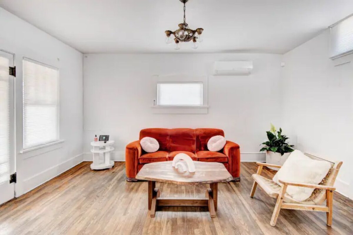 This adorable one bedroom casita features eco-friendly products, classy Deco decorating, and an extra cozy Keetsa king bed. The combination of minimal aesthetics with just the right flashy Deco touch creates a cozy, inviting interior. The Casita is completely private and is heated and cooled by mini-splits in the living room and bedroom. There is secure parking for a sedan style vehicle, but it cannot accommodate larger vehicles like large trucks or SUVs. The space Walk into the past with all of the comforts of the present! The living room has an antique art deco couch upholstered in luxurious terracotta velvet. The smart tv is logged into HULU and Netflix, or you may log into any of your accounts. There is super high speed wifi and a security system. Sit in the cozy low-slung chair, sip your coffee and gaze outside to New Mexico's beautiful blue skies. The bathroom has new, gold fixtures and a stylish cement tile floor. There is a custom metal sliding door with frosted privacy glass.There is a shower and a small cast iron bathtub with a glass divider. The kitchen is outfitted with hand blown glasses, eco-friendly bamboo bowls and strainers, a microwave, cutting board knife, and 4 place settings. There is a one pot, which can cook all kinds of items, a saucepan, and a cookie sheet and roasting basket (stored in the oven). There is an electric stove, tea pot, coffee maker and french press and a casserole baking dish. The bedroom has a brand new Keetsa King that is so cozy. There are rustic hardwood floors in the bedroom and the living room. There is a little front porch and yard where you can sit outside and enjoy New Mexico's beautiful weather. The yard is fenced for privacy but is not fully fenced to keep dogs inside it. Guest access You'll have access to the parking, yard, porch and the entire casita. It's a private space just for your use. Other things to note To reach this property, you enter through the alley, and I will give you very specific directions on the morning of your arrival. The parking is tight-I have a Volvo Sedan, and I fit perfectly. I’ve seen larger vehicles parked in the space, but it is difficult to maneuver in, and I don’t recommend it if you aren’t skilled at parking in tight spaces. There is on-street parking, but it is not next to the house. You’ll have to walk down the alley past three houses to reach the casita if you park on the street. Our prices include all fees. No hidden fees.