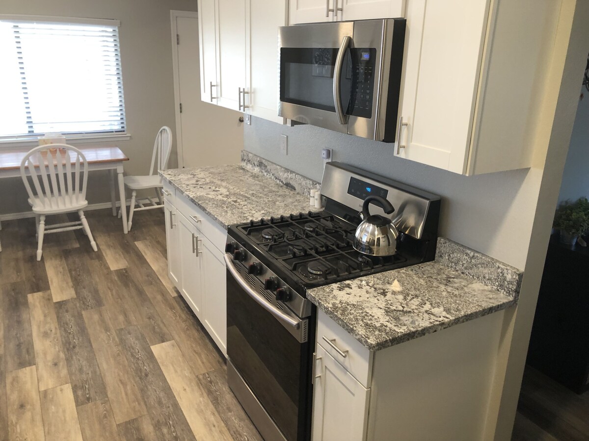 Newly remodeled beautiful 3 bedroom 2 bathroom 1500 square foot home. 2 car garage with Nema 14-50 outlet for EV charging. Bring your own charger. Located in the NE heights off Tramway and Indian School. Close to mountains, hiking trails and I-40. Sleeps 6 with one king and 2 queen beds. Refrigerated air. Covered back patio with fire pit, BBQ grill grass play area and corn hole game. Smart fire TVs in den and every bedroom. Full kitchen and laundry room. Within walking distance to Walgreens, CVS, Flix Brew house movie theater and Hinkle fun center. 12 miles to balloon fiesta park. 9 miles to Sandia peak tramway. Fenced and gated backyard for well behaved pets. Self check in with code for smart lock. Simple check out with no cleaning fee. This house has everything you need and more for a great stay. Our prices include all fees. No hidden fees.