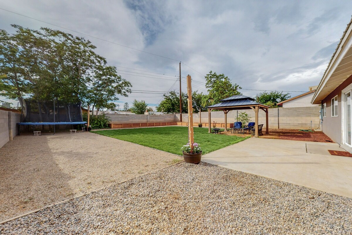 Relax with the entire family in our peaceful home. Enjoy all the amenities in this home away from home with an inviting yard to relax with family, friends, or pets. Centrally location with quick accessibility to shopping centers, restaurants, 5-10 minute drive to historic oldtown/downtown and 15 minutes from the scenic Sandia Mountains and the famous Sandia peak tramway. Our prices include all fees. No hidden fees.