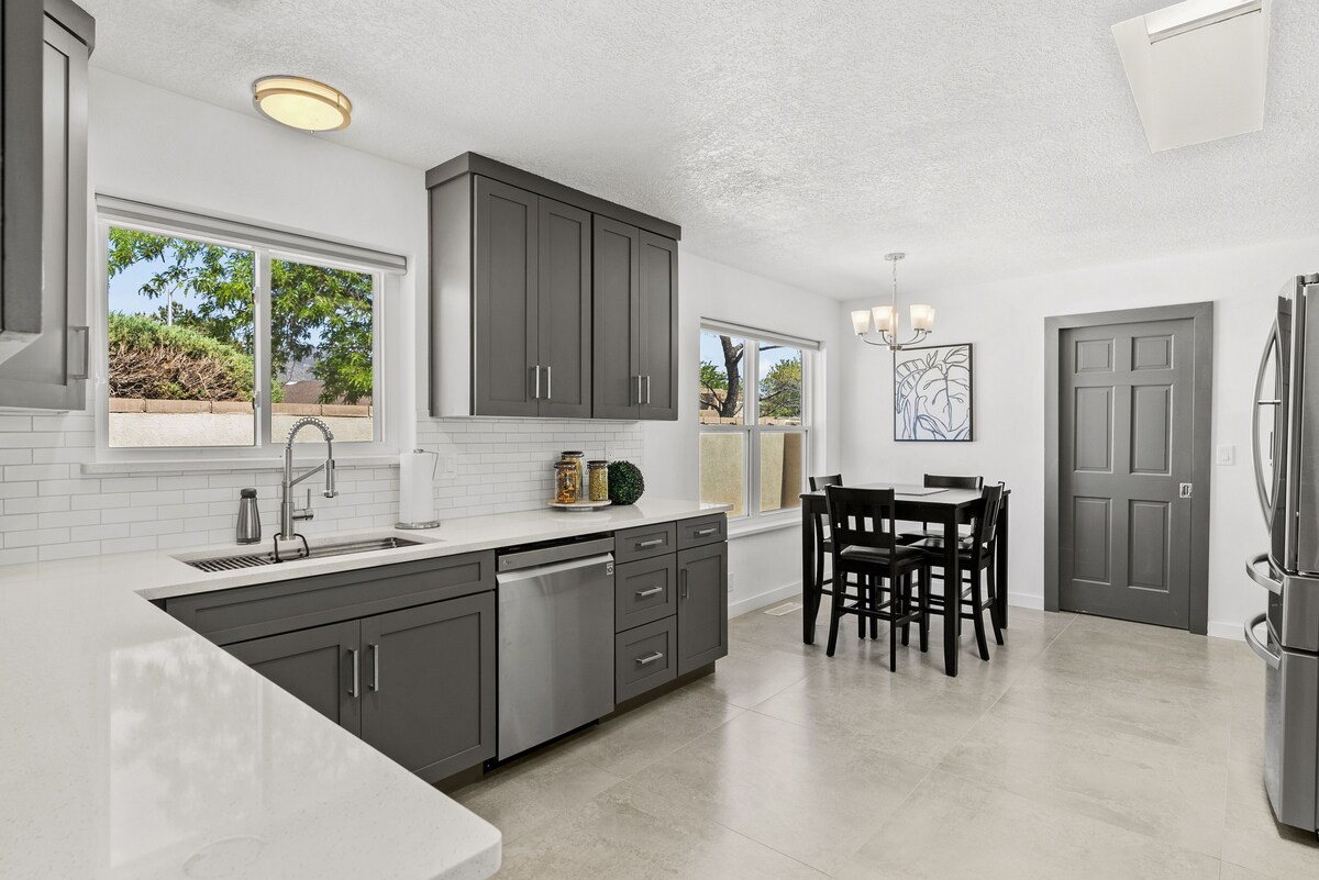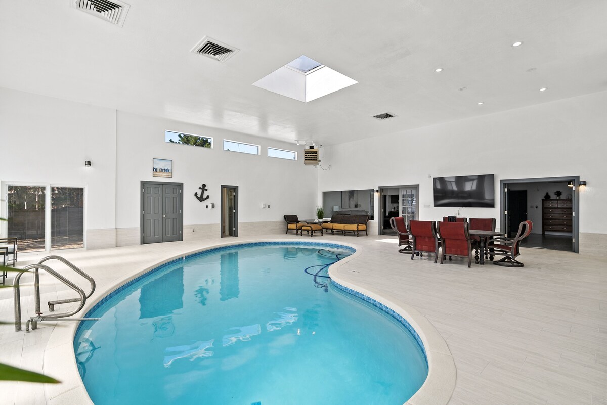 Set amongst the Sandia mountains harmoniously existing with nature, this architectural triumph consists of 3 bedrooms 3 baths. Chefs kitchen catering to all with a open concept ensuring ultimate entertaining experience. Galaxia way offers a Indoor heated pool with a swimmers ensuite. This property is sure to capture soaring mountain views from all angles, including a full 45’ foot landing pad for a RV with clean outs. Perfect for hosting all of our Albuquerque Balloon Fiesta travelers. Our prices include all fees. No hidden fees.