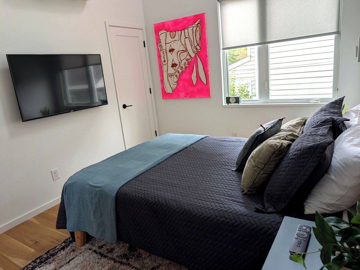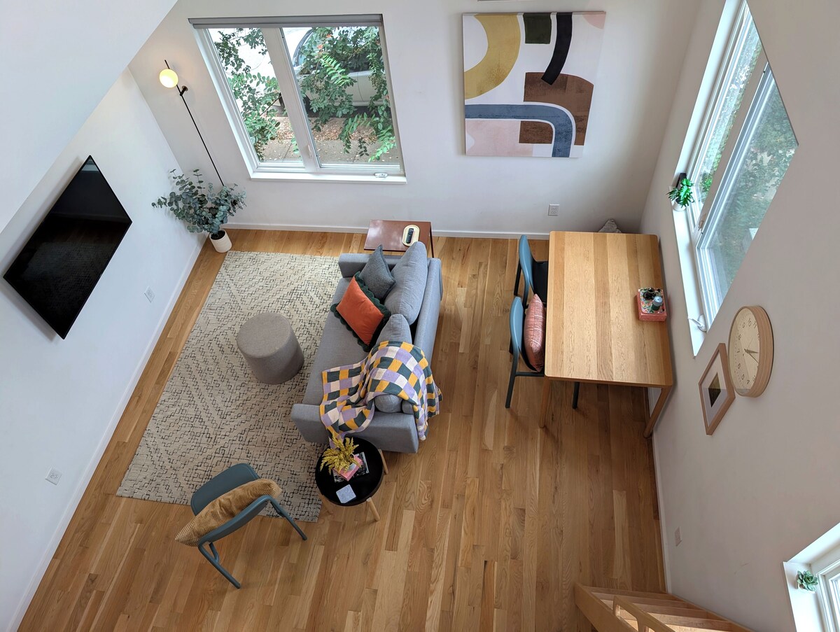 In the heart of downtown Raleigh, this stylish loft blends modern flair with funky charm. Enjoy skyline views from the shared rooftop deck—perfect for morning coffee or evening wine. Across the street are local favorites Transfer Food Hall and Burial Beer Taproom. A short stroll and you're in the middle of downtown’s buzzing food scene, lively bars, galleries, boutiques, and museums. Inside, the space is bright and thoughtfully designed with a lofted nook and a well-equipped kitchenette. This is a new modern house with several apartments. Enter through the front door and this apartment is upstairs on the left. There is a large yard in the back and pets are always welcome! Our prices include all fees. No hidden fees.