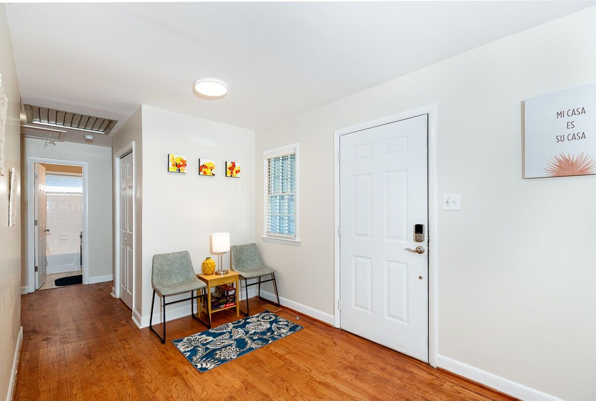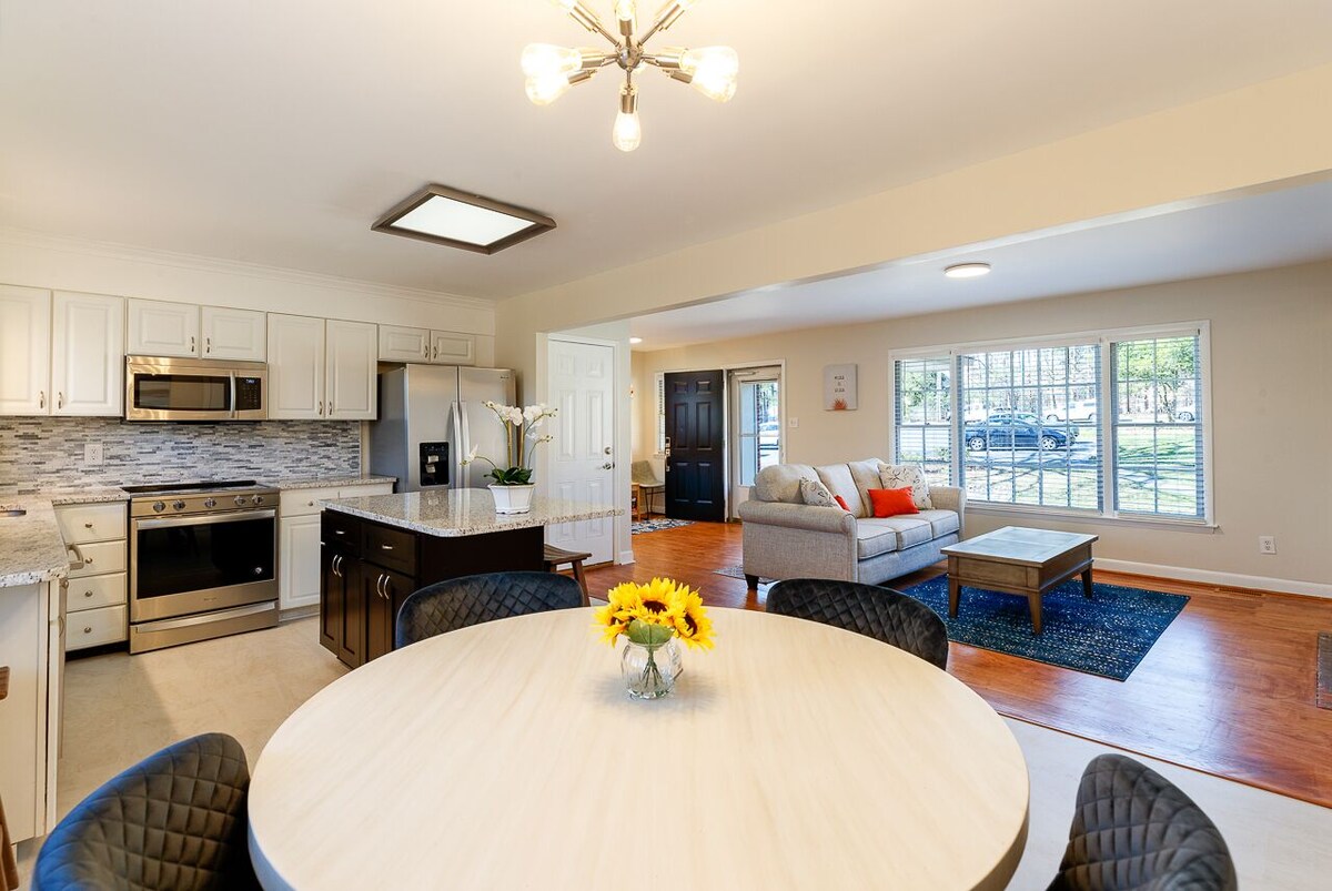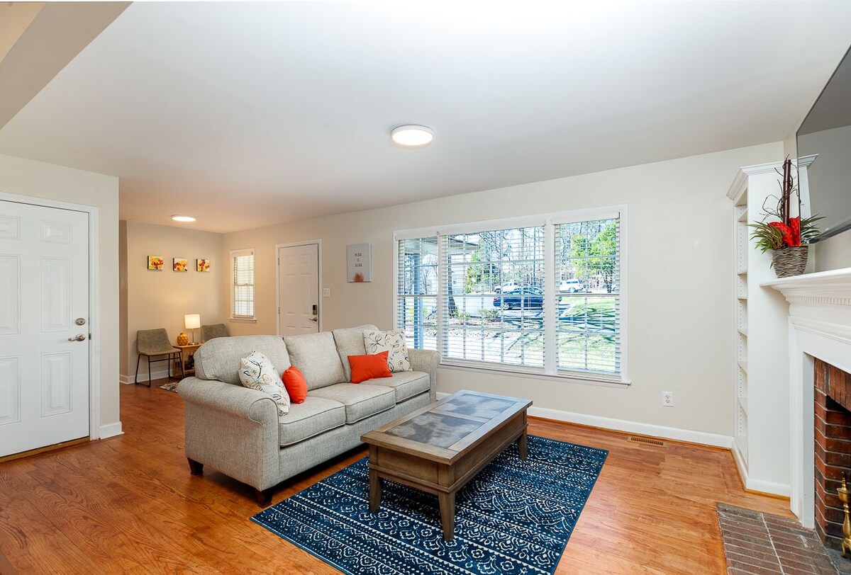 Welcome to Your Oak Tree Oasis! Relax under the majestic Oak tree. Chill, grill & make s'mores. Tan on your private deck. This hideaway is your personal oasis and retreat. Not to mention, it's walking distance from one of the most beautiful lakes & trails in NC, Lake Lynn (fish, kayak, picnic, etc). It's a 5 minute drive to Crabtree Valley Mall & North HIlls Mall, 10 minutes to Downtown Raleigh & numerous Hospitals and Universities. Also book the lower level unit if you need more space. Booking details below. Plan your trip today and make new memories!!! 2 Bedroom & 2 Full Bath, Sleeps 5-6 (full-size sofa bed also), Full Kitchen, Living Room, Dining Area, Porch, Sunroom, Deck/Balcony, Beautiful Backyard This updated home combines contemporary decor and modern amenities with a refreshing southern charm. Spacious and open living and dining area and a private sunroom and deck which beckon you to relax with your cup of coffee or your favorite book. At night, tiki lights lead you to continue to enjoy the outdoors, year-round, especially with the warmth of the fire pit. Finally, feast your eyes on the spacious backyard that allows you to experience the beauties of nature. There are only 2 steps to enter the home, then everything is on one level, easy one-story living. Enjoy over 1300 square feet of comfort, relaxation and convenience with all the amenities you would expect from a high-end home, including quality furniture, linens, appliances. This home also features a salt water filtration system which is great for skin, hair, lathering, drinking and more. Need more space? There is a also a lower level unit. The lower level unit is a 2BR/1BA, separate entrance The url for the lower level unit is below (I've included links to both listings below). Rent both units and have the entire home to yourself. Mega privacy and enjoyment. Main Level: https://www.vrbo.com/2201854?noDates=true Lower Level: https://www.vrbo.com/9773413ha?adultsCount=1 Sleeps 5-6: Master Bedroom - 1 Queen Bed, spacious/open, tv, access sunroom and deck off from MBR Guest Bedroom - 1 Queen Bed, spacious, tv, this room also has a Full Serta Sleeper Sofa which can be opened upon request Other Amenities: High-speed, FIBER Internet 3 Smart TVs, Flat screen HDTV’s A Height-Adjustable Standing Desk (manual & mobile) Over1300 Square Feet of Living Space + Ample outdoor space You will be happy here! Check in time is 4pm or later. Check out time is 10am or earlier. Thank you! No Smoking No Parties or Large Gathers (>6) **READ ME** We recommend that EVERYONE get trip protection for any unforeseen needs to cancel your reservation. It's peace of mind! :-) Our prices include all fees. No hidden fees.